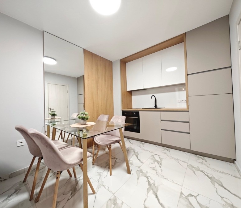 Brand new 1 BED apartment, 54 sq.m., in Emilia Romana Park, Sunny beach 1 BED luxury apartment is offered for sale in the complex “Emilia Romana Park”, Sunny Beach The Emilia Romana Park complex is located in the center of the resort town of Sunny Beach. Within walking distance from the complex there are: shops, cafes, restaurants, pharmacy, post office, bank, medical center, bus stop, etc. Complex infrastructure: – swimming pool with childrens area; – parking; – restaurant; – bar; – 24-hour security. The apartment with a total area of 54 sq.m. is located on the second floor and consists of: a spacious living room with a kitchenette, dining area,, one bedroom, a bathroom with shower and washing machine and a terrace with views to the surroundings. The apartment is furnished, equipped with appliances and ready to move in. Brand new furniture and appliances. Act 16; Suitable for year-round use and renting out. Distance from the sea – 800 m Maintenance fee – 16 euros per sq.m.