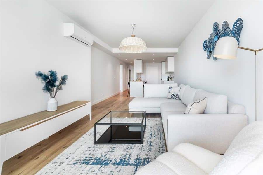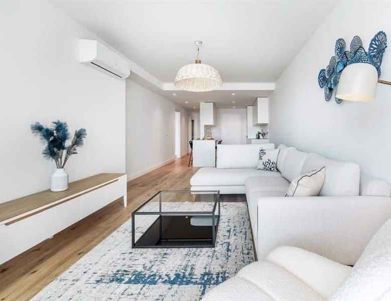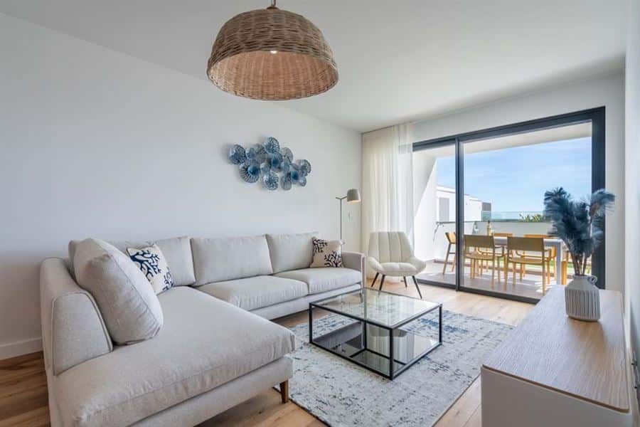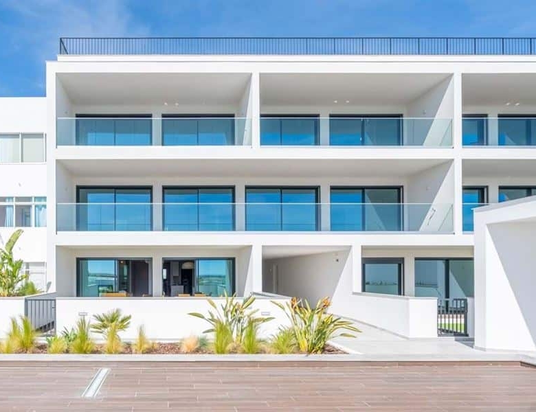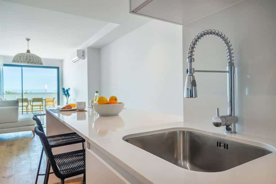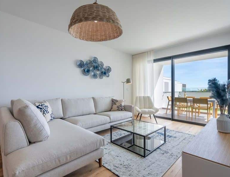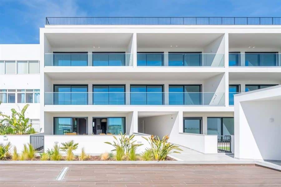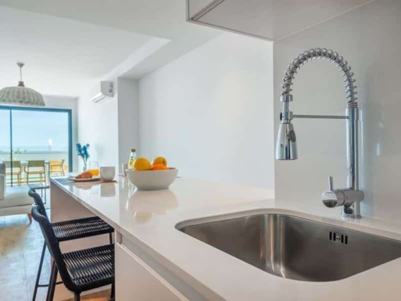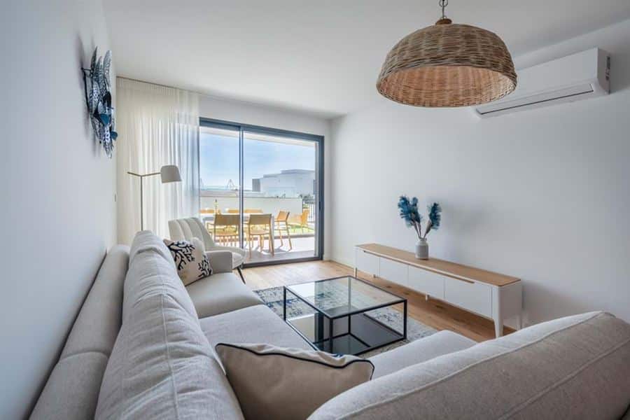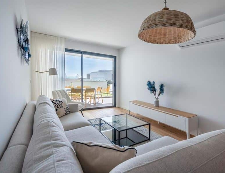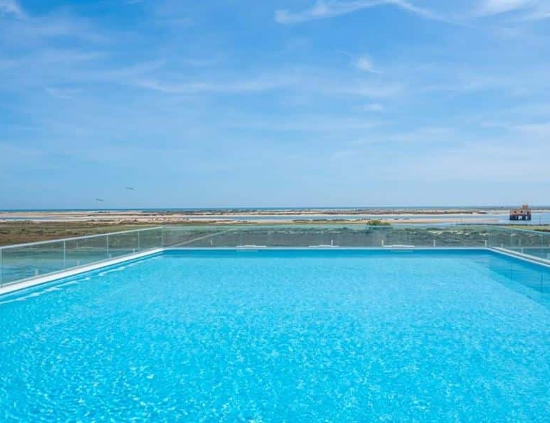 This brand new two bedroom apartment in Fuseta is situated on the front line overlooking the Ria Formosa. Sold fully furnished, this property is 750 metres from Praia da Fuseta Ria the lagoon beach in Fuseta and approximately 20 minutes from Faro airport.Situated on the ground floor with direct access to the resort pool, this apartment comprises an entry hallway wrapping round to a semi open-plan living room with a fully fitted kitchen with premium appliances and breakfast off to the side. From here, there are large sliding doors leading out to the private terrace with an outdoor dining area and a small area fitted with artificial grass.This terrace leads directly to the communal swimming pool and sunbathing areas where there are amazing views overlooking the renowned Ria Formosa Lagoon.Offering two bedrooms, the master bedroom comes with it’s own en-suite bathroom and walk-in closet whereas the second bedroom has access to a shared bathroom equipped with a large walk-in shower.Additional features include: air-conditioning, wooden flooring throughout except the bathrooms, a laundry room off the kitchen and 2 private parking spaces with a storage locker.Fuseta is a fishing village full of character and charm, sharing its beach with the Ria Formosa, it also has a beach that is on an island located on the east part of the Armona island. This is slightly after the Ria Formosa and can be accessed by a ferry, making the trip to the beach a memorable and enjoyable moment.