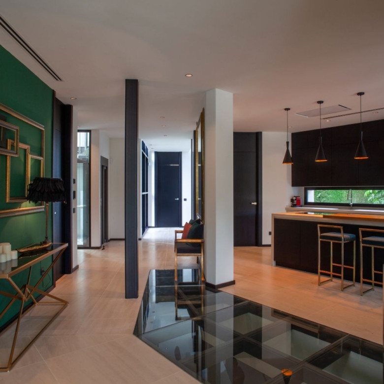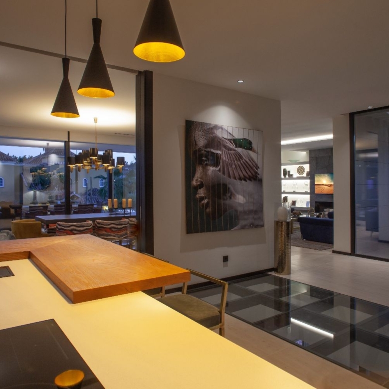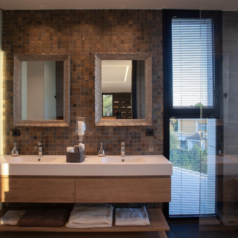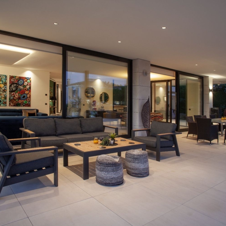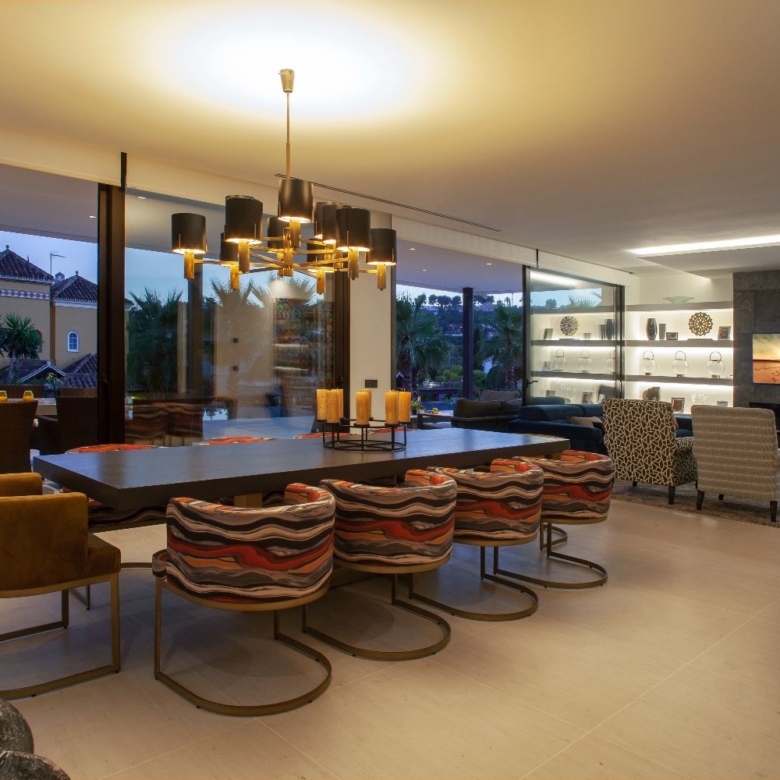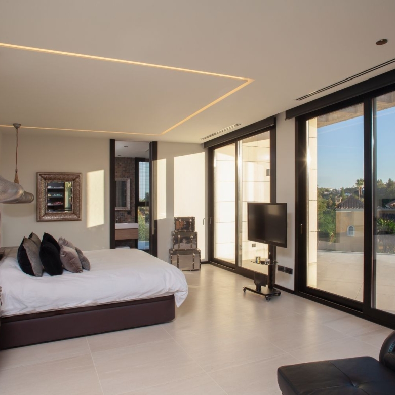 Fantastic contemporary villa with mountain views in Parcelas del Golf, a private and secure residential area in the Golf Valley of Nueva Andalucía. Distributed on three levels, this luxury villa offers spacious interior spaces bathed in natural light extended by huge terraces leading to a large swimming pool and superb Mediterranean gardens, an ultramodern kitchen fully equipped with high-end Balay appliances, 7 bedrooms, 6 bathrooms, one of the bedrooms with two windows overlooking the lower level with a view of the cars. Lift to all levels, 200-m2 solarium, BBQ area, Jacuzzi, rare stone construction from Portugal and outdoor parking for 5 cars. A sublime property in an exceptional setting only 5 minutes’ drive to Puerto Banús, the beach and all amenities.
