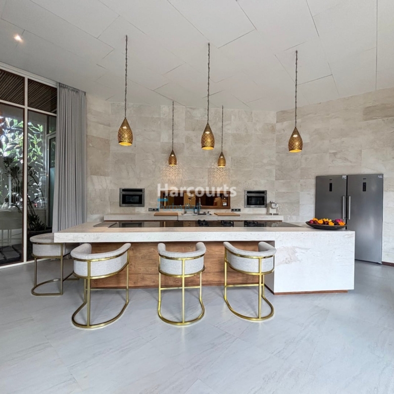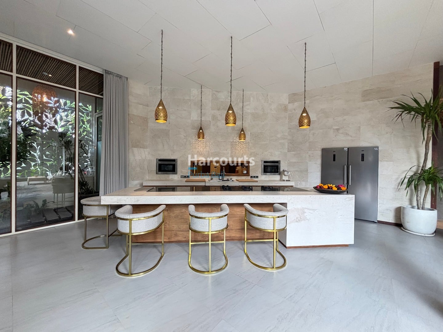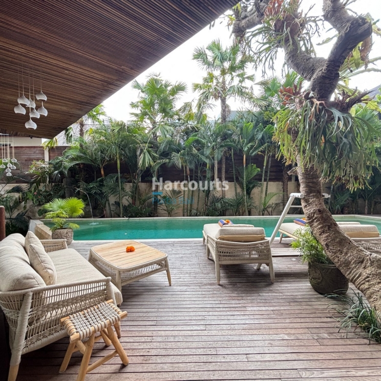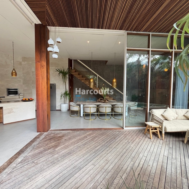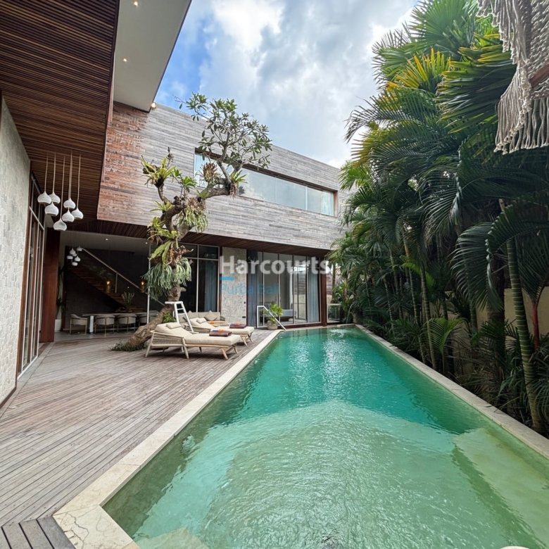 Tucked into one of Pererenan’s most coveted residential neighborhoods, this brand-new 5-bedroom modern villa offers a FREEHOLD opportunity just moments from the beach, with cafes, shops, and restaurants all within walking distance. Designed with luxury and functionality in mind, the property spans 700 sqm of built space across two levels on 480 sqm of land — a generous footprint that speaks to both its residential comfort and rental potential.The interior features a stylish closed living and dining area, fully air-conditioned and anchored by a sleek, fully equipped modern kitchen. All five bedrooms come with en-suite bathrooms fitted with double sinks, rain showers, and premium fixtures, while the upper level enjoys plenty of natural light and views over the pool and garden. The 14 x 3.5-meter private pool invites lazy afternoons or entertaining, while the large garage easily fits two cars — a rare feature in this part of town.Completed in 2025, the villa is fully furnished and move-in ready, with high-end finishings, 30,800 watts of electricity, and a well water supply. With a Rumah Tinggal permit in place, it’s ideal for both residential use and long-term rental. And with Pererenan’s rise as one of Bali’s most in-demand coastal villages, demand continues to grow from both expats and returning tourists looking for quieter alternatives to Canggu.While Pererenan still holds the charm of a coastal Balinese village, it now pulses with cafe culture, boutique shopping, wellness studios, and access to some of Bali’s best surf. it’s this balance of laid-back lifestyle and high rental appeal that keeps demand in the area growing. Whether you’re buying to live, rent out, or both — this villa hits every mark. With a freehold title and a prime location, iDR 24.5 Billion secures a home that delivers both presence and performance in one of Bali’s most sought-after enclaves.Nearby: Woods 350 m, Baked Pererenan 500 m, Shelter 700 m, Wrong Gym 900 m, Pererenan Beach 1.2 km, Lima Beach 1.2 km, La Brisa 1.5 km, Jungle Padel 1.6 km, Pepito Pererenan