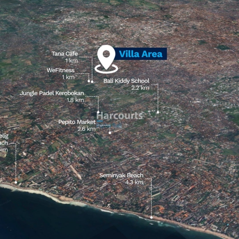 Experience modern minimalist living with this brand-new 4-bedroom villa nestled in a quiet area of Kerobokan. Built in 2024, this stunning property offers the perfect blend of contemporary design and comfort, making it an exceptional choice for both personal living and investment. its strategic location places you within a short drive to vibrant hotspots, fine dining, and popular beaches, enhancing the appeal of this luxurious residence.Spanning 160 sqm of land with a spacious 140 sqm building, this two-story villa boasts a sleek, open/close living concept complemented by sliding doors that seamlessly connect indoor and outdoor spaces. The fully equipped kitchen flows effortlessly into the dining area, perfect for hosting or relaxing with family. With four well-appointed bedrooms and three modern bathrooms featuring rain showers, the villa ensures maximum comfort and convenience.Step outside to enjoy your private rectangular swimming pool, bordered by a small garden, creating a serene oasis for relaxation. The villa also includes onsite parking for two cars and is powered by a substantial 16,000-watt electricity supply. Fully furnished and move-in ready, this villa offers exceptional value for money.Perfectly situated near popular cafes, fitness centers, and shopping spots, the villa is just minutes from Denpasar, Seminyak and Canggu, making it ideal for those seeking a vibrant lifestyle or lucrative rental investment.This FREEHOLD property is offered at iDR 3,900,000,000, presenting an incredible opportunity to own a modern villa in a prime location. Don’t miss out on this exceptional investment. Contact us today to schedule a viewing and make this luxuriousbrand-new villa yours.Nearby: Tana Cafe 1 km, WeFitness 1 km, Jungle Padel Kerobokan 1.8 km, Bali Kiddy School 2.2 km, Pepito Market 2.6 km, Batu Belig Beach 4.2 km, Seminyak Beach 4.3 km