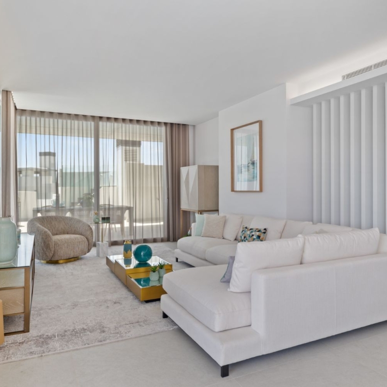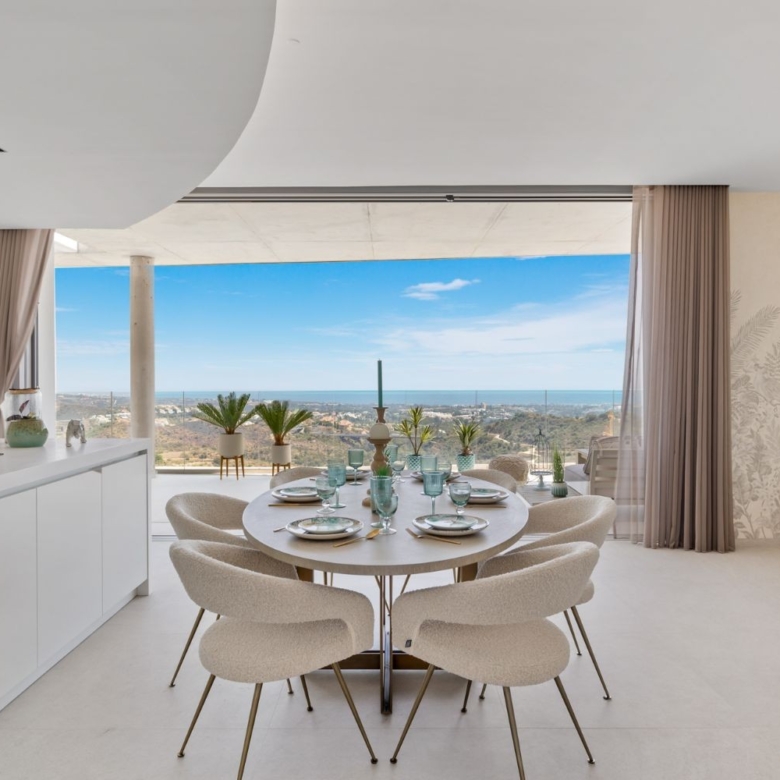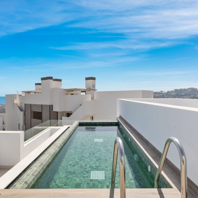 Brand new top quality penthouse in Real de la Quinta. All on one floor. Orientated east to west, all day sun and with amazing open panoramic views to the Medeiterranean and the coast. The living and dining area with an open plan fully fitted kitchen with Siemens appliances. Master bedroom en suite with dressing area, one guest bedroom en suite and two guest bedrooms sharing a bathroom and a separate guest toilet. It has a direct access to covered and open terraces of 164m2 with a private pool. It features A/C with heating and under floor heating with the Airflow system with three car parkings and a storage including community gardens and pool. This complex is part of the master project Real de la Quinta Residential Country Club Resort, a residential resort, integrated in the foothills of the Sierra de las Nieves overlooking La Concha mountain. A unique location, with its views, the lake and features such as the golf course, the El Lago Club, a 5* hotel and a comercial area.