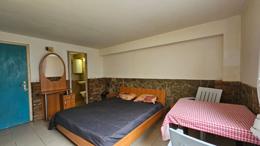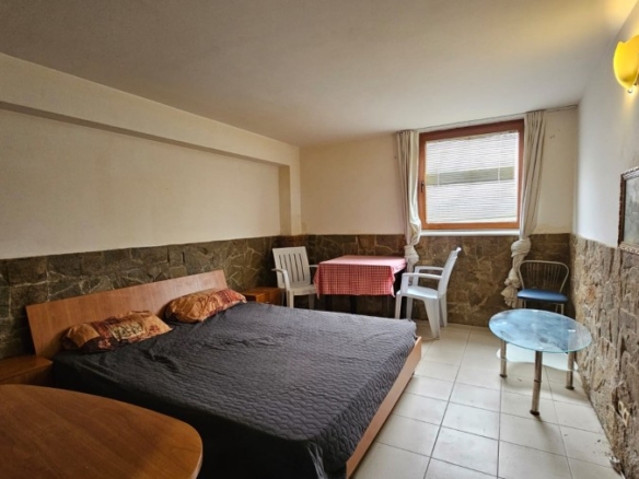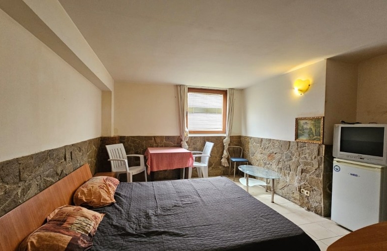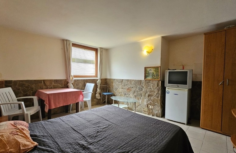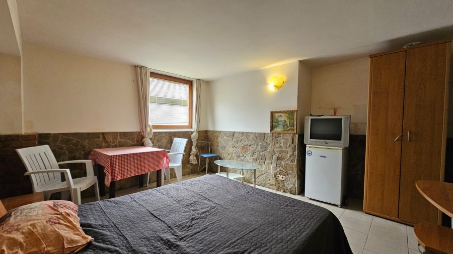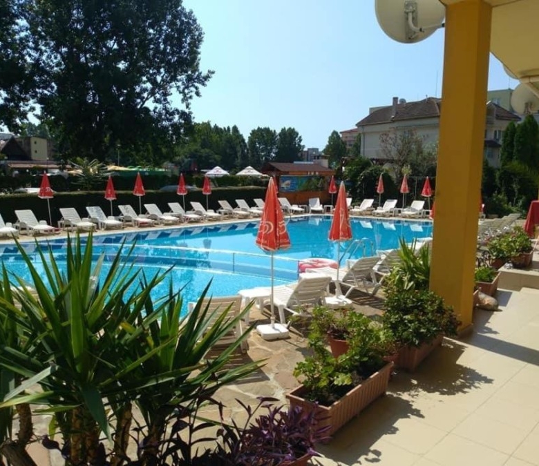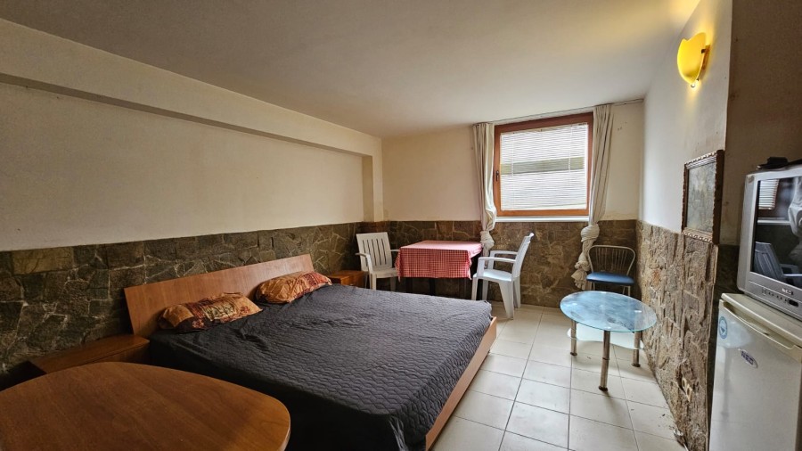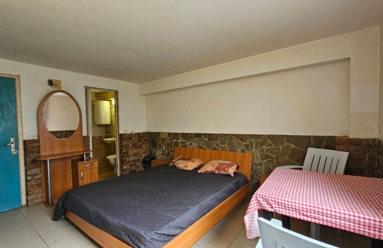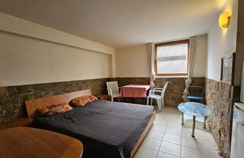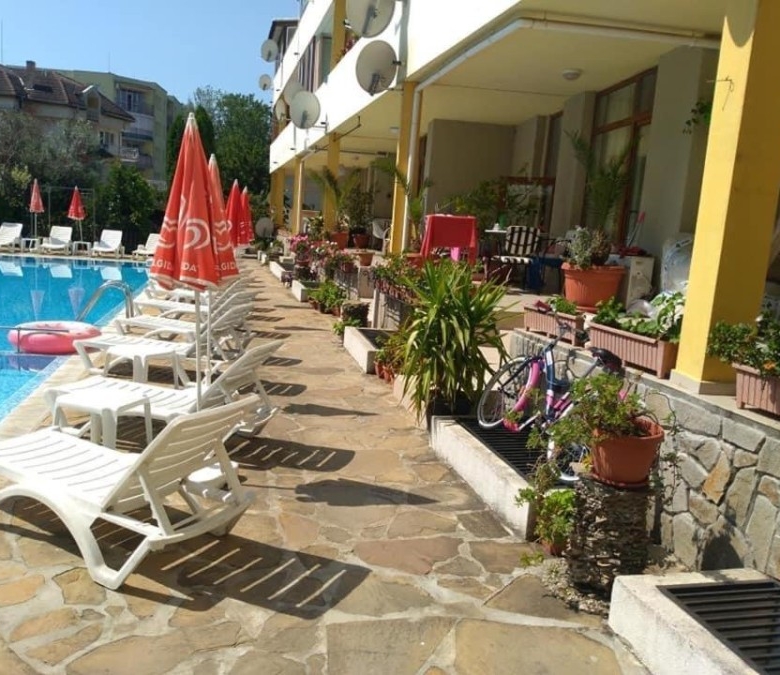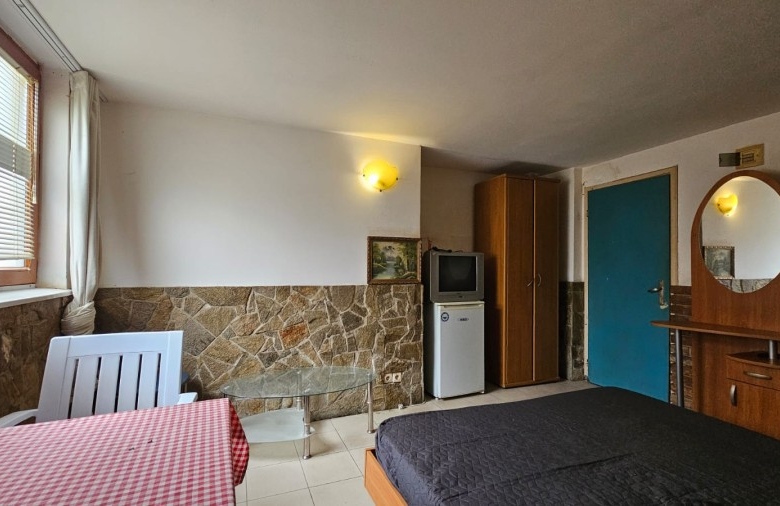 Budget studio apartment for sale in the Blue Summer complex, Sunny Beach, Bulgaria The Blue Summer complex is located in one of the most convenient areas of Sunny Beach for year-round living. Within walking distance from the complex there are several large supermarkets, a fruit and vegetable market, a pharmacy, a central bus station, several cafes and restaurants. The complex is only 1.4 km from the Action Aqua Park in Sunny Beach. The distance to the nearest Burgas Airport is 28 km. Complex infrastructure: – outdoor swimming pool; – free parking; – barbecue area; – bar. The studio with a total area of 22.43 m2 is located on the ground floor and consists of a living room with a sleeping area and a bathroom with a shower. The studio is equipped with furniture and appliances. Maintenance fee – 205 € / year.