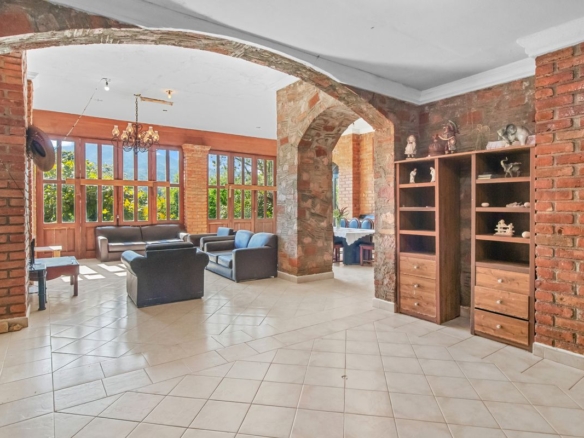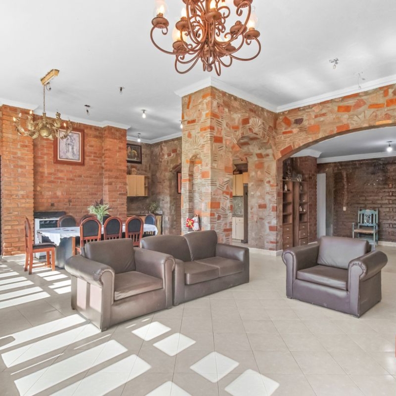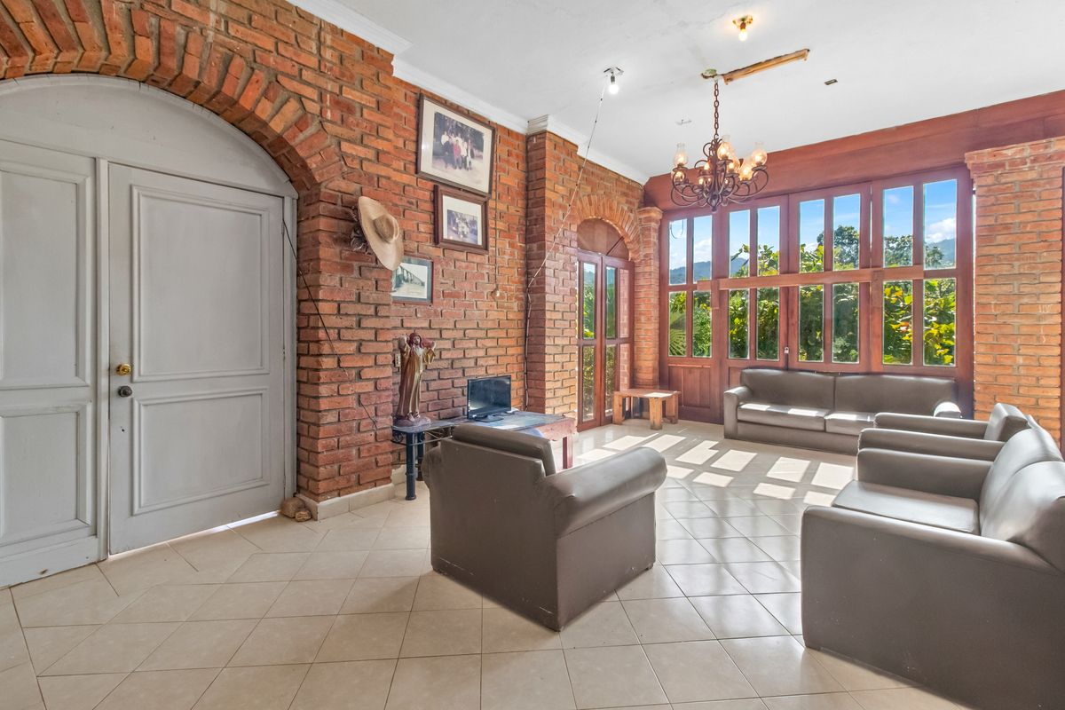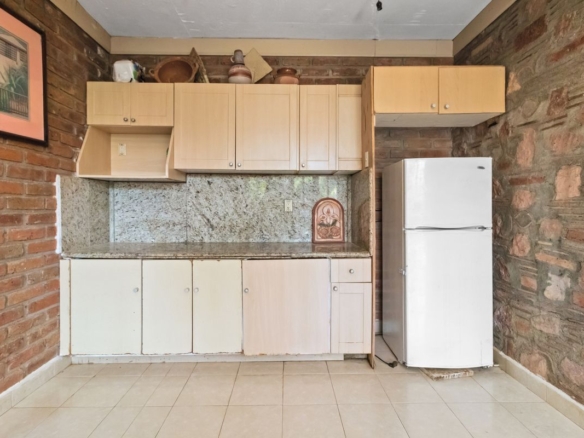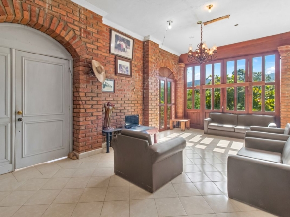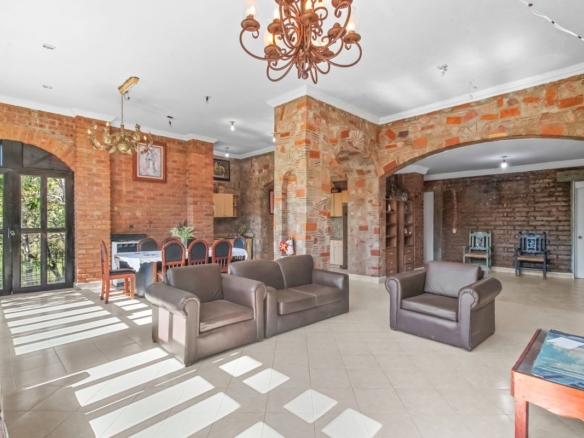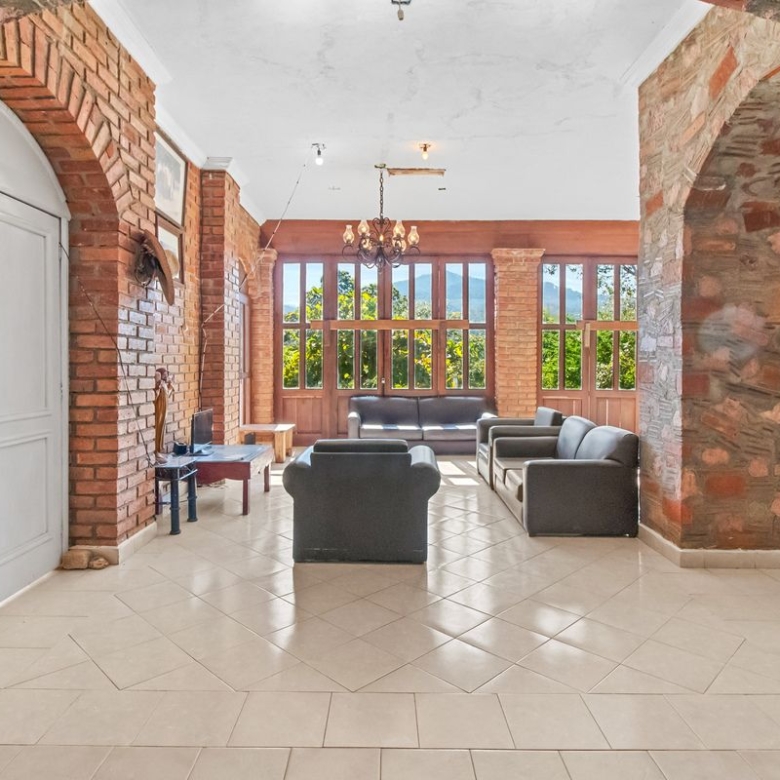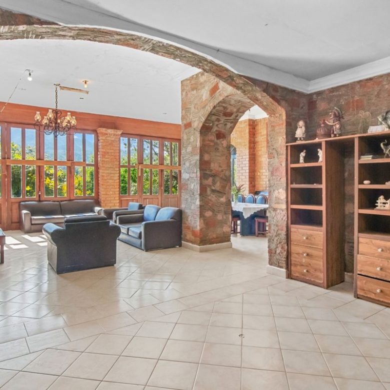 Casa de Campo with solid construction with finishes in “ old wall ” of stone and brick, surrounded by vegetation and fruit trees, a few steps from the river. Solidly built country house with mixed stone and brick rustic wall finishes, surrounded by vegetation and fruit trees, just a few steps from the river. Possibility to build up another level or two. The main house has 3 bedrooms and 2 full bathrooms, plus an adjacent building ideal for workers with 2 bedrooms and 1 full bathroom. Enjoy the tranquility and mountain views. Constant water supply from a common well. Two kitchens: one inside and one outside with a griddle for freshly made tortillas.
