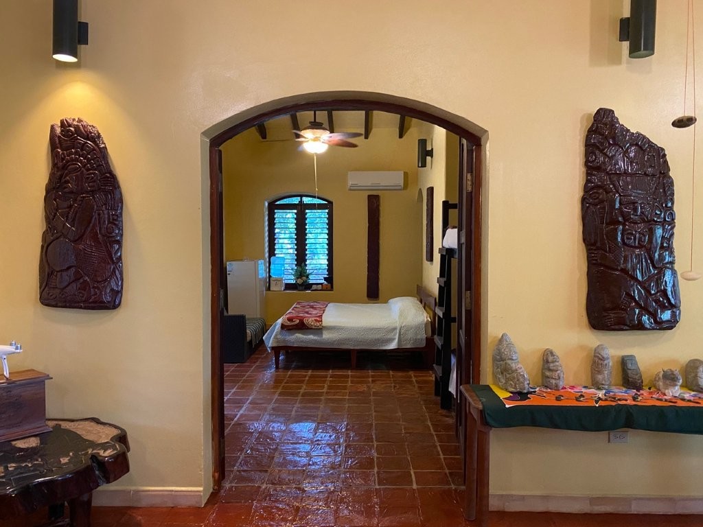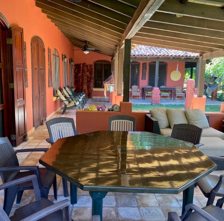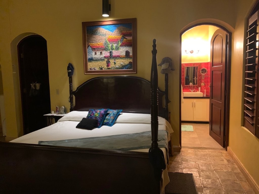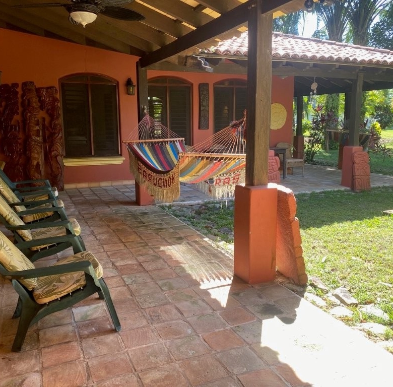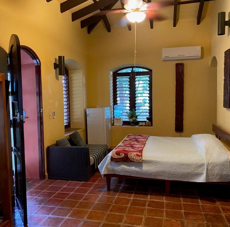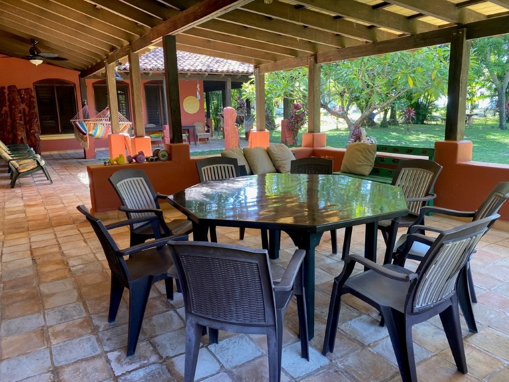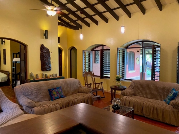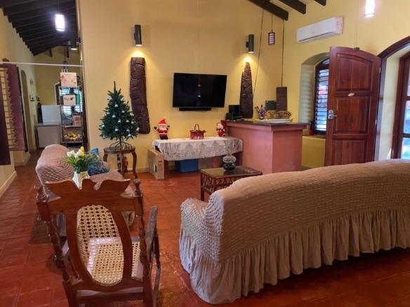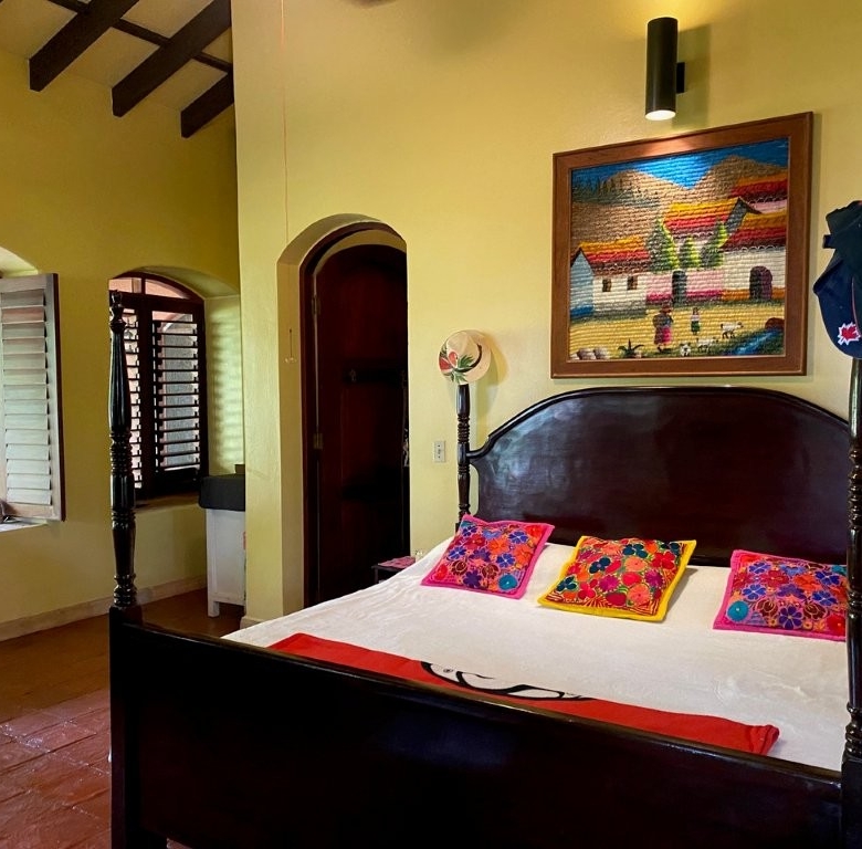 * Large Adobe Personal Home: A stunning main residence featuring impressive 20-foot high ceilings with open mahogany beams, two spacious bedrooms, three bathrooms, and two expansive patios, all overlooking the beautiful Caribbean Sea. Its Spanish Adobe construction and 9-foot mahogany doors exude authentic charm and durability.