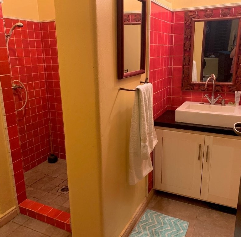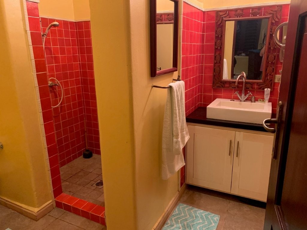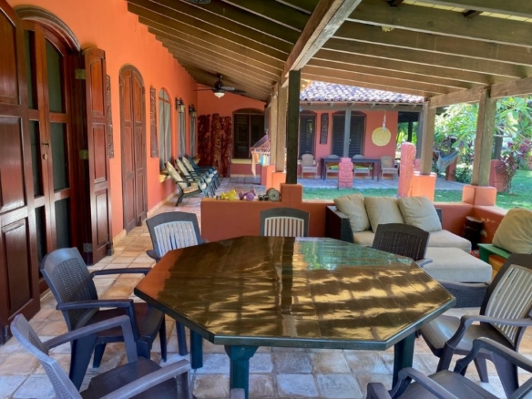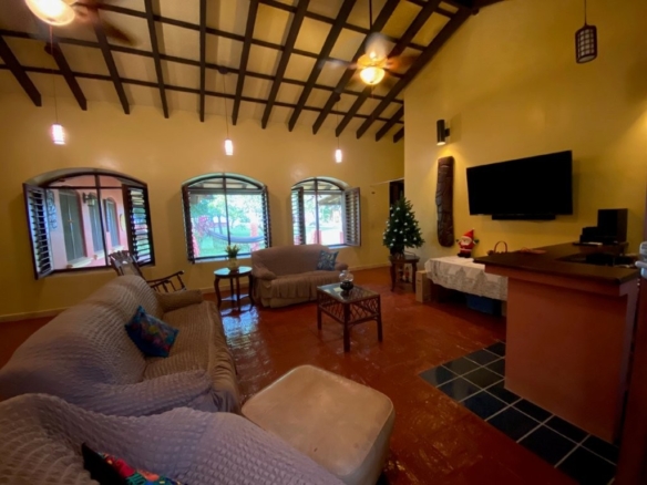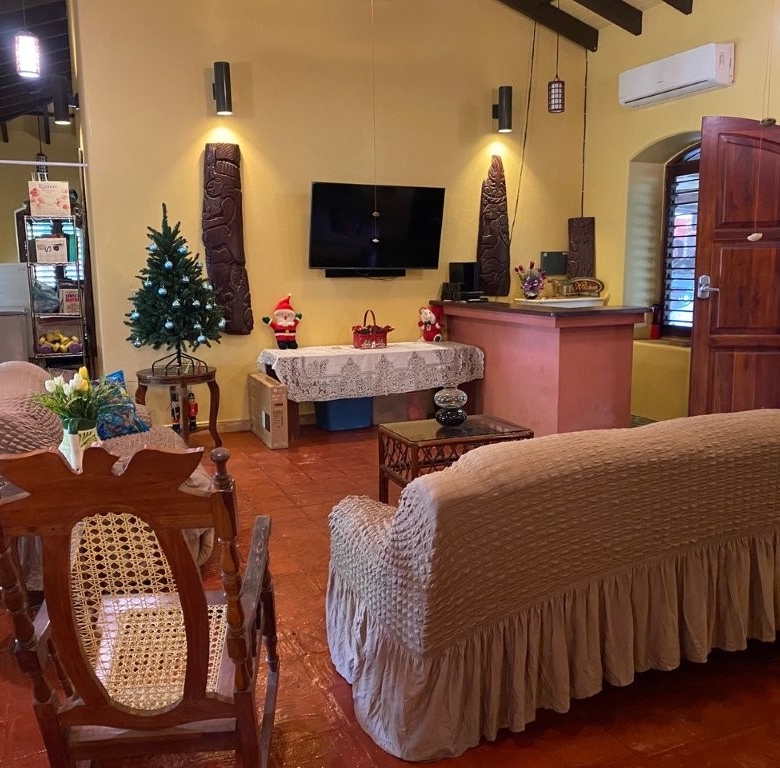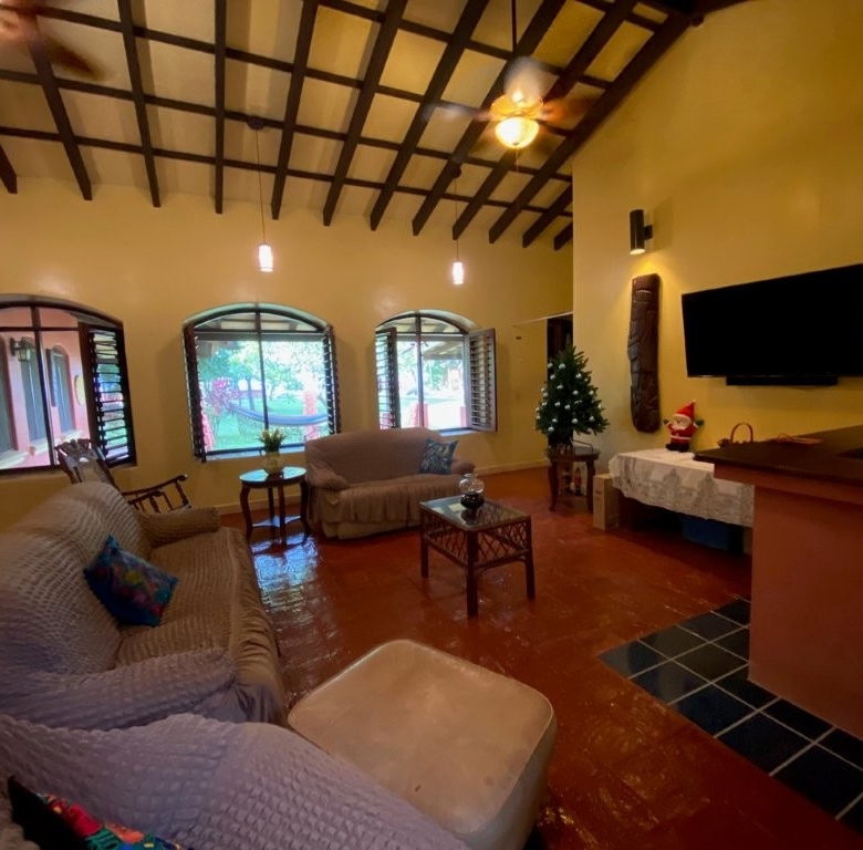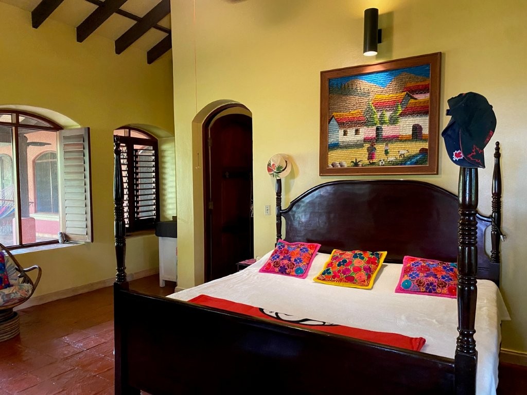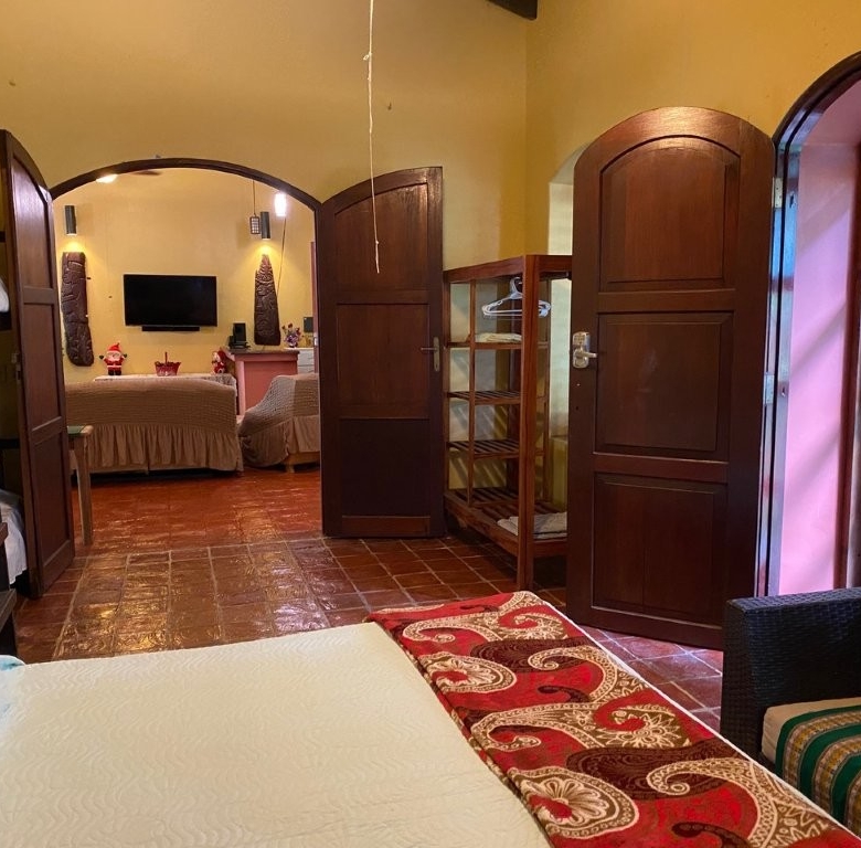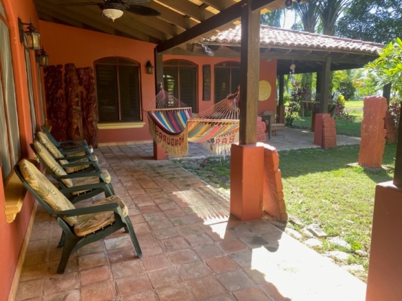 * Large Adobe Personal Home: A stunning main residence featuring impressive 20-foot high ceilings with open mahogany beams, two spacious bedrooms, three bathrooms, and two expansive patios, all overlooking the beautiful Caribbean Sea. Its Spanish Adobe construction and 9-foot mahogany doors exude authentic charm and durability.