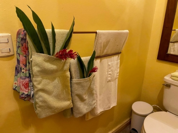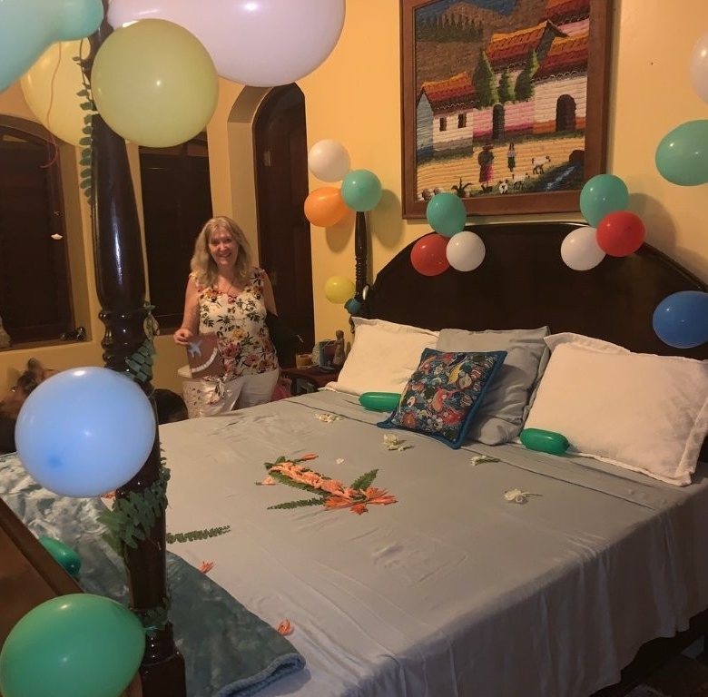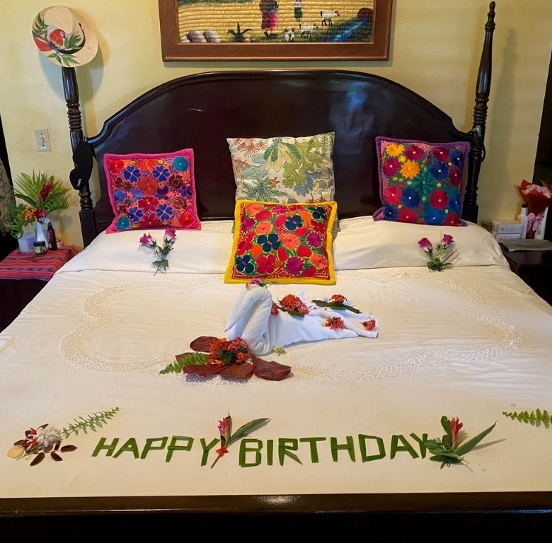 The retreat’s location provides an extraordinary canvas of natural splendor. The property unfurls directly onto a stretch of beautiful Caribbean soft white sand beach, where the sparkling turquoise waters invite endless exploration. Behind, the majestic rainforest and mountains rise, creating a breathtaking backdrop that seamlessly merges ocean, forest, and sky. The vibrant flora and fauna are a constant delight, with colorful flowers, tropical plants, and majestic trees weaving a tapestry of natural beauty unique to this part of tropical Honduras. Adding to the charm, our two rescued monkeys provide endless entertainment for guests young and old, embodying the retreat’s connection to nature and commitment to compassionate living.