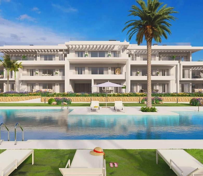 New Development: Prices from 555,000 € to 605,000 €. [Beds: 2 – 2] [Baths: 2 – 2] [Built size: 104.00 m2 – 114.00 m2] AREA The Costa del Sol enjoys one of Europe’s particularly special ecosystems. Not only does it have an exceptional number of sunny days, it is also protected from the winter winds by a chain of mountains, and has a milder climate in the summer. Excellent transport links, airports close to hand and all the services from Marbella to Gibraltar: golf courses, restaurants and commercial areas, marinas, hotels, hospitals and schools. This development lies within the bounds of the village of Casares, a ‘white village’, known for the beauty of its walking routes, and with the best coves for swimming, fishing and scuba diving. OUTDOORS This development is the residential development of your dreams, stretching through over 40,000 m2 with exotic gardens. A development of buildings with a catching design of white lines and gentle outlines for its south-facing apartments. The apartments sit in small residential groups, nestling among large green zones of palm trees, tropical plants and pools, which create a green Mediterranean ecosystem. A walkway skirts the edge of the lagoon, so you can enjoy the natural setting and views while you walk, run or enjoy other wheeled sports. The artificial beaches are of fine beige sand and have sun deck areas and zones for beach sports, communal service facilities, changing rooms and shower. QUALITIES Our homes offer a quality residential experience aimed at maximising bright interiors with large terraces overlooking a unique environment. Each home enjoys quality finishes including Porcelanosa tiles throughout, kitchens equipped with Bosch appliances and Technal windows providing maximum insulation and comfort. There is also centralised hot and cold air conditioning, an elevator to underground parking, and a private storage room for each apartment. Experience Exceptional Service Only With Us When Purchasing Your Marbella Home. We offer our clients an unrivaled service, from first contact to moving into your new home in the sun, we will be with you on your journey all the way. Our aim is to exceed all expectations delivering excellent service, up to date real time property listings, and a customer experience that is unrivaled in the real estate industry. We have access to the best lawyers, most competitive mortgage solutions and the best money exchange rates available. Put your trust in us to deliver an informative, caring, no hidden cost solution that will help to make your purchase in the sun stress free, easy and enjoyable. Apartment for sale in Casares Property ID: AVH-R3917239 Price: €580,000 Property Size: 104 m2 Bedrooms: 2 Bathrooms: 2 Property Type: Apartment Property Status: For Sale