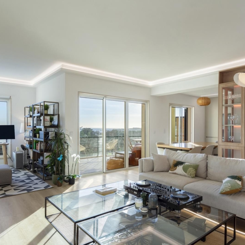 Penthouse apartment converted into a 5 bedroom apartment. Inserted in a prestigious private condominium in Estoril, with sea views. Initially there were 2 apartments: a 3 bedroom apartment and a 2 bedroom apartment. Totally refurbished in 2023 with excellent finishes, with a 260 sqm private gross area with balconies, terraces and Rooftop with an excellent sun exposure – South. Total outdoor area of 444 sqm, with the 195 sqm terrace and the 249 sqm Rooftop overlooking Estoril and the sea up to the marina of Cascais. There is the possibility of making a pergola in the Rooftop. The apartment is developed on a single floor. The areas are distributed as follows: - Large dimensioned entry hall (17,31 sqm) - Living and dining room in open space with a state-of-the-art kitchen, very well integrated with high-end household appliances (70.28 sqm), with access to the balcony, facing south and with magnificent views of the sea and the emblematic Casino Estoril. - Master suite with fireplace and sea view (21 sqm) with an ample bathroom (11 sqm) and closet (8 sqm) - Suite with sea view (17 sqm) and bathroom (8.75 sqm) - Suite (12 sqm) - Two bedrooms (11 sqm + 12 sqm) supported by a bathroom - Social bathroom (2,22 sqm) - Circulation area (20 sqm) - Terraces All the rooms have double glazed window frames, central heating and electrical blinds. The main features: 5 bedrooms, 5 bathrooms and 2 terraces, including the private Rooftop. The condominium offers gardens, salted water swimming pool in the condominium, as well as 5 parking spaces and 2 storage areas. Situated next to the emblematic Casino Estoril, near the sea (a 5 minutes’ walk) and at the same distance to the train station to Lisbon, bicycle paths, schools, restaurants and all sorts of local business and various transportation options. Cascais is a Portuguese village famous for its bay, local business and its cosmopolitanism. It is considered the most sophisticated destination of the Lisbon’s region, where small palaces and refined and elegant constructions prevail. With the sea as a scenario, Cascais can be proud of having 7 golf courses, a casino, a marina and countless leisure areas. It is 30 minutes away from Lisbon and its international airport. Porta da Frente Christie’s is a real estate agency that has been operating in the market for more than two decades. Its focus lays on the highest quality houses and developments, not only in the selling market, but also in the renting market. The company was elected by the prestigious brand Christie’s – one of the most reputable auctioneers, Art institutions and Real Estate of the world – to be represented in Portugal, in the areas of Lisbon, Cascais, Oeiras, Sintra and Alentejo. The main purpose of Porta da Frente Christie’s is to offer a top-notch service to our customers. Property ID: PDF-PF31988 Price: €3,800,000 Property Size: 270.0 m2 Bedrooms: 5 Bathrooms: 5 Property Type: Apartment Property Status: For Sale