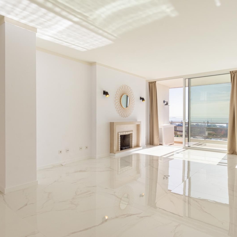 In one of the main avenues of Cascais, Avenida 25 de Abril, just a 10 minutes’ walk from the centre, is one of the most emblematic buildings of the area, surrounded by local business and services such as banks, restaurants, bakery and gym, among others, converting this location into one of the best for those who are looking for centrality and prestige. The wildest Atlantic is a 5 minutes’ walk towards west, in Boca do Inferno and the famous Guincho beach is only 8 minutes away by car. In the vicinities, just a few minutes away, there are several golf courses, equestrian courses and the famous marina of Cascais. The apartment has the following features: * 4 bedroom apartment with a 136 sqm private gross area, transformed into a 3 bedroom apartment; * Generously sized closet in the master suite (replacing the fourth bedroom); * Total sea view facing south, from the kitchen, living room and master suite; * West/sea view from the other 2 bedrooms; * All the bedrooms have wardrobes and French oak flooring; * Common living room with approximately 40 sqm and fireplace; * A balcony in the living room with south sun exposure and pavement in beige ceramic deck; * Stunning view from the balcony of the living room from Sao Juliao da Barra to Cascais; * 2 large dimensioned bathrooms and a social bathroom; * Fully equipped kitchen with Miele household appliances; * Air conditioning in all the rooms; * Box garage with automatic gate for one car; * swimming pool in the condominium; Cascais is a Portuguese village famous for its bay, local business and its cosmopolitanism. It is considered the most sophisticated destination of the Lisbon’s region, where small palaces and refined and elegant constructions prevail. With the sea as a scenario, Cascais can be proud of having 7 golf courses, a casino, a marina and countless leisure areas. It is 30 minutes away from Lisbon and its international airport. Porta da Frente Christie’s is a real estate agency that has been operating in the market for more than two decades. Its focus lays on the highest quality houses and developments, not only in the selling market, but also in the renting market. The company was elected by the prestigious brand Christie’s International Real Estate to represent Portugal in the areas of Lisbon, Cascais, Oeiras and Alentejo. The main purpose of Porta da Frente Christie’s is to offer a top-notch service to our customers. Property ID: PDF-PF31025 Price: €1,399,000 Property Size: 136.0 m2 Bedrooms: 3 Bathrooms: 3