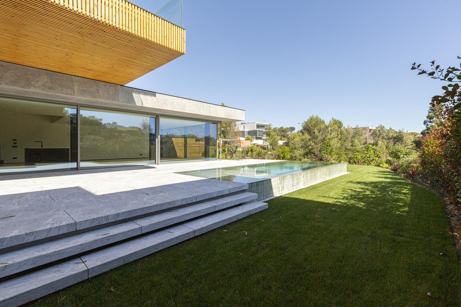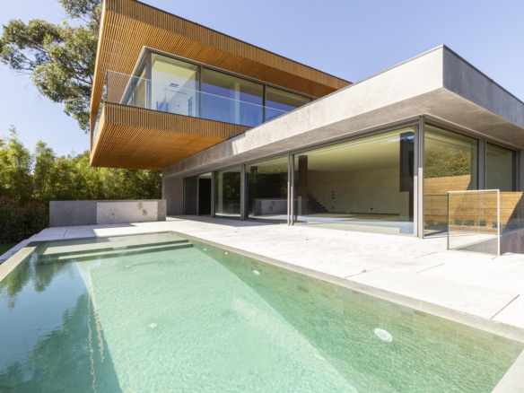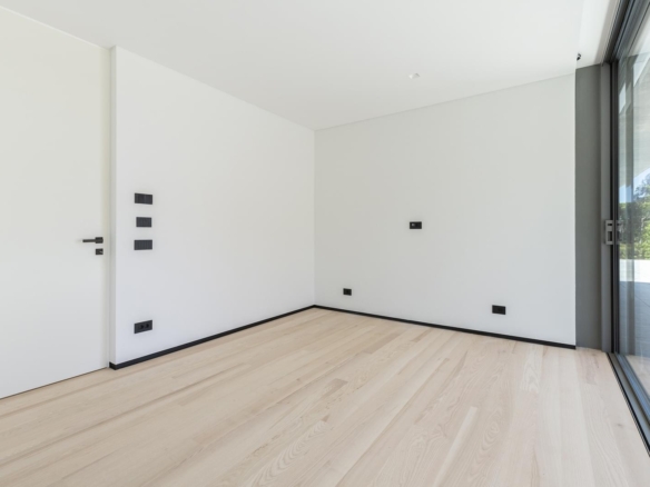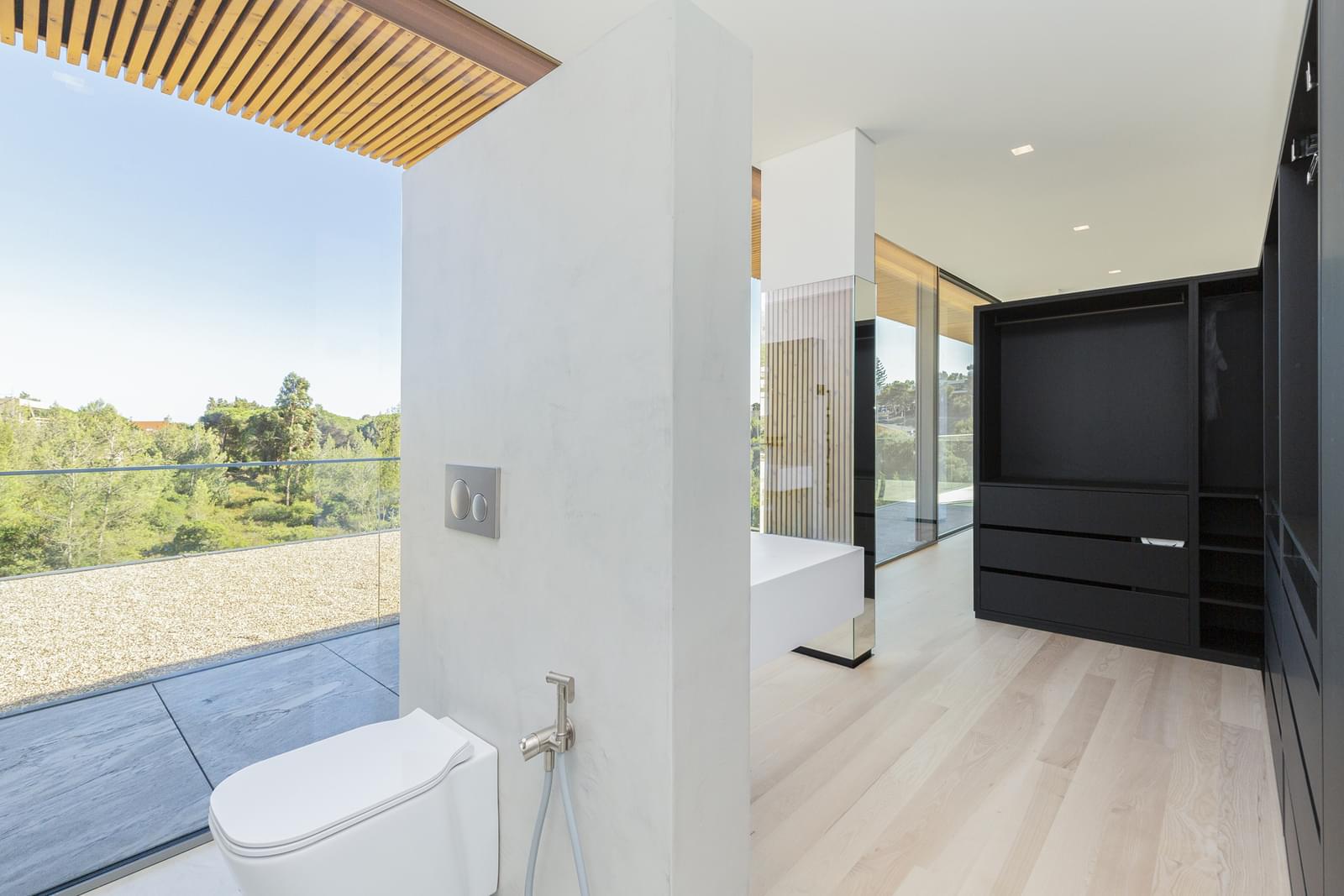 Villa, of modern architecture, inserted in a private condominium composed by 4 villas. The villa is detached, with a private garden and swimming pool, in a 570 lot sqm and with the following distribution: Entrance floor: - Entry hall - common living room: 95,4 sqm - Fully equipped kitchen, in open space, with MIELE household appliances - social bathroom - bedroom/office area: 15 sqm Upper floor: - Suite: 30 sqm with closet - Suite: 25 sqm with closet - Master suite: 32 sqm with closet Lower floor: - Multipurpose room: 36 sqm - Laundry area: 16 sqm - Garage: 94 sqm - Wine cellar with temperature sensor for wine preservation To highlight the excellent quality finishes with attention to the smallest detail. Finishes: - Radiant floor heating - Radiant roof - Duct air conditioning system - Heating of sanitary waters and radiant floor heating by heat pump - Minimalist high-end window frames and tempered glass - Barbecue with grill, sink, preparation bench and storage modules - Main and first floor on solid ash flooring - 1 floor in large dimensioned porcelain floor with a finish similar to microcement - Domotics system allowing a centralized management in the control of lighting, blinds, curtains, HVAC with the possibility of creating different environments in the various spaces of the villa - All the rooms include a dirty clothing vacuum conduct that leads to the laundry area - Bathrooms coated in microcement, including the flooring and fitted with sanitary ware of the Porcelanosa brand - Electrical blinds and blackouts system with Windscreen Blackout system - Transhipment swimming pool, with salt treatment, with counter-current system - Three-phase sockets installed in the outdoor parking and garage to ensure charging of electric and hybrid vehicles. Cascais is a Portuguese village famous for its bay, local business and its cosmopolitanism. It is considered the most sophisticated destination of the Lisbon’s region, where small palaces and refined and elegant constructions prevail. With the sea as a scenario, Cascais can be proud of having 7 golf courses, a casino, a marina and countless leisure areas. It is 30 minutes away from Lisbon and its international airport. Porta da Frente Christie’s is a real estate agency that has been operating in the market for more than two decades. Its focus lays on the highest quality houses and developments, not only in the selling market, but also in the renting market. The company was elected by the prestigious brand Christie’s – one of the most reputable auctioneers, Art institutions and Real Estate of the world – to be represented in Portugal, in the areas of Lisbon, Cascais, Oeiras, Sintra and Alentejo. The main purpose of Porta da Frente Christie’s is to offer a top-notch service to our customers. Property ID: PDF-PF30115 Price: €3,120,000 Property Size: 380.0 m2 Land Area: 570.0 m2 Bedrooms: 4 Bathrooms: 5 Year Built: 2023