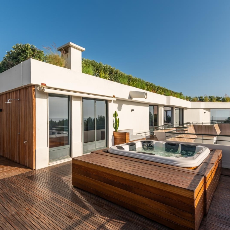 Porta da Frente Christie’s is pleased to present this magnificent Penthouse, opposite the beach of Carcavelos and with suspended gardens. This Penthouse has been completely refurbished and designed for maximum comfort and enjoyment. From materials used as Jatoba wood for the suites, Ibiza Premium marble for the bathrooms, Nero Portoro Italian marble and Miele equipment for the kitchen, to the creation of different outdoor environments in the gardens. These unique gardens, besides offering a stunning sea view, are composed of natural grass, and part of them is complemented by a deck made with Cumaru wood. In addition to being divided into two distinct environments, tropical and Japanese, there is the possibility of placing a swimming pool in one of the gardens. The property is inserted in a private condominium, on the first sea line in Carcavelos, and includes one parking space in a closed garage and an elevator with direct access to the apartment. The apartment is complemented with Mitsubishi air conditioning in all the rooms, double glazed windows and video intercom. 25 minutes away from Lisbon or 15 minutes away from Cascais, Carcavelos is a location that blends the natural beauty of the beaches, with the proximity of the centres and all sorts of local business and services. It becomes an attractive place for those who want to have a lifestyle by the sea. Porta da Frente Christie’s is a real estate agency that has been operating in the market for more than two decades. Its focus lays on the highest quality houses and developments, not only in the selling market, but also in the renting market. The company was elected by the prestigious brand Christie’s – one of the most reputable auctioneers, Art institutions and Real Estate of the world – to be represented in Portugal, in the areas of Lisbon, Cascais, Oeiras, Sintra and Alentejo. The main purpose of Porta da Frente Christie’s is to offer a top-notch service to our customers. Property ID: PDF-PF31593 Price: €1,750,000 Property Size: 145.0 m2 Bedrooms: 2 Bathrooms: 3