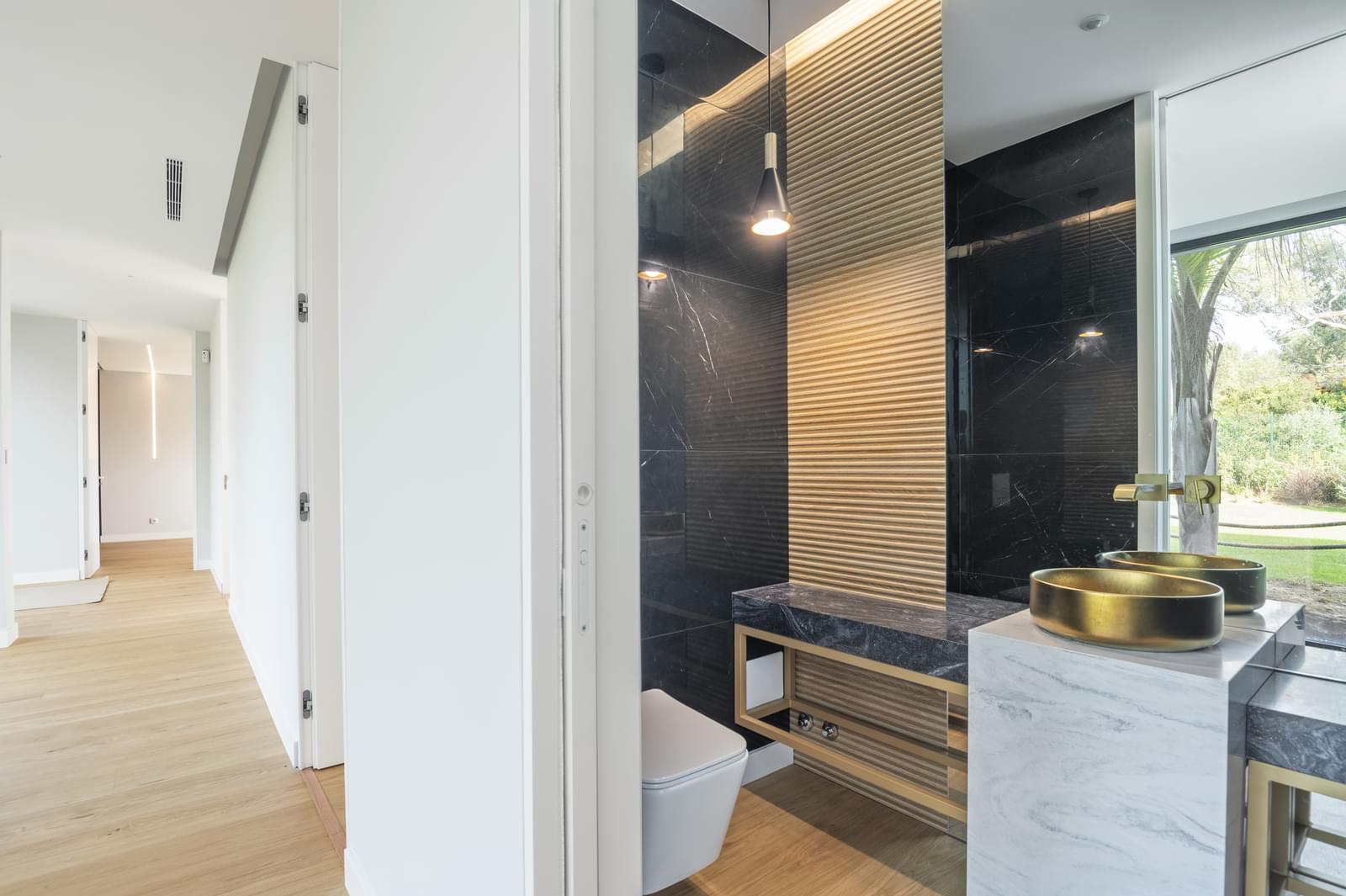 Extraordinary detached 5+2 bedroom villa, new, located at the top of Avenida de Sintra, in Cascais. The villa presents top finishes and very generous areas and high ceilings. It is distributed over several floors, interconnected by a private elevator: Ground Floor - Garage: 100 sqm - Gym with natural light, sauna, Turkish bath and a full private bathroom - Laundry area - Several storage areas First Floor - Access to the garden, leisure area, swimming pool, solarium, support bar and social bathroom - Lounge/Library/Office area - 2 suites - all with access to a 92 sqm balcony - Social bathroom Third Floor - Big living room: 61 sqm - Kitchen - Social bathroom - 2 suites with a walk-in closet - mastersuite with balcony and a 40 sqm private terrace The garden, with an exquisite landscaping, is distributed by several generous terraces, which follow the height of the house, allowing an independent use of the social and private areas of the house. The finishes are top and distinctive. This villa is placed in a discreet area, with a fast growing and of great municipal and private investment. It is five minutes away from: reputable public and private schools in the area motorway access that connects to Lisbon (A5) several of the most prestigious and exclusive golf courses in the area beaches of Cascais and Guincho all sorts of day-to-day services: shopping centre (CascaiShopping) that integrates everything but also street local business public transportation (free bus network) Ready to live in, completely new construction. Property ID: PDF-PF31922 Price: €3,800,000 Property Size: 500.0 m2 Land Area: 911.0 m2 Bedrooms: 5 Bathrooms: 7 Year Built: 2023