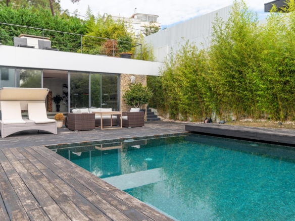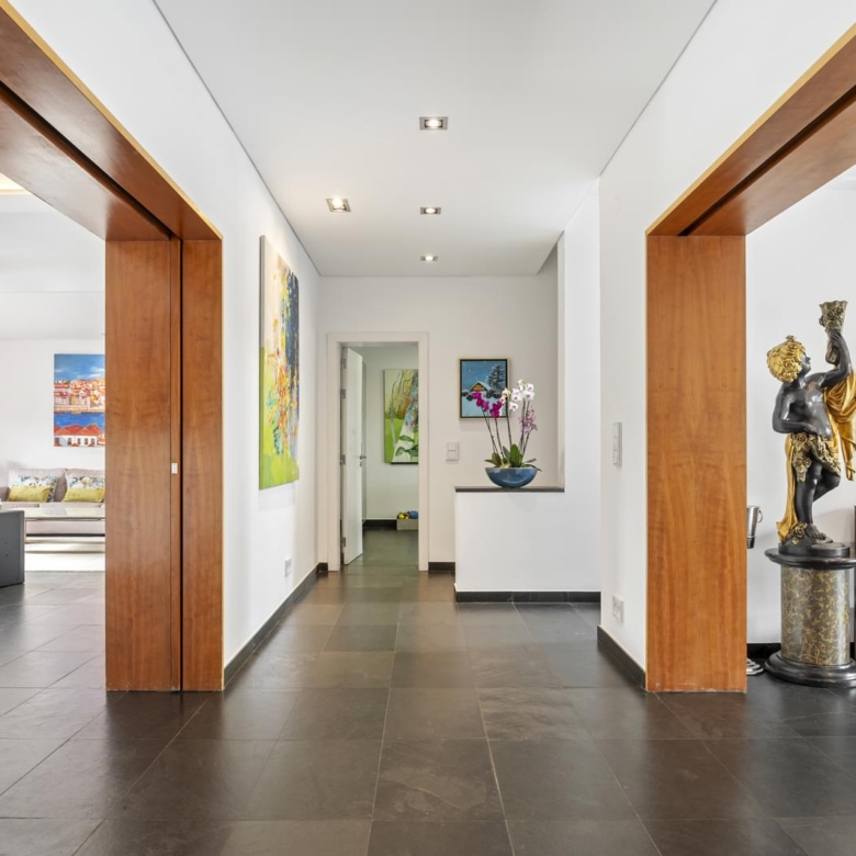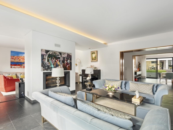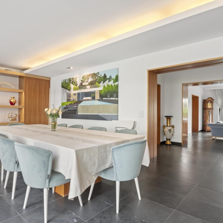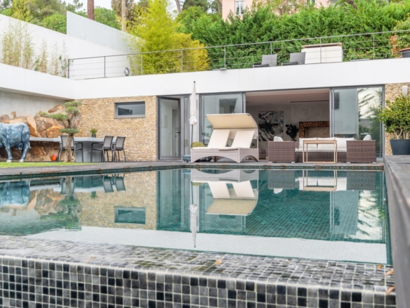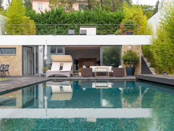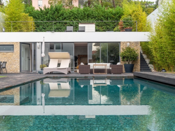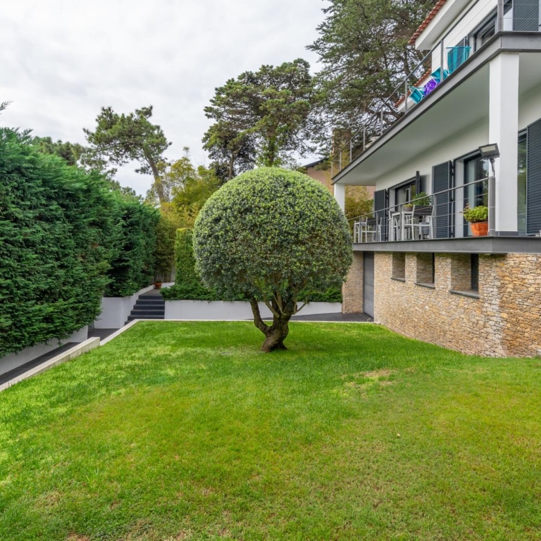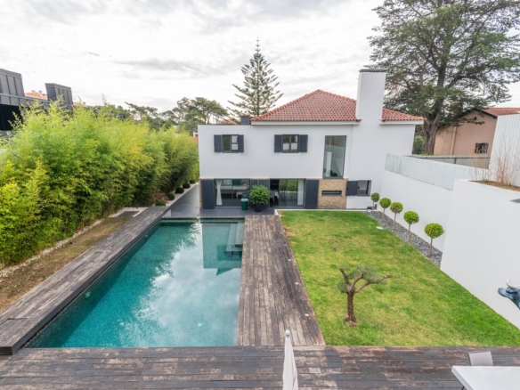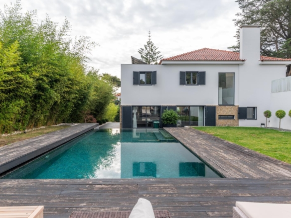 Villa with a privileged location in Estoril, in a quiet area, with a large dimensioned plot with more than 1,100 sqm and a 670 sqm construction area. It offers a balanced layout, features such as radiant floor heating and a heated swimming pool, making it a practical and comfortable choice. The distribution of the villa is as follows: Ground Floor - Living room with a double-sided fireplace allowing two environments. - Dining room. - Kitchen equipped with Gaggenau household appliances. - Library/ office. - Social bathroom Upper floor: - 4 bedrooms with 2 bathrooms - Master suite with closet and balcony. Floor -1: - Technical room. - Storage area. - Garage. - Additional suite. The property includes a spacious garden with a Summer Room that comprises a fireplace and a bathroom, and also a Turkish bath room, being ideal for relaxation and to support the swimming pool. This villa is perfect for a family and it is conveniently located near international schools. In addition, it offers easy accesses to Lisbon and it is placed in a premium area of Estoril. Porta da Frente Christie’s is a real estate agency that has been operating in the market for more than two decades. Its focus lays on the highest quality houses and developments, not only in the selling market, but also in the renting market. The company was elected by the prestigious brand Christie’s – one of the most reputable auctioneers, Art institutions and Real Estate of the world – to be represented in Portugal, in the areas of Lisbon, Cascais, Oeiras, Sintra and Alentejo. The main purpose of Porta da Frente Christie’s is to offer a top-notch service to our customers. Property ID: PDF-PF31630 Price: €4,950,000 Property Size: 558.56 m2 Land Area: 1169.0 m2 Bedrooms: 5 Bathrooms: 4