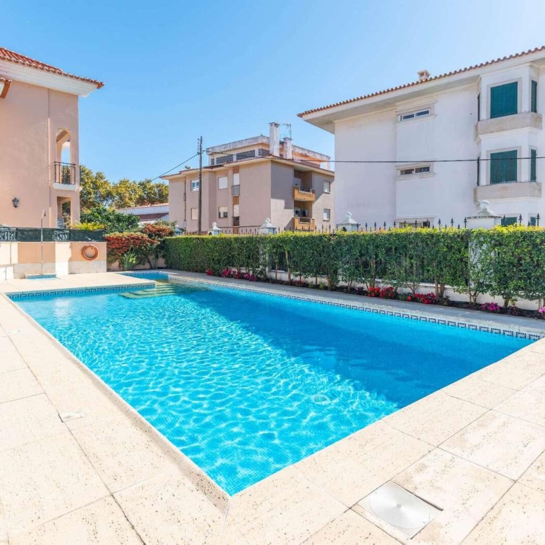3 bedroom apartment in the centre of Parede, placed on the top floor of a familiar condominium with swimming pool, in Parede, Cascais, 300 metres away from the Parede beach, with a 123 sqm private gross area and a 59 sqm garage with parking space for three cars, with an easy access. Sun exposure: South/West/North. The areas are distributed as follows: - 7 sqm Entry hall - 35 sqm Living room with fireplace and balcony - Social bathroom - 13 sqm Kitchen with balcony and barbecue area - 16 sqm Bedroom with a surrounding balcony - 11.50 sqm Bedroom and a bathroom to support the two bedrooms - 14 sqm Suite with a balcony facing south. This familiar condominium includes garden and swimming pool. Located close to the dazzling Cascais beach line, several transportation options, bicycle paths, schools, restaurants and all sorts of local business. Cascais is a Portuguese village famous for its bay, local business and its cosmopolitanism. It is considered the most sophisticated destination of the Lisbon’s region, where small palaces and refined and elegant constructions prevail. With the sea as a scenario, Cascais can be proud of having 7 golf courses, a casino, a marina and countless leisure areas. It is 30 minutes away from Lisbon and its international airport. Porta da Frente Christie’s is a real estate agency that has been operating in the market for more than two decades. Its focus lays on the highest quality houses and developments, not only in the selling market, but also in the renting market. The company was elected by the prestigious brand Christie’s – one of the most reputable auctioneers, Art institutions and Real Estate of the world – to be represented in Portugal, in the areas of Lisbon, Cascais, Oeiras, Sintra and Alentejo. The main purpose of Porta da Frente Christie’s is to offer a top-notch service to our customers. Property ID: PDF-PF31323 Price: €950,000 Property Size: 123.46 m2 Bedrooms: 3 Bathrooms: 3 Year Built: 1999