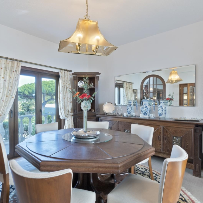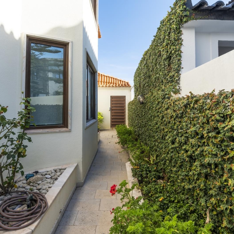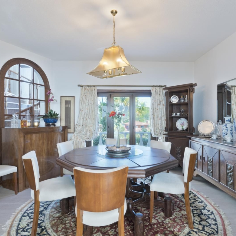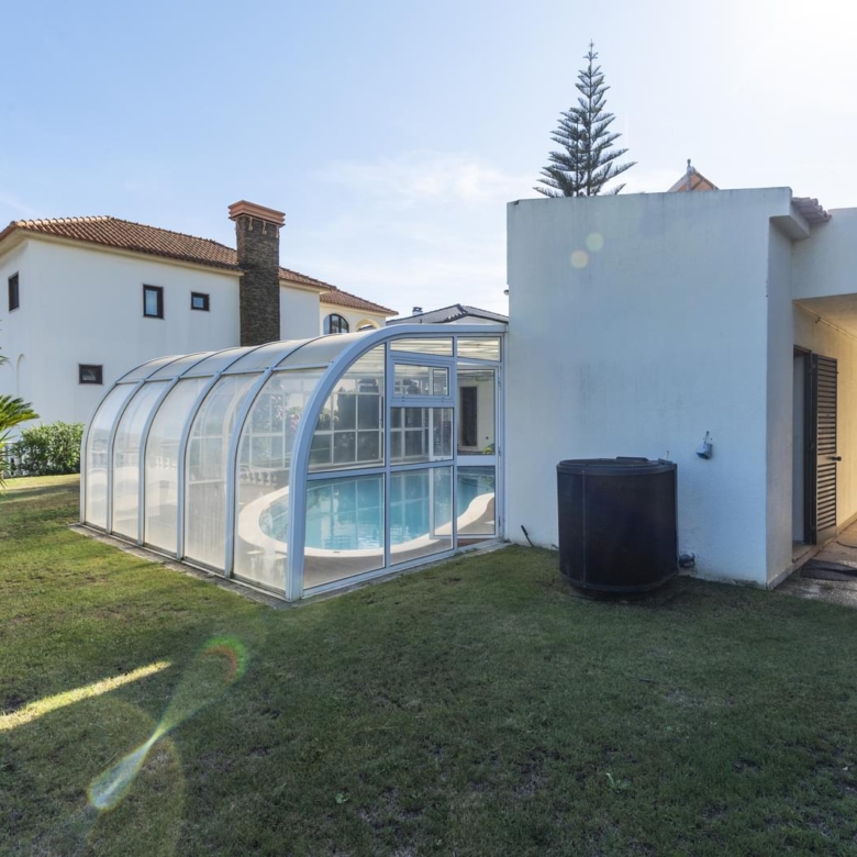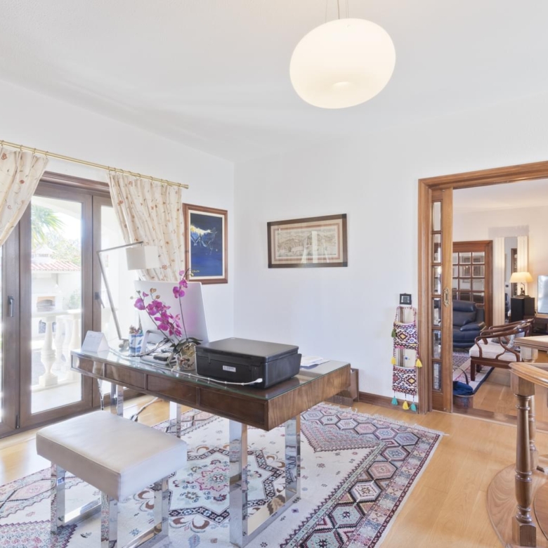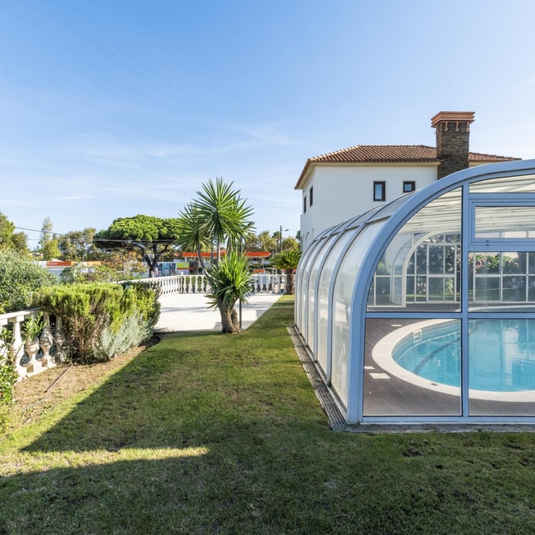 5 bedroom villa, located in the privileged area of Quinta da Bicuda, in Cascais. With a traditional Portuguese architecture, the villa is implanted in an 839 sqm lot, with a 313 sqm constructed area, distributed by three floors: Ground floor: - Hall with double high ceiling - Living room - Dining room - Fully fitted kitchen with laundry area and access to an exterior barbecue - Small dining room - Social bathroom - Office / library First Floor: - 4 bedrooms distributed by a communal hall to each 2 bedrooms - 1 suite - 3 full private bathrooms - 3 balconies Basement: - Multipurpose room - Bathroom - Storage area Leisure area: - Room to support the swimming pool - Kitchen to support the swimming pool - Changing rooms with showers and bathrooms - Salt treated swimming pool, heated and covered, with the possibility of total opening on the sides. The villa is surrounded by a garden with beautiful hydrangeas and has parking space for 3 cars. Cascais is a Portuguese village famous for its bay, local business and its cosmopolitanism. It is considered the most sophisticated destination of the Lisbon’s region, where small palaces and refined and elegant constructions prevail. With the sea as a scenario, Cascais can be proud of having 7 golf courses, a casino, a marina and countless leisure areas. It is 30 minutes away from Lisbon and its international airport. Porta da Frente Christie’s is a real estate agency that has been operating in the market for more than two decades. Its focus lays on the highest quality houses and developments, not only in the selling market, but also in the renting market. The company was elected by the prestigious brand Christie’s – one of the most reputable auctioneers, Art institutions and Real Estate of the world – to be represented in Portugal, in the areas of Lisbon, Cascais, Oeiras, Sintra and Alentejo. The main purpose of Porta da Frente Christie’s is to offer a top-notch service to our customers. Property ID: PDF-PF28715 Price: €1,890,000 Property Size: 202.78 m2 Land Area: 839.0 m2 Bedrooms: 5 Bathrooms: 5 Year Built: 1992