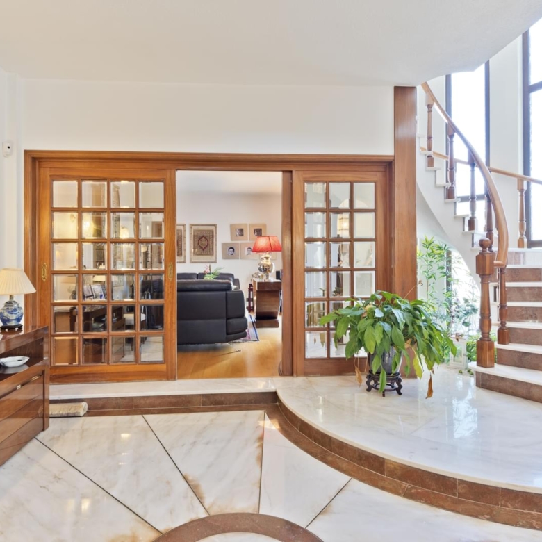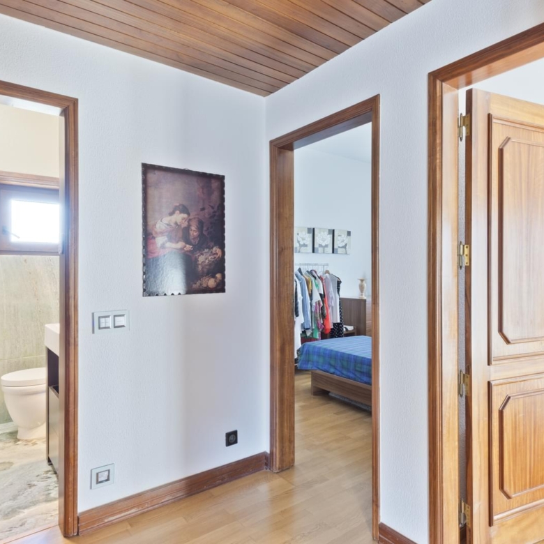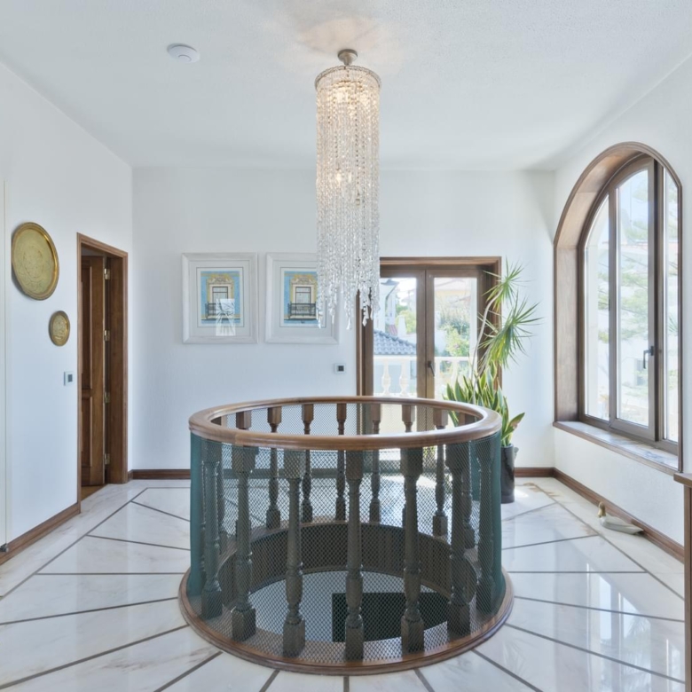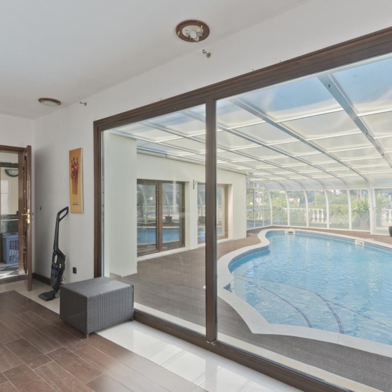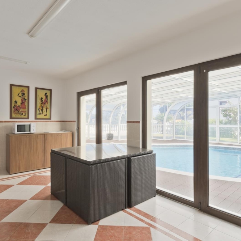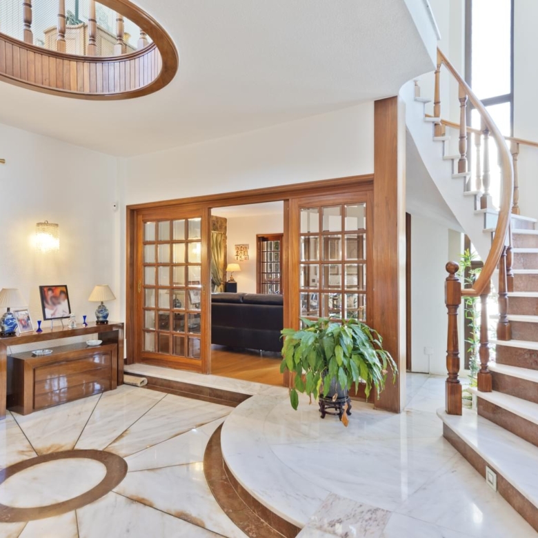 5 bedroom villa, located in the privileged area of Quinta da Bicuda, in Cascais. With a traditional Portuguese architecture, the villa is implanted in an 839 sqm lot, with a 313 sqm constructed area, distributed by three floors: Ground floor: - Hall with double high ceiling - Living room - Dining room - Fully fitted kitchen with laundry area and access to an exterior barbecue - Small dining room - Social bathroom - Office / library First Floor: - 4 bedrooms distributed by a communal hall to each 2 bedrooms - 1 suite - 3 full private bathrooms - 3 balconies Basement: - Multipurpose room - Bathroom - Storage area Leisure area: - Room to support the swimming pool - Kitchen to support the swimming pool - Changing rooms with showers and bathrooms - Salt treated swimming pool, heated and covered, with the possibility of total opening on the sides. The villa is surrounded by a garden with beautiful hydrangeas and has parking space for 3 cars. Cascais is a Portuguese village famous for its bay, local business and its cosmopolitanism. It is considered the most sophisticated destination of the Lisbon’s region, where small palaces and refined and elegant constructions prevail. With the sea as a scenario, Cascais can be proud of having 7 golf courses, a casino, a marina and countless leisure areas. It is 30 minutes away from Lisbon and its international airport. Porta da Frente Christie’s is a real estate agency that has been operating in the market for more than two decades. Its focus lays on the highest quality houses and developments, not only in the selling market, but also in the renting market. The company was elected by the prestigious brand Christie’s – one of the most reputable auctioneers, Art institutions and Real Estate of the world – to be represented in Portugal, in the areas of Lisbon, Cascais, Oeiras, Sintra and Alentejo. The main purpose of Porta da Frente Christie’s is to offer a top-notch service to our customers. Property ID: PDF-PF28715 Price: €1,890,000 Property Size: 202.78 m2 Land Area: 839.0 m2 Bedrooms: 5 Bathrooms: 5 Year Built: 1992