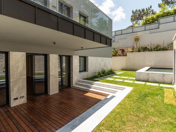 GREEN HILL- A UNIQUE LIFESTYLE Inserted in a residential neighbourhood, Green Hill is composed by familiar villas where privacy and quietness are guaranteed, providing an unparalleled well being and comfort. On the one hand, it is close to cosmopolitan areas like Estoril and Cascais and, on the other hand, green areas and silence are to be rejoiced, immersed in an ambiance of serenity, where each day is experienced with calmness. The first floor of the condominium comprises five Gardens, with typologies that differ from 1 bedroom apartments to 4 bedroom apartments, surrounded by green areas, which are embellished by five private gardens. The 2 bedroom apartments, 3 bedroom apartments and 4 bedroom apartments also benefit from swimming pools, besides the gardens. Green Hill presents a particular architecture and the highest quality finishes, such as the wood plank flooring, lighting through crown mouldings and acoustic and thermal insulation. The bathrooms are decorated with stone, with suspended fittings and tempered glass. The kitchens’ floor and walls are made of stone with polished finishes and they are totally fitted with high range household appliances. The domotics system controls the lighting, the temperature, the rails, the blinds and the detection alarms (fire, gas, flood and intrusion). The completion of the work is predicted to March of 2022. Property ID: PDF-PF29156 Price: €2,500,000 Property Size: 162.0 m2 Bedrooms: 3 Bathrooms: 3 Year Built: 2022