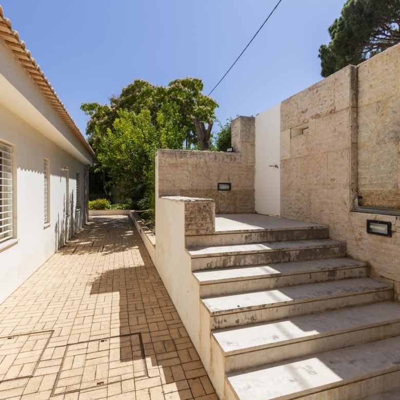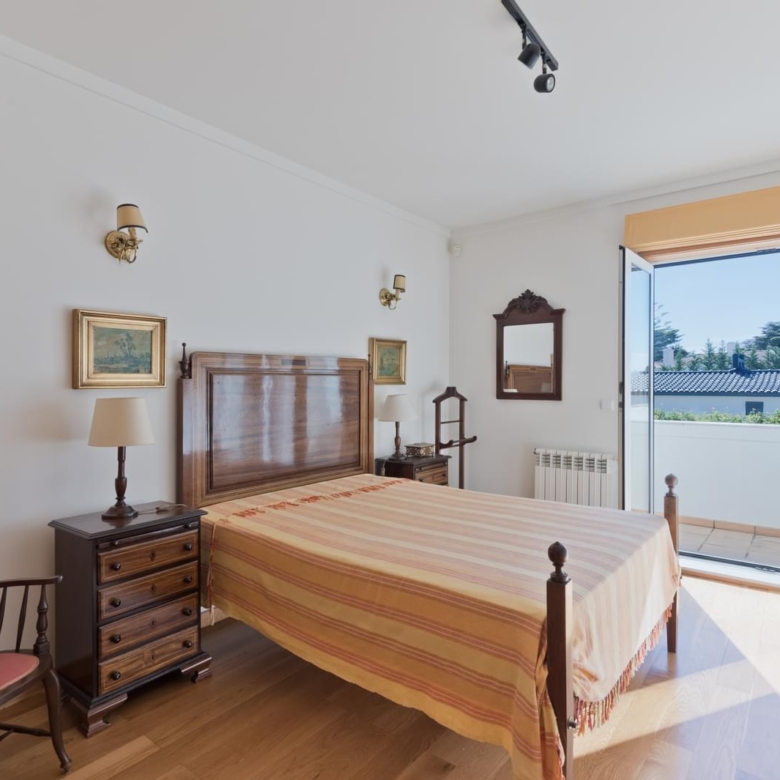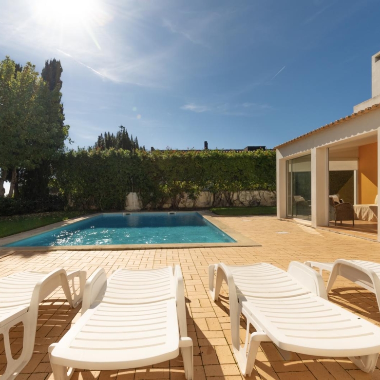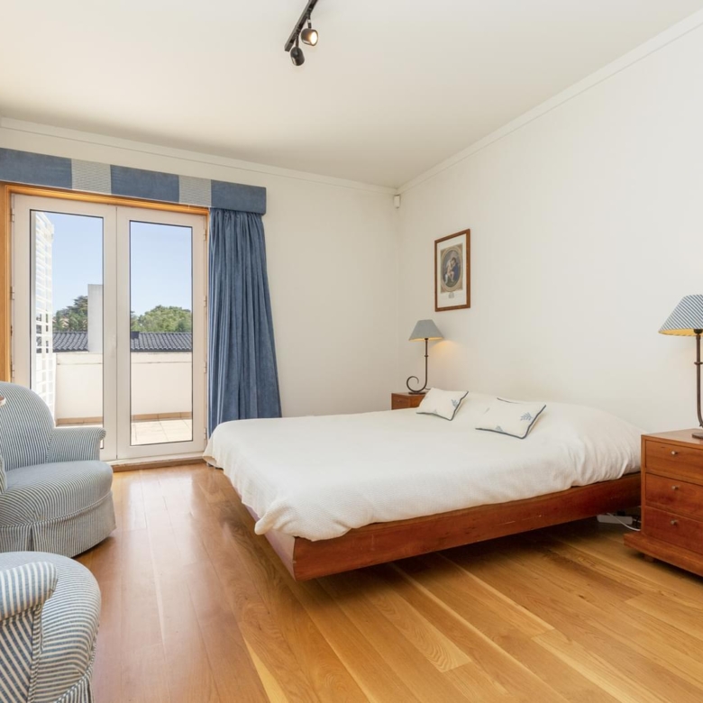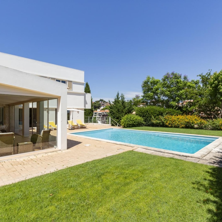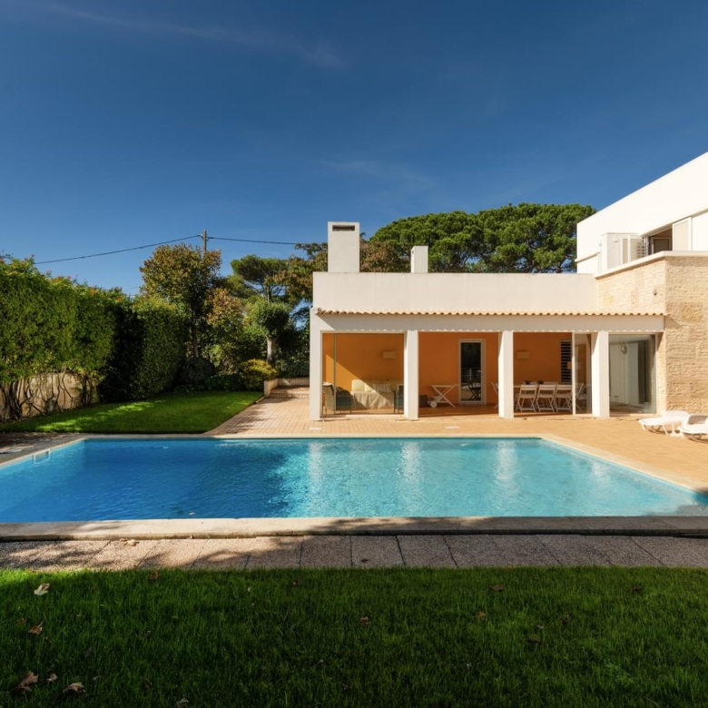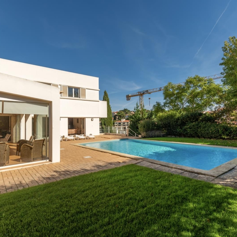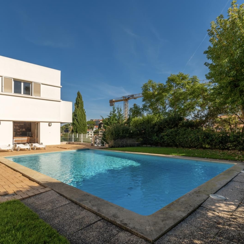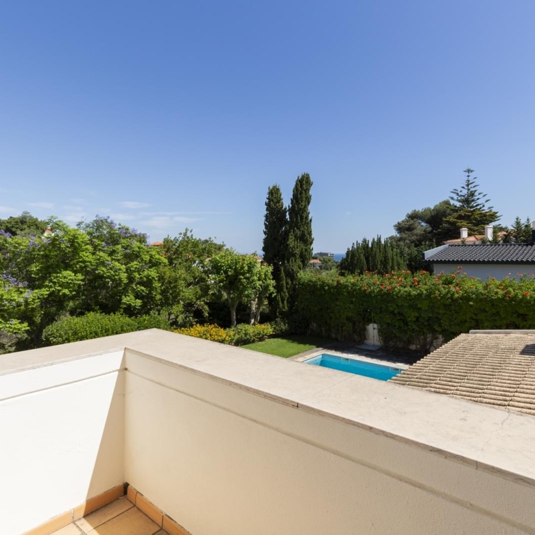 On the border between Cascais and Estoril, near the Palmela Park, a 10 minutes’ walk from Marginal and centre of Cascais, you will find this fantastic villa of timeless architecture, with a magnificent garden, swimming pool and sea view, implanted in a 1100 sqm lot and with an area of about 448 sqm. With a social area of generous dimensions and large dimensioned glazed windows, this house invites the conviviality of the whole family, with the connection it establishes with the exterior, with a swimming pool area and a consolidated garden with large trees and its several areas of grass that invite to rest. A house full of light, with the living rooms and rooms facing south, to enjoy its beautiful view. This villa is composed by three floors: Entrance floor (ground floor): - Large dimensioned living room and dining room with direct access to the garden and swimming pool, enclosed porch, with a dining area, which can be used all year round - a bedroom/office - full private bathroom - kitchen with a laundry area This floor has a rare architectural particularity: a fairly high ceiling. First floor: - Master suite with closet - Three bedrooms with wardrobes - Full private bathroom Floor -1: - Large dimensioned room, for parties, games, among others, with direct access to the garden - Full private bathroom - Storage area At the entrance level there is a covered porch with parking space for two cars. Cascais is a Portuguese village famous for its bay, local business and its cosmopolitanism. It is considered the most sophisticated destination of the Lisbon’s region, where small palaces and refined and elegant constructions prevail. With the sea as a scenario, Cascais can be proud of having 7 golf courses, a casino, a marina and countless leisure areas. It is 30 minutes away from Lisbon and its international airport. Porta da Frente Christie’s is a real estate agency that has been operating in the market for more than two decades. Its focus lays on the highest quality houses and developments, not only in the selling market, but also in the renting market. The company was elected by the prestigious brand Christie’s – one of the most reputable auctioneers, Art institutions and Real Estate of the world – to be represented in Portugal, in the areas of Lisbon, Cascais, Oeiras, Sintra and Alentejo. The main purpose of Porta da Frente Christie’s is to offer a top-notch service to our customers. Property ID: PDF-PF29140 Price: €3,950,000 Property Size: 320.0 m2 Land Area: 1099.5 m2 Bedrooms: 5 Bathrooms: 4