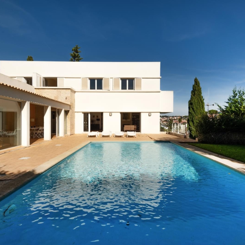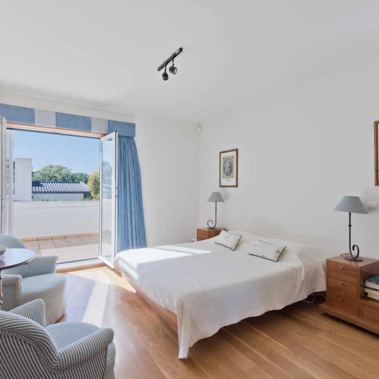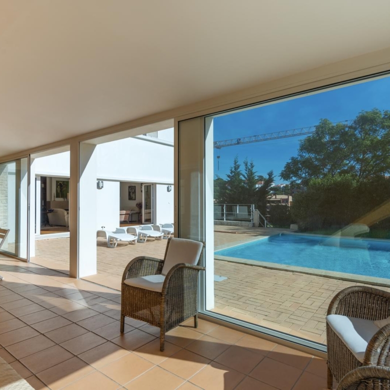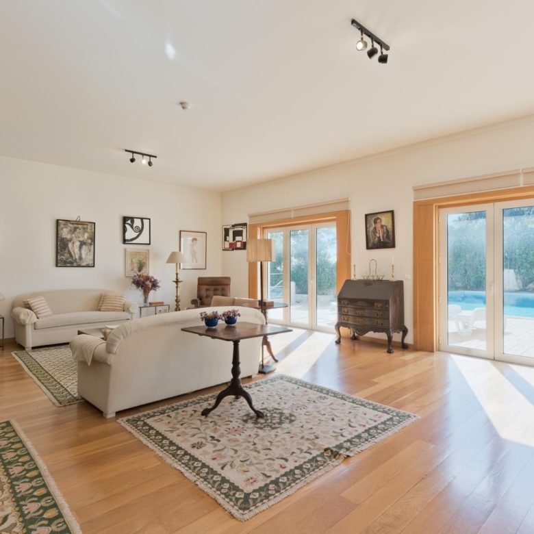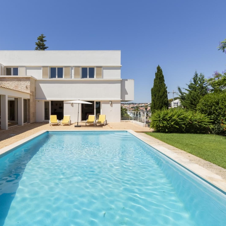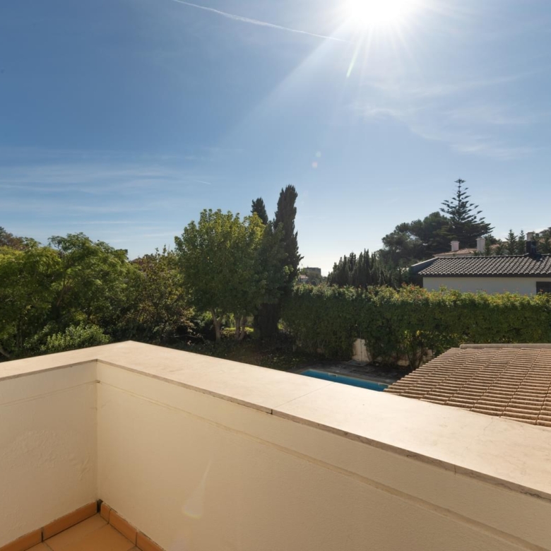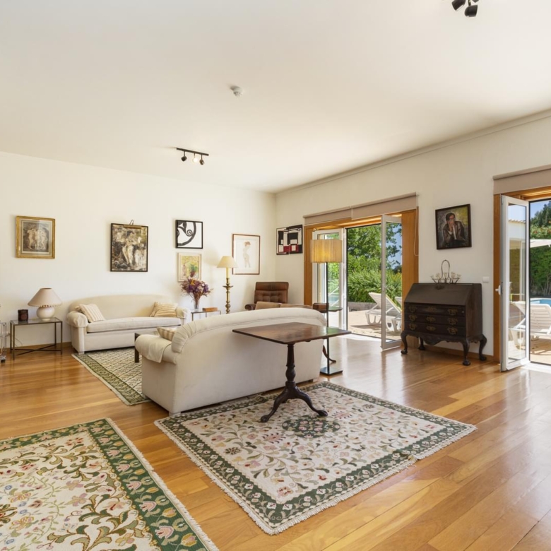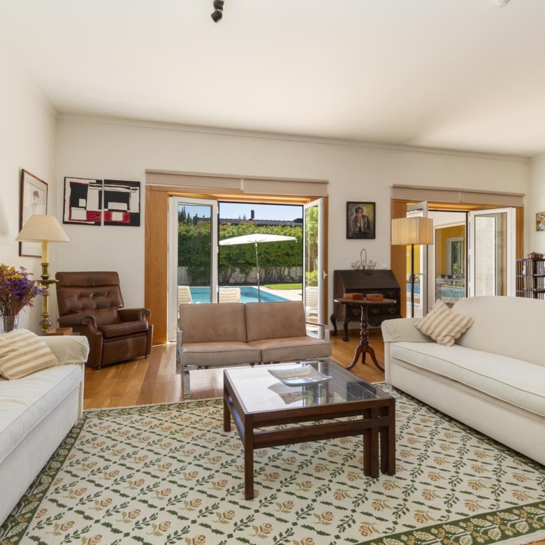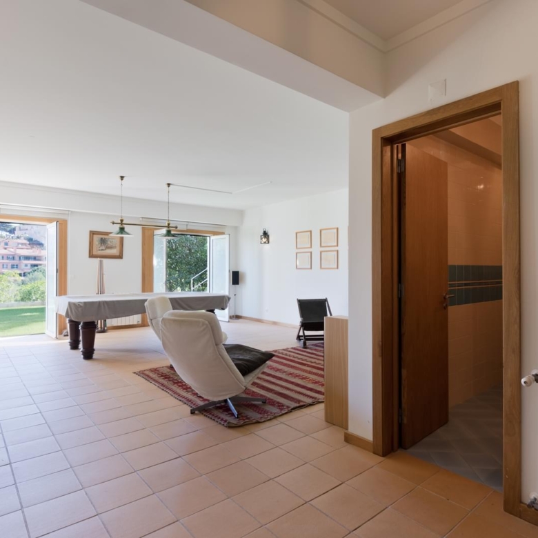 On the border between Cascais and Estoril, near the Palmela Park, a 10 minutes’ walk from Marginal and centre of Cascais, you will find this fantastic villa of timeless architecture, with a magnificent garden, swimming pool and sea view, implanted in a 1100 sqm lot and with an area of about 448 sqm. With a social area of generous dimensions and large dimensioned glazed windows, this house invites the conviviality of the whole family, with the connection it establishes with the exterior, with a swimming pool area and a consolidated garden with large trees and its several areas of grass that invite to rest. A house full of light, with the living rooms and rooms facing south, to enjoy its beautiful view. This villa is composed by three floors: Entrance floor (ground floor): - Large dimensioned living room and dining room with direct access to the garden and swimming pool, enclosed porch, with a dining area, which can be used all year round - a bedroom/office - full private bathroom - kitchen with a laundry area This floor has a rare architectural particularity: a fairly high ceiling. First floor: - Master suite with closet - Three bedrooms with wardrobes - Full private bathroom Floor -1: - Large dimensioned room, for parties, games, among others, with direct access to the garden - Full private bathroom - Storage area At the entrance level there is a covered porch with parking space for two cars. Cascais is a Portuguese village famous for its bay, local business and its cosmopolitanism. It is considered the most sophisticated destination of the Lisbon’s region, where small palaces and refined and elegant constructions prevail. With the sea as a scenario, Cascais can be proud of having 7 golf courses, a casino, a marina and countless leisure areas. It is 30 minutes away from Lisbon and its international airport. Porta da Frente Christie’s is a real estate agency that has been operating in the market for more than two decades. Its focus lays on the highest quality houses and developments, not only in the selling market, but also in the renting market. The company was elected by the prestigious brand Christie’s – one of the most reputable auctioneers, Art institutions and Real Estate of the world – to be represented in Portugal, in the areas of Lisbon, Cascais, Oeiras, Sintra and Alentejo. The main purpose of Porta da Frente Christie’s is to offer a top-notch service to our customers. Property ID: PDF-PF29140 Price: €3,950,000 Property Size: 320.0 m2 Land Area: 1099.5 m2 Bedrooms: 5 Bathrooms: 4