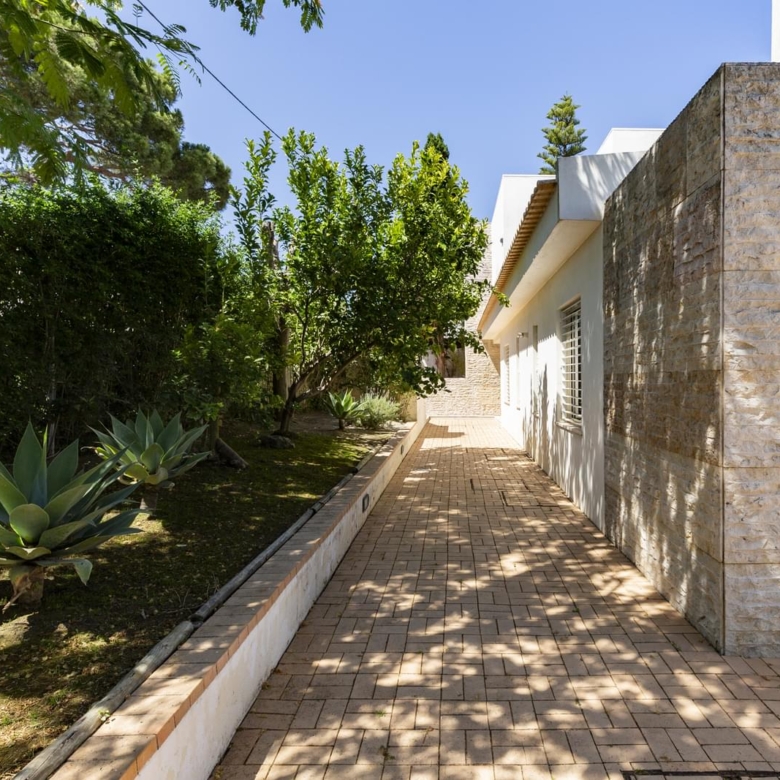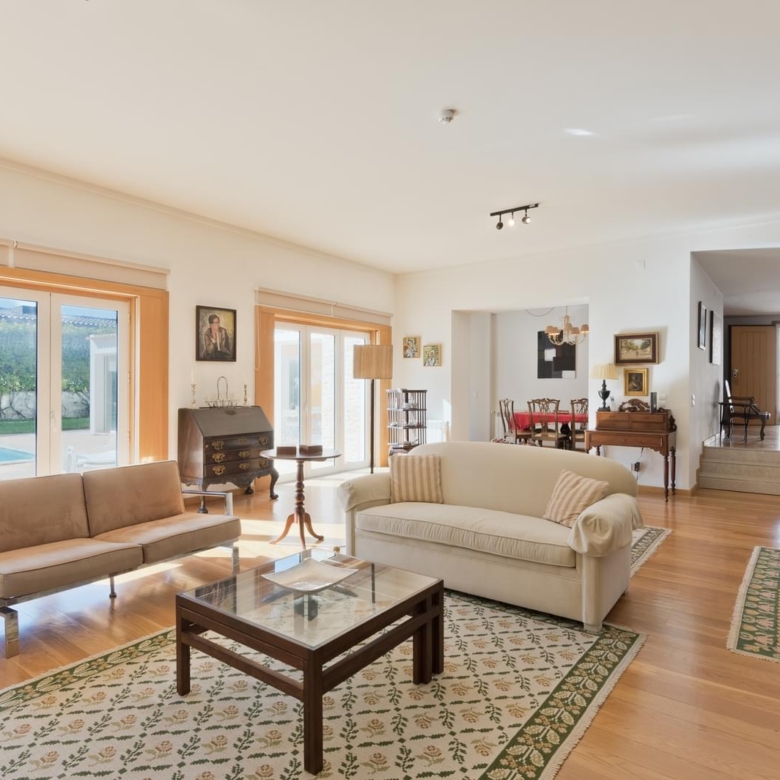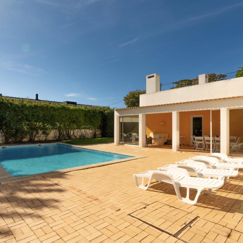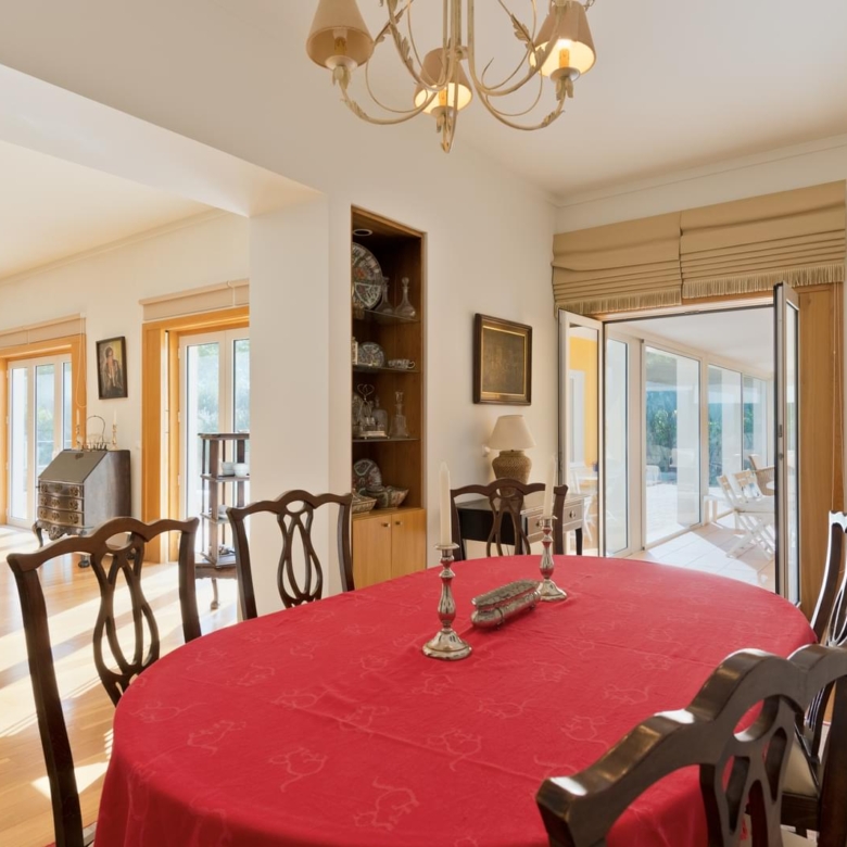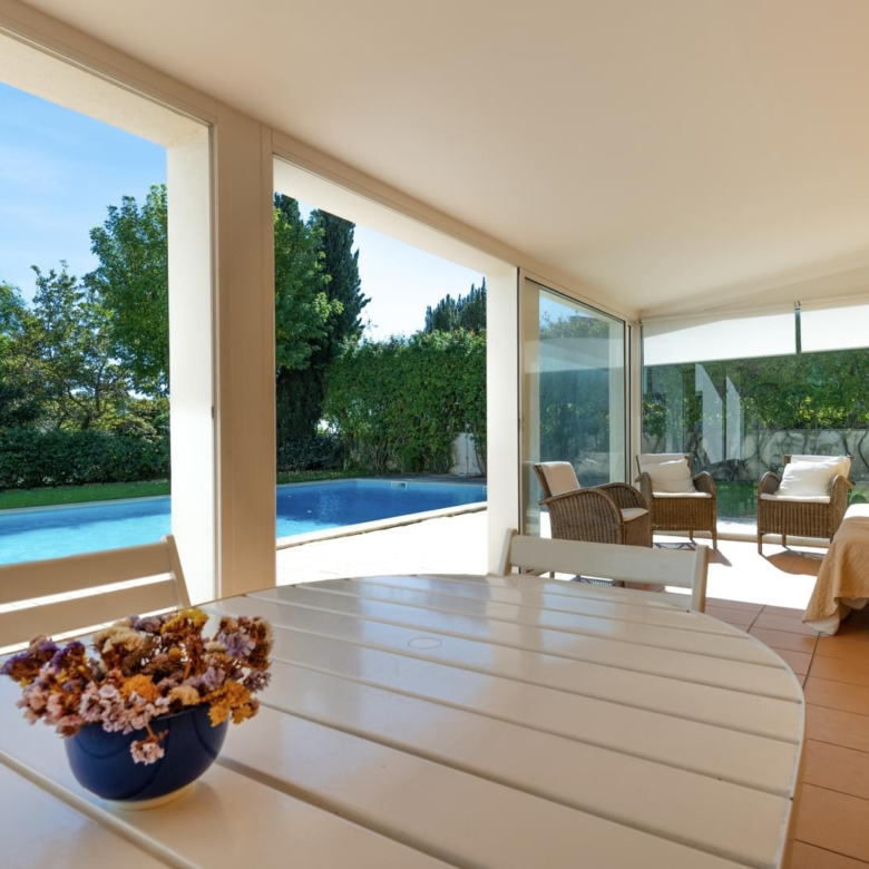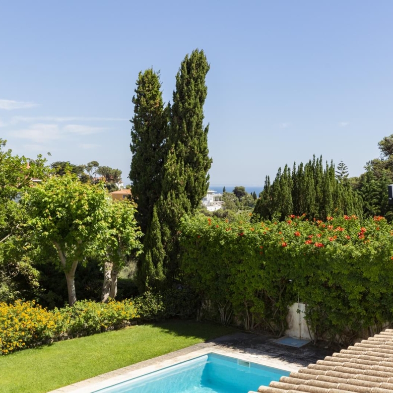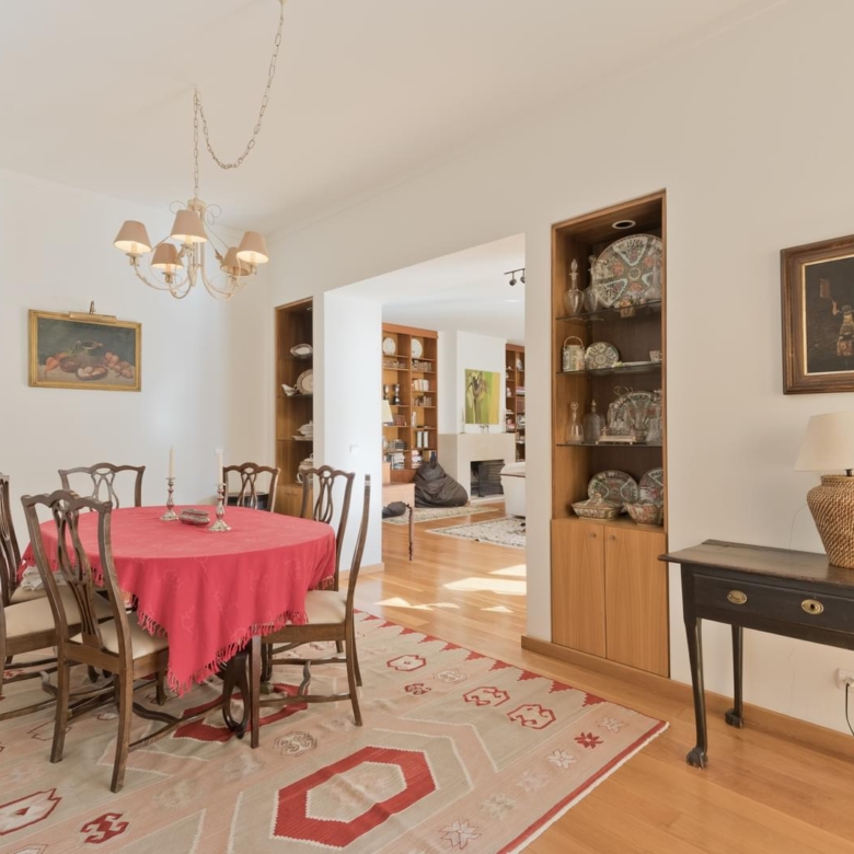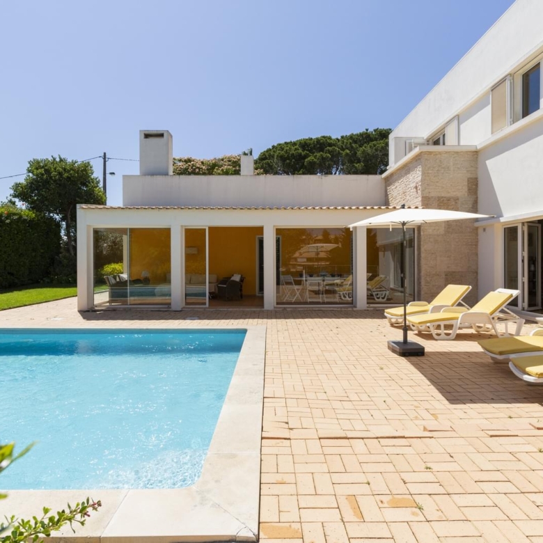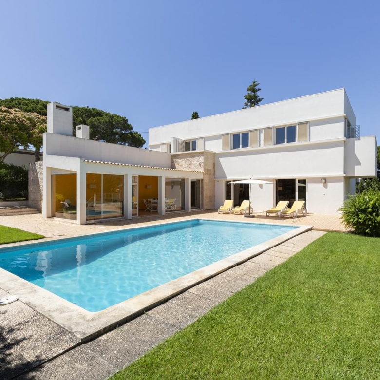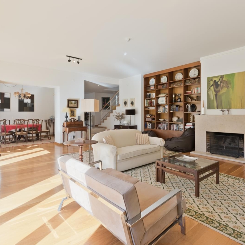 On the border between Cascais and Estoril, near the Palmela Park, a 10 minutes’ walk from Marginal and centre of Cascais, you will find this fantastic villa of timeless architecture, with a magnificent garden, swimming pool and sea view, implanted in a 1100 sqm lot and with an area of about 448 sqm. With a social area of generous dimensions and large dimensioned glazed windows, this house invites the conviviality of the whole family, with the connection it establishes with the exterior, with a swimming pool area and a consolidated garden with large trees and its several areas of grass that invite to rest. A house full of light, with the living rooms and rooms facing south, to enjoy its beautiful view. This villa is composed by three floors: Entrance floor (ground floor): - Large dimensioned living room and dining room with direct access to the garden and swimming pool, enclosed porch, with a dining area, which can be used all year round - a bedroom/office - full private bathroom - kitchen with a laundry area This floor has a rare architectural particularity: a fairly high ceiling. First floor: - Master suite with closet - Three bedrooms with wardrobes - Full private bathroom Floor -1: - Large dimensioned room, for parties, games, among others, with direct access to the garden - Full private bathroom - Storage area At the entrance level there is a covered porch with parking space for two cars. Cascais is a Portuguese village famous for its bay, local business and its cosmopolitanism. It is considered the most sophisticated destination of the Lisbon’s region, where small palaces and refined and elegant constructions prevail. With the sea as a scenario, Cascais can be proud of having 7 golf courses, a casino, a marina and countless leisure areas. It is 30 minutes away from Lisbon and its international airport. Porta da Frente Christie’s is a real estate agency that has been operating in the market for more than two decades. Its focus lays on the highest quality houses and developments, not only in the selling market, but also in the renting market. The company was elected by the prestigious brand Christie’s – one of the most reputable auctioneers, Art institutions and Real Estate of the world – to be represented in Portugal, in the areas of Lisbon, Cascais, Oeiras, Sintra and Alentejo. The main purpose of Porta da Frente Christie’s is to offer a top-notch service to our customers. Property ID: PDF-PF29140 Price: €3,950,000 Property Size: 320.0 m2 Land Area: 1099.5 m2 Bedrooms: 5 Bathrooms: 4