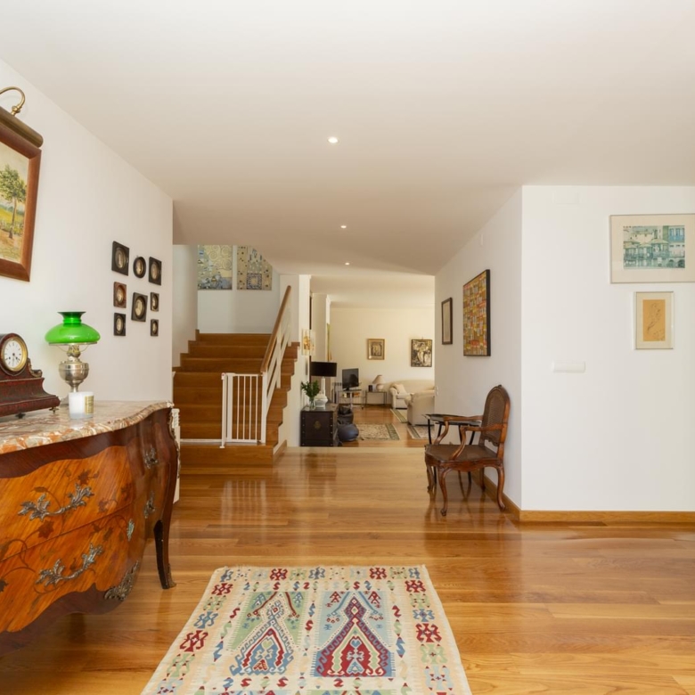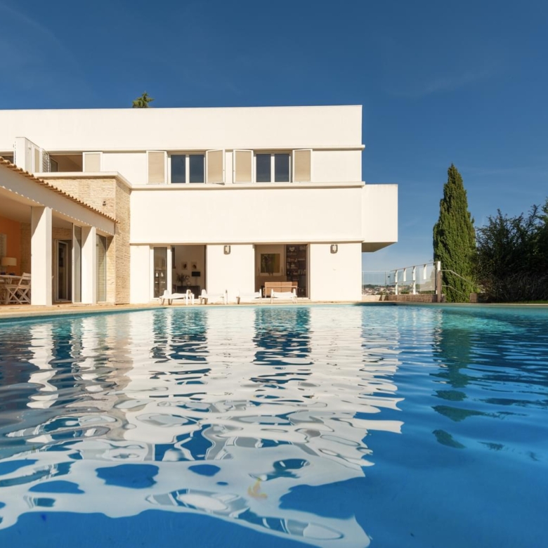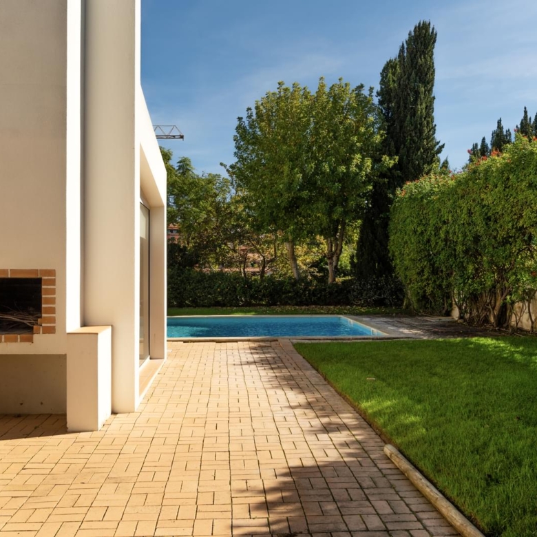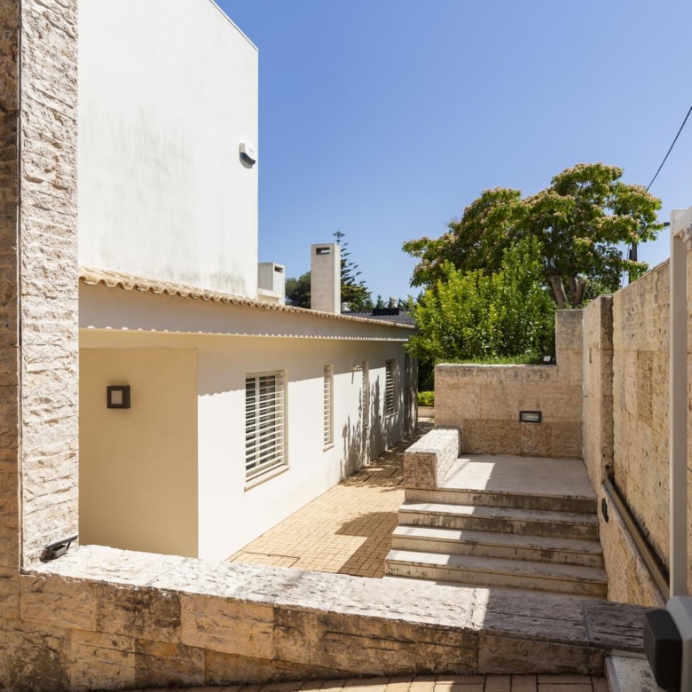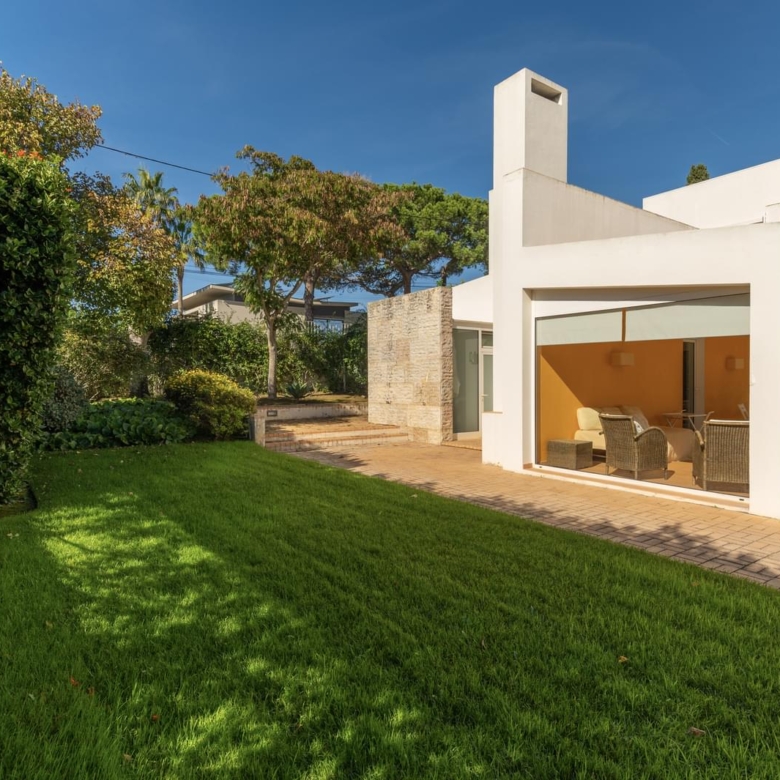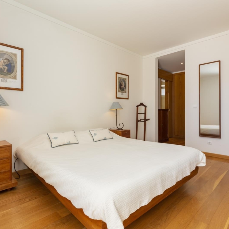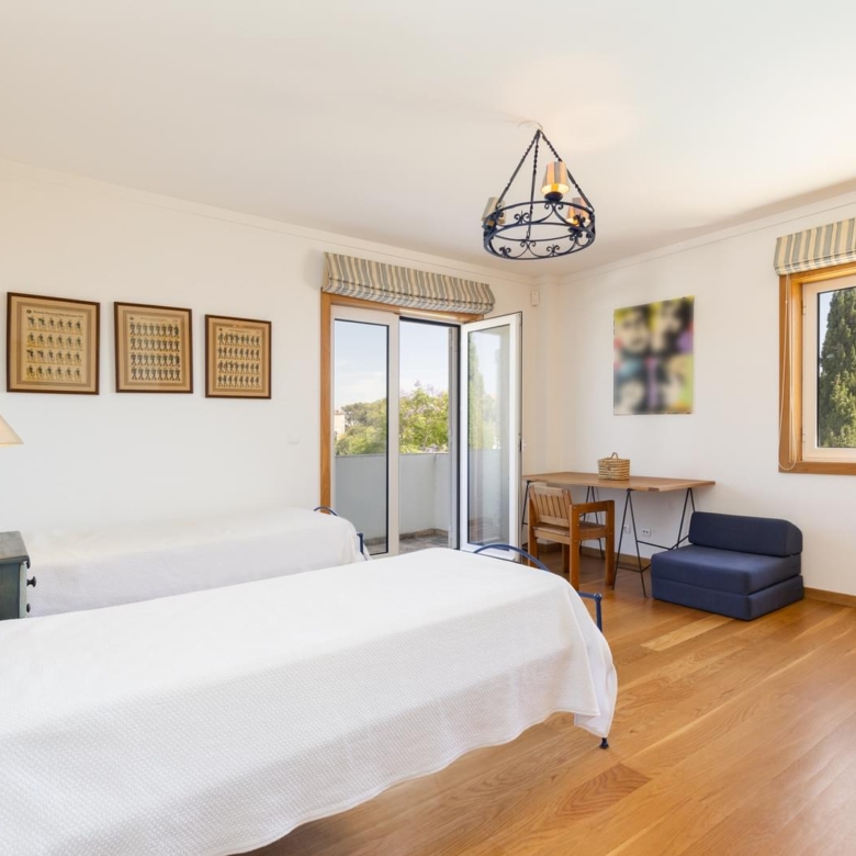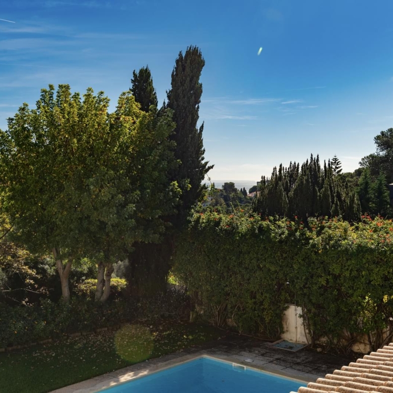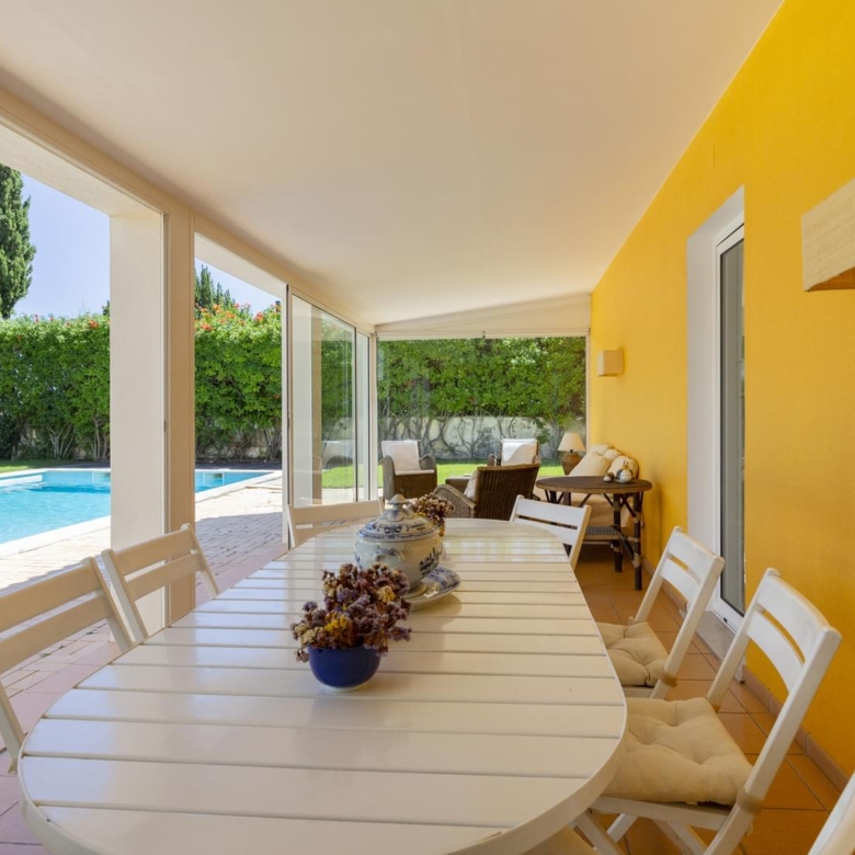 On the border between Cascais and Estoril, near the Palmela Park, a 10 minutes’ walk from Marginal and centre of Cascais, you will find this fantastic villa of timeless architecture, with a magnificent garden, swimming pool and sea view, implanted in a 1100 sqm lot and with an area of about 448 sqm. With a social area of generous dimensions and large dimensioned glazed windows, this house invites the conviviality of the whole family, with the connection it establishes with the exterior, with a swimming pool area and a consolidated garden with large trees and its several areas of grass that invite to rest. A house full of light, with the living rooms and rooms facing south, to enjoy its beautiful view. This villa is composed by three floors: Entrance floor (ground floor): - Large dimensioned living room and dining room with direct access to the garden and swimming pool, enclosed porch, with a dining area, which can be used all year round - a bedroom/office - full private bathroom - kitchen with a laundry area This floor has a rare architectural particularity: a fairly high ceiling. First floor: - Master suite with closet - Three bedrooms with wardrobes - Full private bathroom Floor -1: - Large dimensioned room, for parties, games, among others, with direct access to the garden - Full private bathroom - Storage area At the entrance level there is a covered porch with parking space for two cars. Cascais is a Portuguese village famous for its bay, local business and its cosmopolitanism. It is considered the most sophisticated destination of the Lisbon’s region, where small palaces and refined and elegant constructions prevail. With the sea as a scenario, Cascais can be proud of having 7 golf courses, a casino, a marina and countless leisure areas. It is 30 minutes away from Lisbon and its international airport. Porta da Frente Christie’s is a real estate agency that has been operating in the market for more than two decades. Its focus lays on the highest quality houses and developments, not only in the selling market, but also in the renting market. The company was elected by the prestigious brand Christie’s – one of the most reputable auctioneers, Art institutions and Real Estate of the world – to be represented in Portugal, in the areas of Lisbon, Cascais, Oeiras, Sintra and Alentejo. The main purpose of Porta da Frente Christie’s is to offer a top-notch service to our customers. Property ID: PDF-PF29140 Price: €3,950,000 Property Size: 320.0 m2 Land Area: 1099.5 m2 Bedrooms: 5 Bathrooms: 4