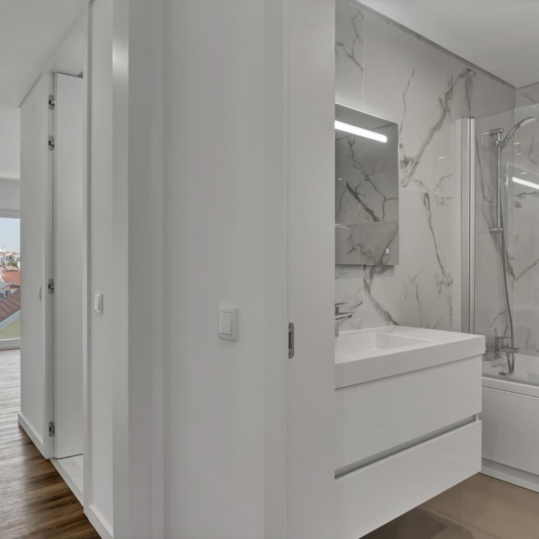 New 2 bedroom apartment, inserted in a new condominium to debut, composed by 22 apartments, with typologies that differ from 2 bedroom apartments and 3 bedroom apartments, with areas comprehended between 68 sqm and 132 sqm. The apartment comprises good balconies, a storage area, 2 private parking spaces, air conditioning, electrical blinds with thermal and acoustic insulation, tilt and turn double glazed windows, video intercom, solar panels and equipped kitchen, being possible to choose a traditional kitchen or the Open Space concept, depending on the evolution of the work. Located in a quiet residential area, close to all sorts of local business and services. The conclusion of the development is predicted to the end of 2023, with licenses for use foreseen for the beginning of 2024. Come and discover this condominium located in a privileged area, close to all sorts of local business, services, school and beach. Porta da Frente Christie’s is a real estate agency that has been operating in the market for more than two decades. Its focus lays on the highest quality houses and developments, not only in the selling market, but also in the renting market. The company was elected by the prestigious brand Christie’s – one of the most reputable auctioneers, Art institutions and Real Estate of the world – to be represented in Portugal, in the areas of Lisbon, Cascais, Oeiras, Sintra and Alentejo. The main purpose of Porta da Frente Christie’s is to offer a top-notch service to our customers. Property ID: PDF-PF29040 Price: €495,000 Property Size: 77.0 m2 Bedrooms: 2 Bathrooms: 2 Year Built: 2023