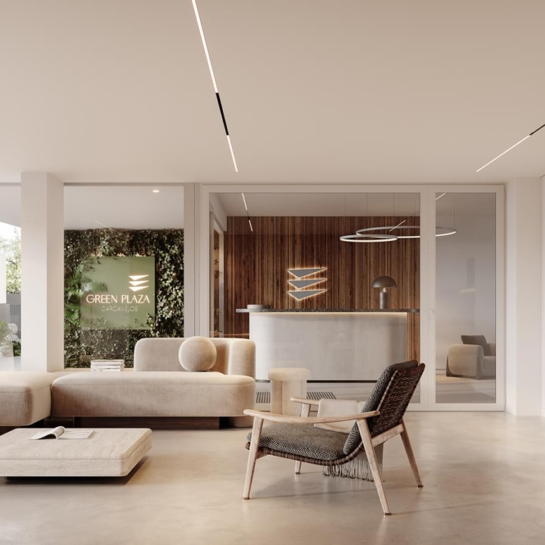 The new Green Plaza Carcavelos project has transformed and energized a very eclectic neighborhood, offering a differentiating residential project. With areas between 69 sqm and 204 sqm and typologies between T1 to T4, the 39 units of the private condominium include balconies and terraces, to experience the outdoors to the fullest. The condominium facilities also include swimming pools, gourmet space, multipurpose room, gym and parking. The project’s architecture results in straight lines and a concern for simplicity and minimalism, leaving the spotlight for common and private spaces. At Green Plaza, every detail has been rigorously thought out to provide comfort, exclusivity, quality and beauty. The Carcavelos region is synonymous with beach, sun, heat and sea. Located halfway between Lisbon and Cascais, Carcavelos is the largest beach on the Cascais line and the first ocean beach after the mouth of the Tagus River. Its waves and more than one kilometer long sand are very popular with lovers of water sports or beach sports, as well as a lifestyle by the sea. Just 30 minutes from the center of the Portuguese capital and the International airport, Cascais enjoys tranquility and resort-living throughout the year, without losing the vibrant energy of everyday life. Property ID: PDF-PF29003 Price: €785,000 Property Size: 103.3 m2 Bedrooms: 2 Bathrooms: 3 Year Built: 2025 Property Type: Apartment Property Status: For Sale