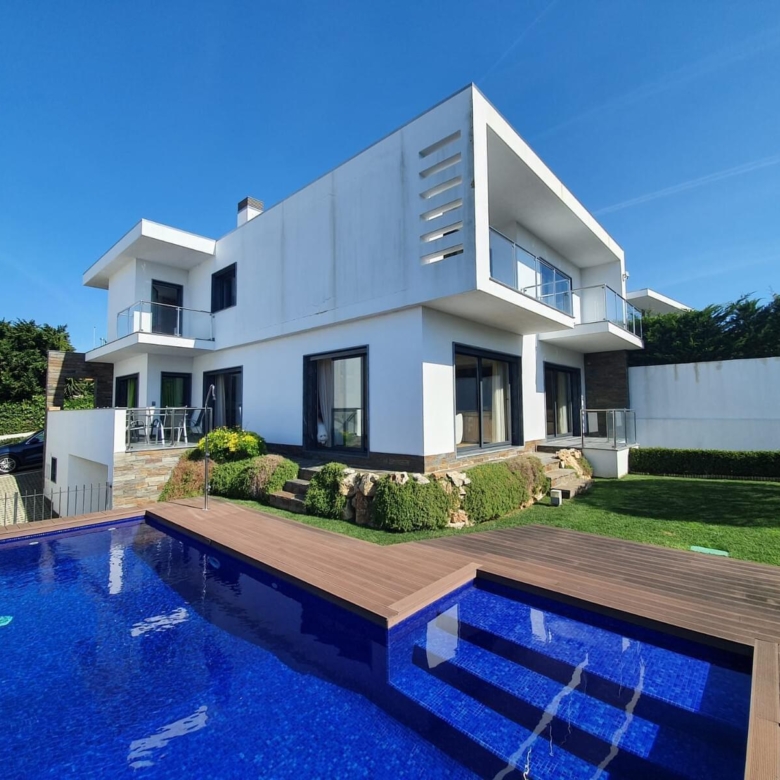 4 bedroom detached Villa, for sale, in a private condominium in Murtal, Parede The villa is involved in a beautiful garden with a swimming pool where you can enjoy total comfort and privacy. Inserted in a 512m2 plot and with around 383m2 of building area, this villa is in excellent condition with excellent sun exposure and very good areas. Located in Alto da Parede, in a very quiet and residential square, but very close to green spaces, shops, services and 7 minutes from Sao Joao do Estoril beach. The villa is distributed over 3 floors: Floor 0 - Spacious hall - Guest bathroom - Fully equipped kitchen with access to the dining room - Dining room - Living room with direct access to a great terrace, the garden and the pool. 1st floor - 3 spacious suites with wardrobes. All suites have balconies with panoramic views of the sea. Floor -1 with natural light and access to the garden - Large open-plan living space that has now been converted into a fantastic bedroom with an exit to the garden. - A bathroom - Laundry area - Technical area - Storage area - Garage Parede is part of the municipality of Cascais and is a privileged area famous for the famous beaches of Sao Joao do Estoril, Avencas, and Carcavelos beach with an extensive stretch of sand and the practice of numerous sports such as surfing. This location is characterised by its proximity to Lisbon and its easy access (motorway and public transport). It is also an important centre for education, as two campuses of the Universidade Nova de Lisboa are located here: the NOVA School of Business and Economics and the NOVA Medical School. It is also 10 minutes from St Julian’s School, Santo Antonio International School (SAIS) and Colegio Marista de Carcavelos. 30 minutes from Lisbon and Humberto Delgado Airport. Porta da Frente Christie’s is a real estate brokerage company that has been working in the market for over two decades, focusing on the best properties and developments, both for sale and for rent. The company was selected by the prestigious Christie’s International Real Estate brand to represent Portugal in the Lisbon, Cascais, Oeiras and Alentejo areas. The main mission of Christie’s Front Door is to provide a service of excellence to all our clients. Property ID: PDF-PF33182 Price: €2,850,000 Property Size: 0.0 m2 Land Area: 383.95 m2 Bedrooms: 4 Bathrooms: 5 Year Built: 2013 Property Type: House Property Status: For Sale