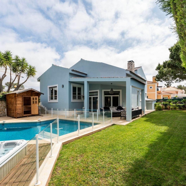 Fantastic villa in Birre, right next to King’s College. This 4 bedroom villa, with garden, swimming pool, jacuzzi and sauna, was recently refurbished with refinement and the highest quality materials. This property is inserted in a 789 sqm lot, where it has a 300 sqm private gross area. It is equipped with central heating, air conditioning and radiant floor heating in the bathrooms and kitchen. The villa is distributed as follows: On the ground floor: - Entrance hall; - Fully equipped kitchen with SMEG household appliances; - dining room; - living room with fireplace; - Master suite with full private bathroom and walk-in closet; - Bedroom and bathroom. On the first floor: - Bedroom en mezzanine; - Office; - Suite; - Support bedroom and bathroom. On the Garage Floor: - 2 parking spaces; - Service room with bathroom and service door with access to the laundry and exterior (has an independent door) Exterior: - barbecue area; - Sauna; - Jacuzzi; - swimming pool; - Atelier/office; - Large dimensioned garden and living area. Fenced property, with automatic remote opening gates, and with alarm system. This villa enjoys an exceptional location, due to the fact that it is in a traffic-free street, with quick and easy accesses to the A5 motorway, about 2 km away from the Guincho Beach, 1.5 km away from Quinta da Marinha (golf and horse riding) and 3.5 km away from the centre of Cascais. Cascais is a Portuguese village famous for its bay, local business and its cosmopolitanism. It is considered the most sophisticated destination of the Lisbon’s region, where small palaces and refined and elegant constructions prevail. With the sea as a scenario, Cascais can be proud of having 7 golf courses, a casino, a marina and countless leisure areas. It is 30 minutes away from Lisbon and its international airport. Porta da Frente Christie’s is a real estate agency that has been operating in the market for more than two decades. Its focus lays on the highest quality houses and developments, not only in the selling market, but also in the renting market. The company was elected by the prestigious brand Christie’s – one of the most reputable auctioneers, Art institutions and Real Estate of the world – to be represented in Portugal, in the areas of Lisbon, Cascais, Oeiras, Sintra and Alentejo. The main purpose of Porta da Frente Christie’s is to offer a top-notch service to our customers. Property ID: PDF-PF33617 Price: €2,350,000 Property Size: 300.0 m2 Land Area: 789.0 m2 Bedrooms: 4 Bathrooms: 5 Property Type: House Property Status: For Sale