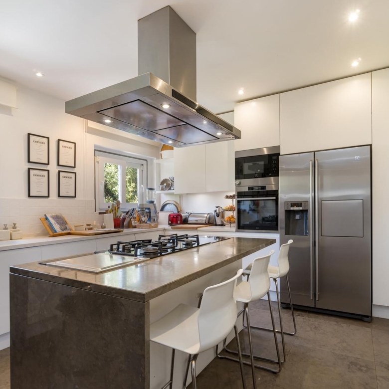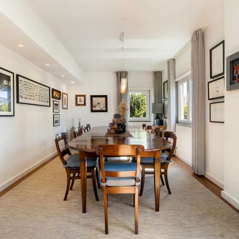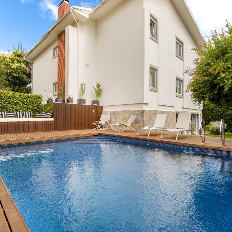 Discover this renovated villa in the prestigious Bairro do Rosario in Cascais. Built in 1967, it combines historic charm with contemporary design, offering 300 m2 of private living space and 141 m2 of additional area, on a 677 m2 plot. A haven of elegance and comfort, perfect for all seasons. Property Features Ground Floor: Hall with curved lines and refined woodwork, storage, library, and guest toilet. Spacious living room with two areas and heat recuperator, versatile and generous dining room, modern fully equipped kitchen. First Floor: Distribution hall, bright office, mezzanine. Two suites with large closets and private bathrooms, two additional bedrooms sharing a bathroom. All bedrooms have access to a common west-facing terrace. Basement: Spacious games room, home theater, living room, extra bedroom, full bathroom, and equipped laundry area. Wine cellar with natural temperature, ideal for wine storage. Outdoor Areas: Heated and Covered Pool: Year-round use, rigid cover, protection, and thermal insulation. Garden: Lighting and automated irrigation system. Outdoor Social Area: Connected to the garden through an expandable awning, ideal for large gatherings. Parking: Space for up to 4 cars. Comfort and Security: Central heating with natural gas Acoustic and thermal insulation Plumbing and water system renovated in 2019 Surveillance cameras and alarm system Location: In one of the most sought-after areas of Cascais, a tranquil, family-friendly, and secure neighborhood. Proximity to the sea, services, renowned schools, motorway access, city center, and exclusive golf courses. Sunlit villa with excellent air circulation, providing airy and pleasant spaces. Come and discover this unique property, perfect for all seasons. For more information, contact us. Porta da Frente Christie’s is a real estate brokerage company that has been operating in the market for almost three decades, focusing on the best properties and developments, both for sale and for rent. The company was selected by the prestigious brand Christie’s International Real Estate to represent Portugal in the areas of Lisbon, Cascais, Oeiras, and Alentejo. Porta da Frente Christie’s main mission is to provide an excellent service to all our clients. Property ID: PDF-PF33904 Price: €2,800,000 Property Size: 300.0 m2 Land Area: 677.0 m2 Bedrooms: 5 Bathrooms: 5 Property Type: House Property Status: For Sale