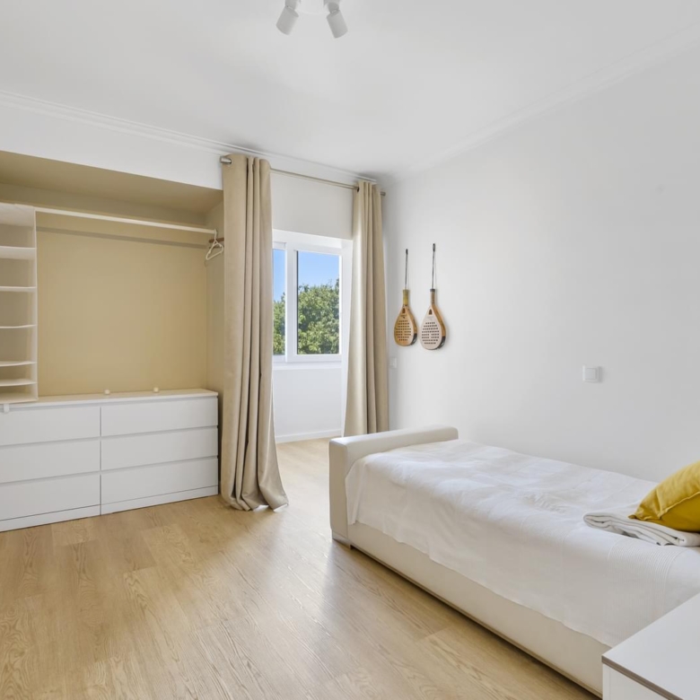 3 bedroom apartment with furniture, for sale in Cascais, in Quinta da Bicuda and located right next to Quinta da Marinha. Apartment totally refurbished in 2022 with the finest taste and style, with a 122 sqm private gross area with an East/West sun exposure with plenty of natural light and unobstructed views. For sale furnished and equipped. The areas are distributed as follows: - Hall: 8.4 sqm - Large dimensioned living room in open space with a fully equipped kitchen: 56 sqm - Suite: 19 sqm with wardrobes and supported by a full private bathroom with shower tray - 1 bedroom: 15 sqm with wardrobes and direct access to a balcony - 1 bedroom: 13 sqm with wardrobes and direct access to a balcony - Full private bathroom to support the two bedrooms with shower tray, which also works as a social bathroom Parking space for 1 car in the garage and a storage area. All rooms have double glazed windows frames and floating floor. The finishes are of the highest quality, modern and current. The apartment is placed on the third floor of a building without elevator. Quinta da Bicuda is situated in a quiet area of Cascais, next to Quinta da Marinha and relatively close to the centre. It is a predominantly residential area, known for offering a quiet environment and proximity to both beaches and urban amenities where you can find green spaces, parks or leisure areas where you can enjoy outdoor activities. Since Cascais is located by the sea, beaches and activities related to the sea are also an option. Easy access to shops, the Guincho beaches, motorway and the centre of Cascais. Cascais is a Portuguese village famous for its bay, local business and its cosmopolitanism. It is considered the most sophisticated destination of the Lisbon’s region, where small palaces and refined and elegant constructions prevail. With the sea as a scenario, Cascais can be proud of having 7 golf courses, a casino, a marina and countless leisure areas. It is 30 minutes away from Lisbon and its international airport. Porta da Frente Christie’s is a real estate agency that has been operating in the market for more than two decades. Its focus lays on the highest quality houses and developments, not only in the selling market, but also in the renting market. The company was elected by the prestigious brand Christie’s – one of the most reputable auctioneers, Art institutions and Real Estate of the world – to be represented in Portugal, in the areas of Lisbon, Cascais, Oeiras, Sintra and Alentejo. The main purpose of Porta da Frente Christie’s is to offer a top-notch service to our customers. Property ID: PDF-PF33363 Price: €670,000 Property Size: 122.0 m2 Bedrooms: 3 Bathrooms: 2 Property Type: Apartment Property Status: For Sale