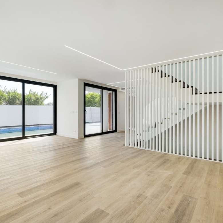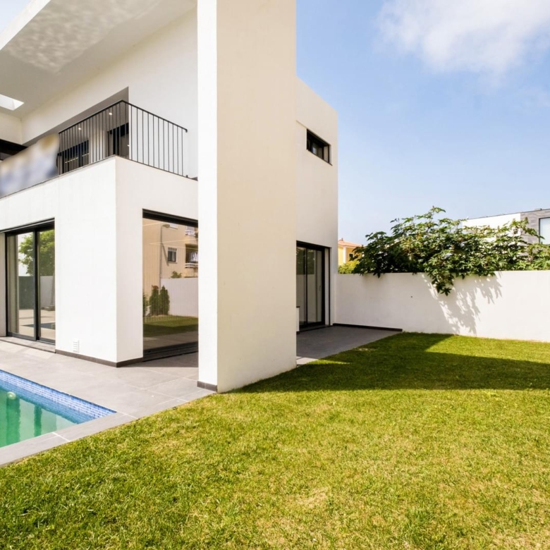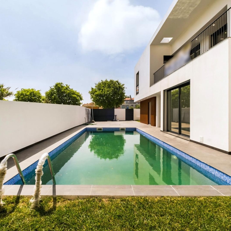New villa, with a private garden and swimming pool, of modern architecture, in Carcavelos. This fantastic villa is implanted in a 346 sqm lot and it is distributed as follows: Ground Floor: - Entry hall - Social bathroom - Large dimensioned living and dining room with access to the garden and the swimming pool’s area - Kitchen First Floor: - Suite with balcony - Two bedrooms with wardrobes - Bathroom to support the bedrooms Floor -1: - Multipurpose room (cinema and games, among others) - Laundry area - Full private bathroom - Bedroom with a winter garden The villa presents very good finishes, including double glazed windows, electrical blinds, air conditioning and central heating, thermo accumulator and a central vacuum unit. It also has parking space for 4 cars in the exterior. With easy accesses to the main motorways, Cascais-Lisboa and Sintra, and 25 km away from the International Airport of Lisbon, being the train station only 5 minutes away. Next to national and international schools, such as St. Julians, local business and beaches that promote surfing. Property ID: PDF-PF32811 Price: €1,200,000 Property Size: 165.0 m2 Land Area: 346.0 m2 Bedrooms: 3 Bathrooms: 4 Year Built: 2024 Property Type: House Property Status: For Sale