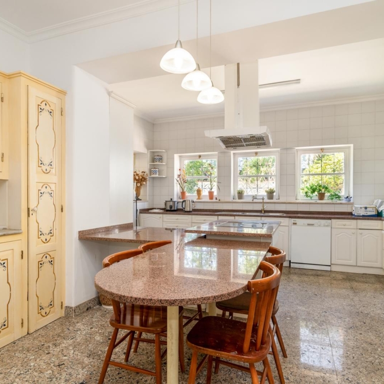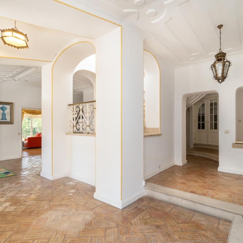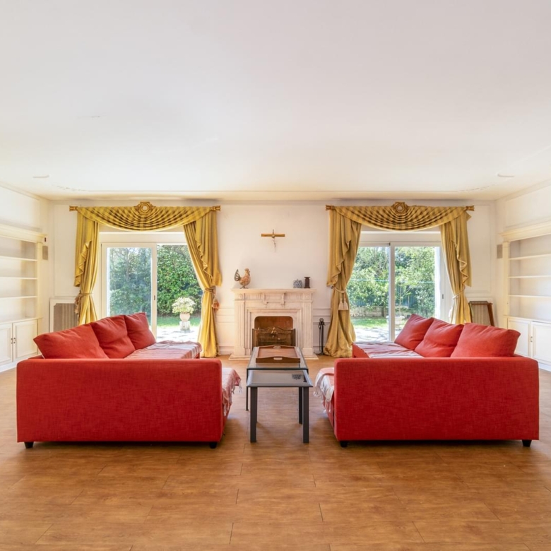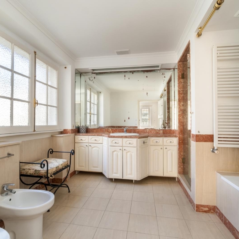 Magnificent 14-bedroom villa with two floors, garden, swimming pool and annex, strategically located in the centre of Estoril. With a plot of 1711m2 and a construction area of 834m2. It is 1000m from the Estoril Casino, 1300m from the beach, 20m from the bus stop and 50m from the petrol station. 200m from the A5 motorway, 600m from the Continente hypermarket, 200m from the Estoril tennis court and 850m from the Estoril Golf Club golf course. Divisions: Floor 0 Entrance hall with 31.62 m2 Living room with fireplace with 47.94 m2 Dining room (12 people) with 31.25 m2 Living room with 43.52 m2 Bedroom/office with 16.78 m2 2 W/C Cellar for 4,000 bottles with thermostat to maintain the temperature of the wines. Equipped kitchen of 33.22 m2 with a fireplace Solarium facing the west-facing side garden, 20.57 m2 Cupboard with 6.91 m2, Pantry of 4.71 m2 Storage room with 5.89 m2 Laundry room 6.,8m2 1st floor Lift to upper floor. Hall 11.90m2 1 Master suite 25,5m2 and living room with 8,8m2 and dressing room 8,3m2 W/C 10,3m2 Balcony 2,8m2 2. Master suite 20,3m2 W/C 6,8m2 Balcony 52,4m2 3. Bedroom 20,4m2 built-in wardrobe W/C 4,2m2 Balcony 52,4m2 4. Bedroom 23,6m2 W/C 4,9m2 Balcony 7,4m2 5. Bedroom 17,4m2 W/C 5,46m2 Balcony 19,2m2 Living room 22,4m2 6. Bedroom 17,4m2 W/C 5,46m2 Balcony 19,2m2 Annex Worker’s room 9,25m2 W/C 3m2 Kitchen 8,76m2 Studio 11,7m2 Entertainment room 47m2 W/C 2,5m2 45m2 swimming pool Bathroom activity area 136m2 Garage for 4 cars Equipment: Lift Alarm monitored by cameras Continuous flow water heating system, cooling unit for wine cellar Double-glazed windows Water tank with a capacity of 10,000 litres, water pressure pump 130m deep well with a capacity of 30,000 litres/h Independent gas tank in the basement with a capacity of 15m3 supplied by a gas lorry. Porta da Frente Christie’s is a real estate brokerage company that has been working in the market for over two decades, focusing on the best properties and developments, in this case being a reseller in this fantastic project. The company was selected by the prestigious Christie’s International Real Estate brand to represent Portugal in the Lisbon, Cascais, Oeiras and Alentejo areas. The main mission of Christie’s Porta da Frente is to provide a service of excellence to all our clients. Property ID: PDF-PF33164 Price: €4,450,000 Property Size: 0.0 m2 Land Area: 1711.0 m2 Bedrooms: 14 Bathrooms: 10 Property Type: House Property Status: For Sale