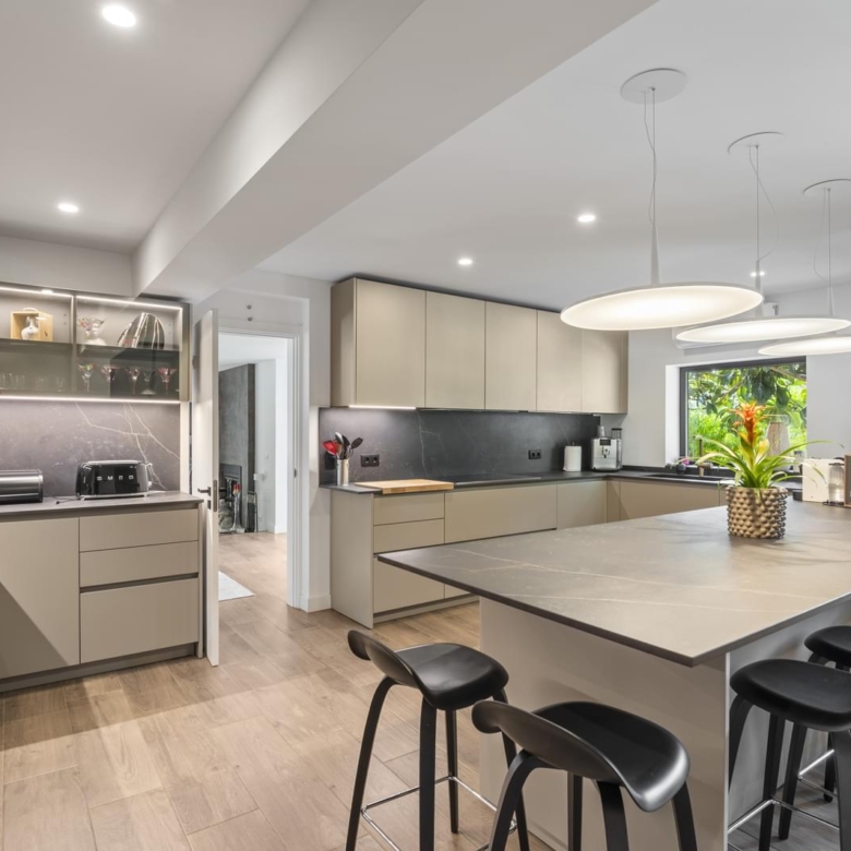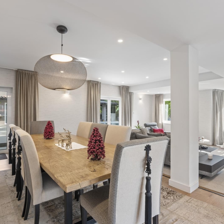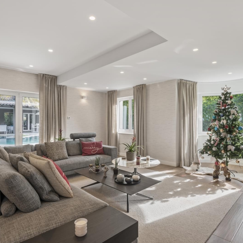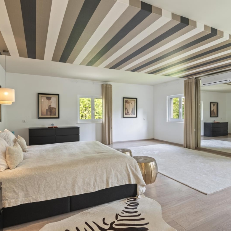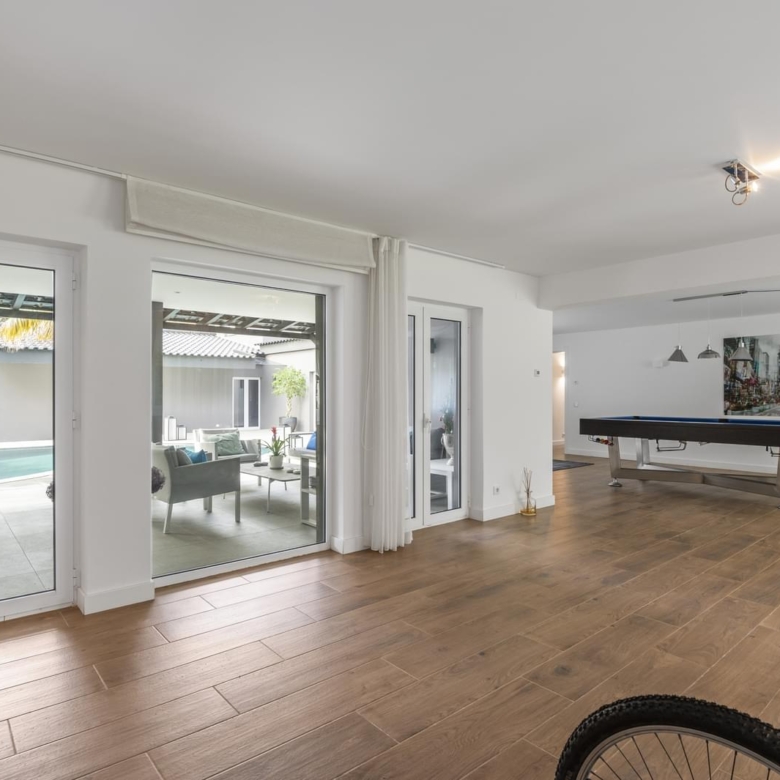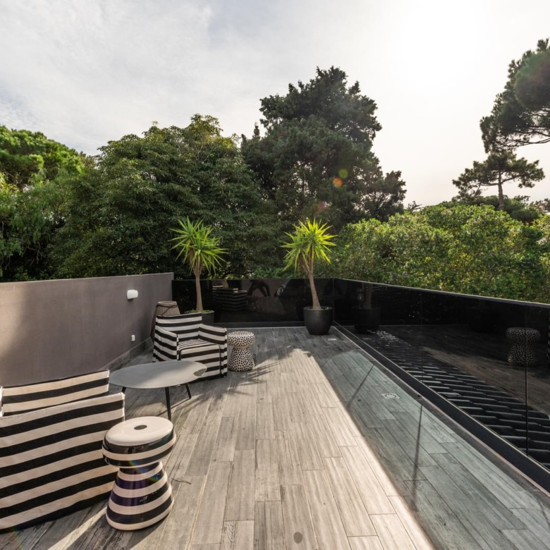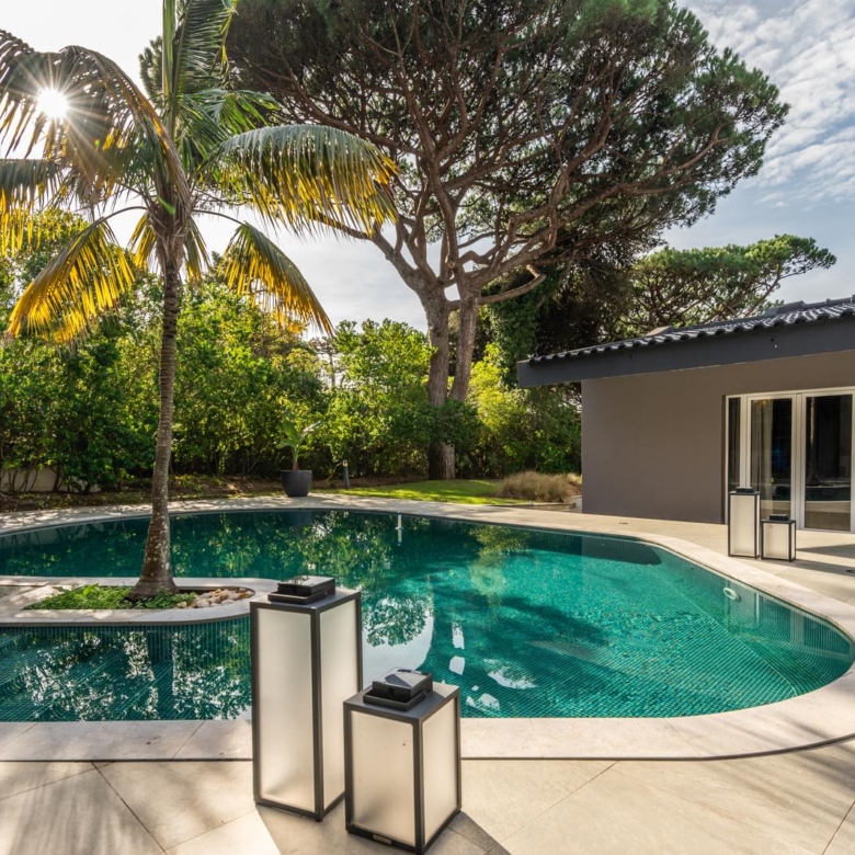 Villa in Quinta da Marinha Villa, located in Quinta da Marinha, in the south area, in a very quiet street and with plenty of privacy. Inserted in a 1507 sqm plot and with an around 560 sqm area of construction, the villa was remodelled a few years ago with excellent and modern finishes. In addition, the villa presents large dimensioned areas, ensuring ample and comfortable spaces. Sun exposure is also a prominent feature, providing natural lighting throughout the day. On the ground floor: - Hall - Social bathroom - Living room with fireplace and access to the garden - Dining room with connection to kitchen - Kitchen in Island with plenty of light, Smeg household appliances and a dining area. - Television room - Two bedrooms - A support bathroom - Suite with access to the garden - With a small unevenness we find an ample living room with access to a cosy porch and the swimming pool’s area - Laundry area with bathroom First floor - Master suite with a walk-in closet and a fantastic private terrace. - Office - Two bedrooms - A support bathroom - Bedroom or small room with access to the ground floor. Outside there is a very well maintained garden with several leisure areas, including a cosy and private porch and the swimming pool. Barbecue area, ideal for outdoor dining. This villa is quite spacious and comfortable, with the highest quality finishes and modern design. The bedrooms are large dimensioned and bright, providing plenty of privacy and comfort. The location is also privileged, in a quiet and residential area, but with easy accesses to services and local business. The villa is equipped with radiant floor heating and in some areas hot and cold air conditioning, solar panels and includes a garage for two cars. Located 10 minutes away from Cascais and 20 minutes away from Lisbon and the international airport, Cascais is a Portuguese village famous for its bay, local business and its cosmopolitanism. It is considered the most sophisticated destination of the Lisbon’s region, where small palaces and refined and elegant constructions prevail. With the sea as a scenario, Cascais can be proud of having 7 golf courses, a casino, a marina and countless leisure areas. It is 30 minutes away from Lisbon and its international airport. Porta da Frente Christie’s is a real estate agency that has been operating in the market for more than two decades. Its focus lays on the highest quality houses and developments, not only in the selling market, but also in the renting market. The company was elected by the prestigious brand Christie’s – one of the most reputable auctioneers, Art institutions and Real Estate of the world – to be represented in Portugal, in the areas of Lisbon, Cascais, Oeiras, Sintra and Alentejo. The main purpose of Porta da Frente Christie’s is to offer a top-notch service to our customers. Property ID: PDF-PF32317 Price: €5,950,000 Property Size: 483.5 m2 Land Area: 1507.0 m2 Bedrooms: 5 Bathrooms: 5 Property Type: House Property Status: For Sale