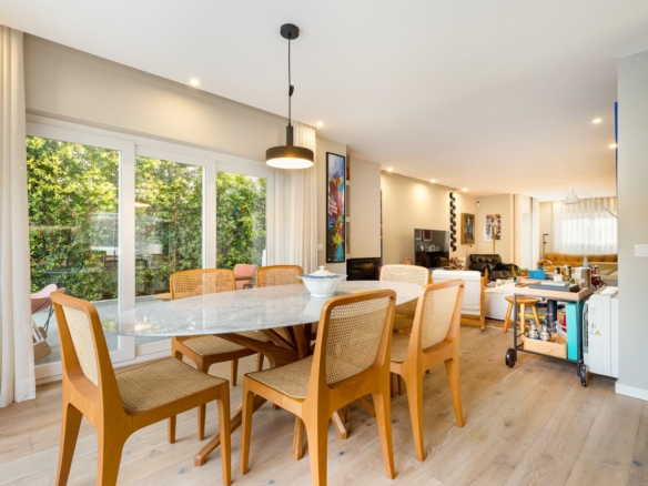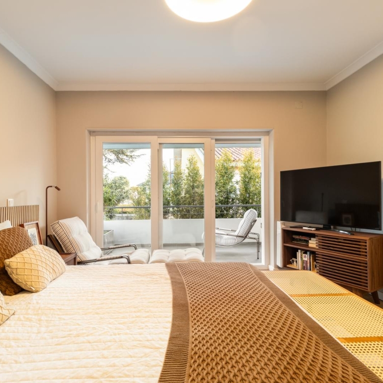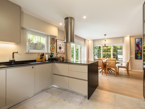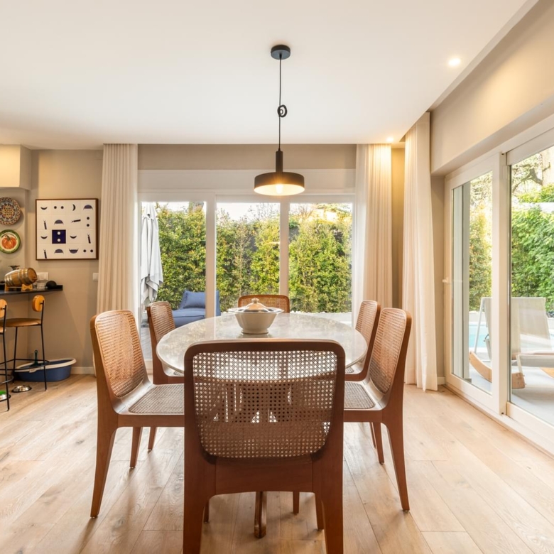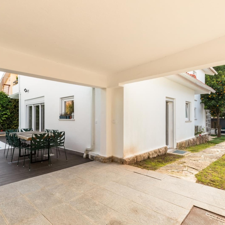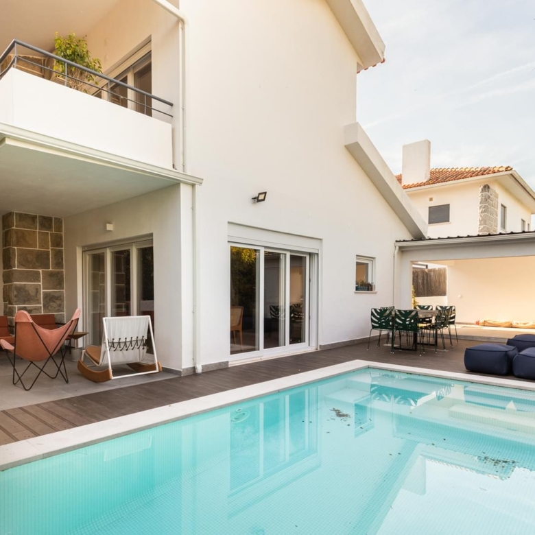Villa, remodelled in 2023, with swimming pool in the Rosario neighbourhood, Cascais, a residential area with lots of charm and character. It is a villa with an excellent layout, perfect for living with family and friends. Inserted in a 360 sqm lot, this villa distributed as follows: Ground Floor: - Entry hall - Social bathroom with window - Suite with an independent entrance and bathroom with shower and window - Large dimensioned living room with fireplace with a heat recovery unit - Dining room in open space with the kitchen - Fully equipped kitchen with a central island - Laundry area - Pantry First Floor: - Suite with bathroom with shower - Bedroom with wardrobe that is currently being used as an office - Full private bathroom to support the bedroom - Master suite with walk-in-closet - Balcony that surrounds all the bedrooms The villa has air conditioning, electrical blinds and alarm. Outside there is a pleasant garden with a lounge and dining area, a swimming pool, garage for one car, being possible to park two more cars outside. The location of the villa is truly privileged, being only a short walking distance from a variety of services, high quality restaurants and prestigious schools. Just a 5 minutes’ walk from the Cascais coast, with Casa da Guia nearby, you will find a selection of restaurants with stunning sea views. You can also go hiking or cycling on the bike path that goes to the Guincho beach Porta da Frente Christie’s is a real estate agency that has been operating in the market for more than two decades. Its focus lays on the highest quality houses and developments, not only in the selling market, but also in the renting market. The company was elected by the prestigious brand Christie’s – one of the most reputable auctioneers, Art institutions and Real Estate of the world – to be represented in Portugal, in the areas of Lisbon, Cascais, Oeiras, Sintra and Alentejo. The main purpose of Porta da Frente Christie’s is to offer a top-notch service to our customers. Property ID: PDF-PF32950 Price: €1,850,000 Property Size: 210.0 m2 Land Area: 360.0 m2 Bedrooms: 4 Bathrooms: 5 Property Type: House Property Status: For Sale