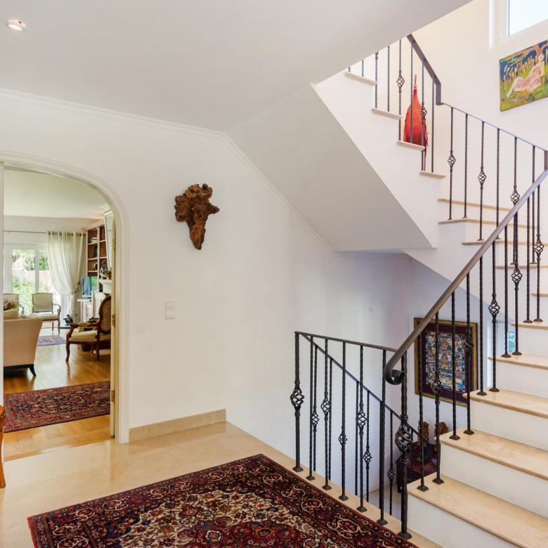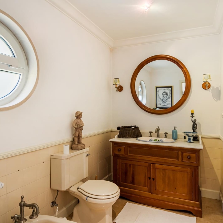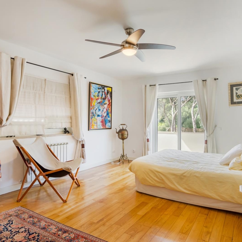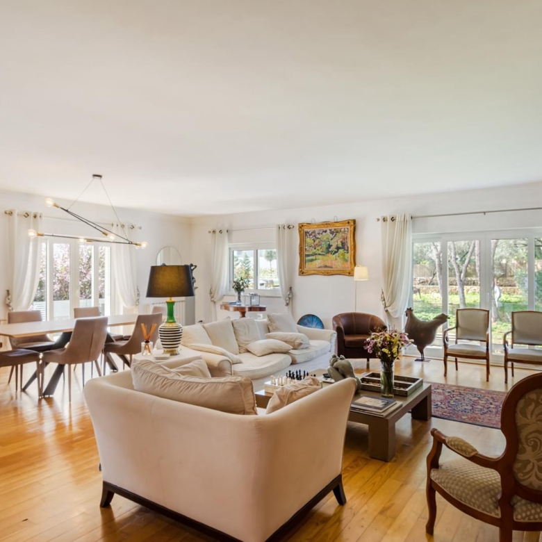 Fantastic villa with 4 suites, located in Birre, in a quiet and residential area where you will be in constant contact with nature. Inserted in a 626 sqm lot, the owners also acquired the front lot (which is also urban) and joined them, making a total of 1186 sqm. Villa with a traditional draft, with plenty of charm and the highest quality finishes, with a 445 sqm area. The villa is distributed as follows: Entrance floor: - Hall - Office - Living and dining room - Kitchen - Social bathroom First Floor: - Hall that accesses the suites - Four suites, having one of them been transformed into a Walking closet Floor -1: - Large dimensioned games’ room with fireplace, wine cellar area and bar and direct access to the garden - Massage room with sauna - Bathroom - Laundry area - Engine room - Garage with parking space for one car and parking for two more cars outside In the garden there is a barbecue area and has artesian hole. The villa had a swimming pool but the owners decided to cover it. The house has central heating. Located between the centre of Cascais and Guincho, Birre is known for being a quiet residential area, with easy access to the A5 motorway and only a few minutes away from the beaches of Guincho, golf courses and paddle, Quinta da Marinha equestrian centre and health club. Porta da Frente Christie’s is a real estate agency that has been operating in the market for more than two decades. Its focus lays on the highest quality houses and developments, not only in the selling market, but also in the renting market. The company was elected by the prestigious brand Christie’s – one of the most reputable auctioneers, Art institutions and Real Estate of the world – to be represented in Portugal, in the areas of Lisbon, Cascais, Oeiras, Sintra and Alentejo. The main purpose of Porta da Frente Christie’s is to offer a top-notch service to our customers. Property ID: PDF-PF32838 Price: €2,790,000 Property Size: 280.0 m2 Land Area: 1182.0 m2 Bedrooms: 4 Bathrooms: 6 Property Type: House Property Status: For Sale