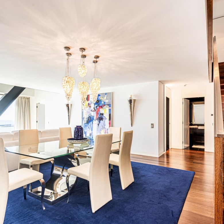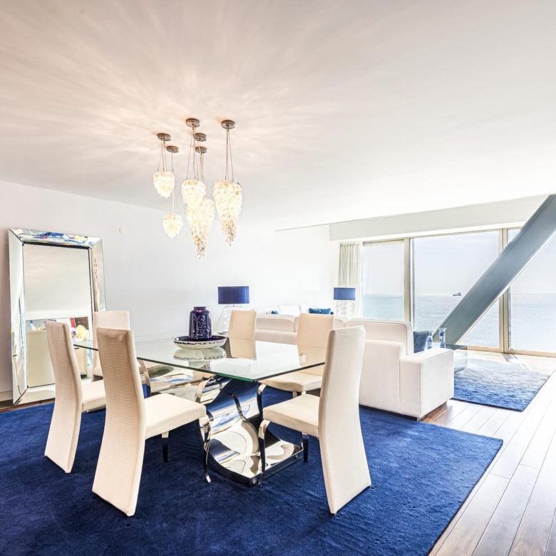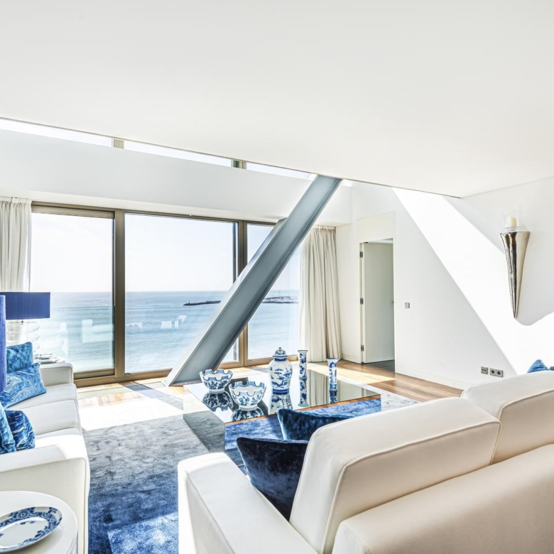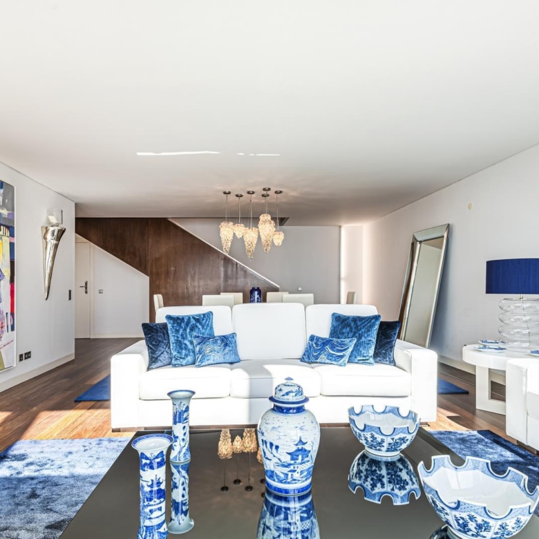 Excellent 3 bedroom duplex apartment, in front of the Cascais Bay, with a stunning sea view, inserted in one of the most reputable and modern condominiums of Cascais. With a 273 sqm private gross area, the apartment is totally furnished and it is composed by two floors, distributed as follows: The lower floor comprises a 50 sqm living room, a 23 sqm totally fitted kitchen that provides a total sea view, a laundry area and a social bathroom. The upper floor comprehends a 30 sqm TV room, a 21 sqm master suite that offers a panoramic sea view and two suites (31 sqm + 30 sqm), with view to the lovely condominium’s garden. Besides a 17 sqm storage area and parking space for four cars, the condominium includes a concierge, 24 hours security, direct access to the seafront promenade and to the beach, an outdoor swimming pool, an interior heated swimming pool, gym, sauna, Turkish bath and an exterior solarium. This is a golden opportunity for those who want to live close to the sea, in the centre of Cascais and only a short walking distance from local business and services and 30 minutes away from Lisbon and the airport. Cascais is a Portuguese village famous for its bay, local business and its cosmopolitanism. It is considered the most sophisticated destination of the Lisbon’s region, where small palaces and refined and elegant constructions prevail. With the sea as a scenario, Cascais can be proud of having 7 golf courses, a casino, a marina and countless leisure areas. It is 30 minutes away from Lisbon and its international airport. Porta da Frente Christie’s is a real estate agency that has been operating in the market for more than two decades. Its focus lays on the highest quality houses and developments, not only in the selling market, but also in the renting market. The company was elected by the prestigious brand Christie’s – one of the most reputable auctioneers, Art institutions and Real Estate of the world – to be represented in Portugal, in the areas of Lisbon, Cascais, Oeiras, Sintra and Alentejo. The main purpose of Porta da Frente Christie’s is to offer a top-notch service to our customers. Property ID: PDF-PF32519 Price: €4,990,000 Property Size: 273.0 m2 Bedrooms: 3 Bathrooms: 4 Year Built: 2010 Property Type: Apartment Property Status: For Sale