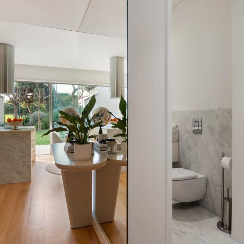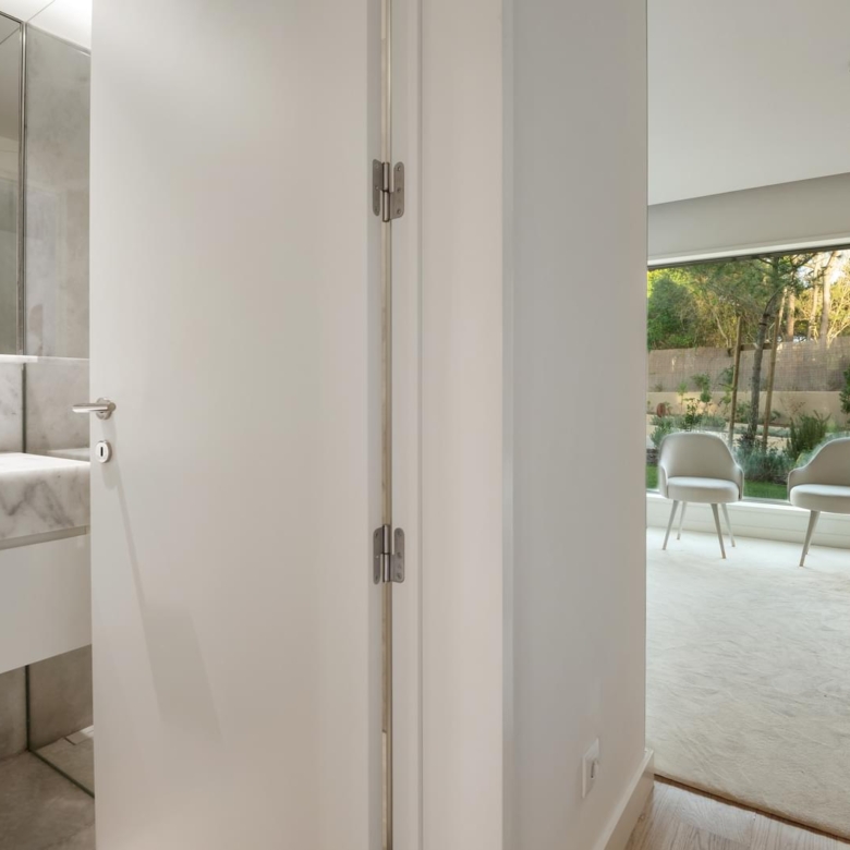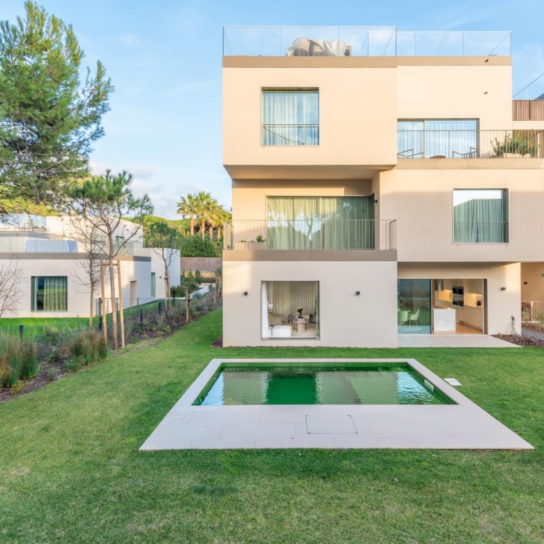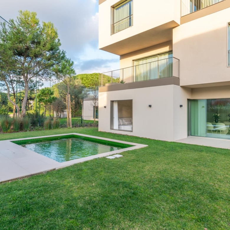 Come and discover the concept of luxury and exclusive property in Cascais at Quinta da Marinha, with this magnificent 2 bedroom apartment, located in a prestigious private condominium, with a 526qsm garden and private pool overlooking Quinta da Marinha Golf. Characteristics of the property: Prime Location: This elegant ground floor apartment offers unparalleled privacy and stunning views of the golf course, providing a unique experience of serenity and luxury. Exclusive Living Areas: The living room and kitchen are ample and bright spaces, with access to a front terrace that invites you to contemplate the green beauty of the golf course. Privacy and Leisure: Enjoy relaxing moments in the garden and in the private swimming pool, creating a resort atmosphere in the comfort of your own home. Sophisticated Interior: The kitchen, open to the living room, provides a modern and elegant atmosphere, while the two bedrooms en suite ensure maximum comfort. Highlight for the social bathroom, a unique touch added by the current owners. Extraordinary Amenities: Two parking spaces in garage and a storage area guarantee practicality and organization. About the Condominium: Contemporary Architecture: The condominium, surrounded by a green patch of 2.7 hectares, stands out for its contemporary architecture that harmonizes perfectly with the surrounding landscape. Leisure and Wellness: With a communal swimming pool, gym, and even a nearby health club and equestrian centre, the condominium provides a truly unique living experience. Prestigious Location: Adjacent to two golf courses, this condominium offers an exclusive and sophisticated lifestyle, with a total of 55 units, among apartments and villas, fully furnished and equipped. Surroundings and access points: Proximity to Beaches: Just a short distance from the stunning beaches of Cascais, enjoy the best that the coast has to offer. Ease of Accesses: With a strategic location, the condominium offers easy accesses to main roads, providing a quick connection to Lisbon and other surrounding areas. This is your opportunity to acquire a prestigious home in Cascais, where tranquility meets luxury. Book your visit now and discover the true meaning of living with elegance and comfort. Cascais is a Portuguese village famous for its bay, local business and its cosmopolitanism. It is considered the most sophisticated destination of the Lisbon’s region, where small palaces and refined and elegant constructions prevail. With the sea as a scenario, Cascais can be proud of having 7 golf courses, a casino, a marina and countless leisure areas. It is 30 minutes away from Lisbon and its international airport. Porta da Frente Christie’s is a real estate agency that has been operating in the market for more than two decades. Its focus lays on the highest quality houses and developments, not only in the selling market, but also in the renting market. The company was elected by the prestigious brand Christie’s – one of the most reputable auctioneers, Art institutions and Real Estate of the world – to be represented in Portugal, in the areas of Lisbon, Cascais, Oeiras, Sintra and Alentejo. The main purpose of Porta da Frente Christie’s is to offer a top-notch service to our customers. Property ID: PDF-PF32438 Price: €2,330,000 Property Size: 133.9 m2 Bedrooms: 2 Bathrooms: 3 Year Built: 2023 Property Type: Apartment Property Status: For Sale