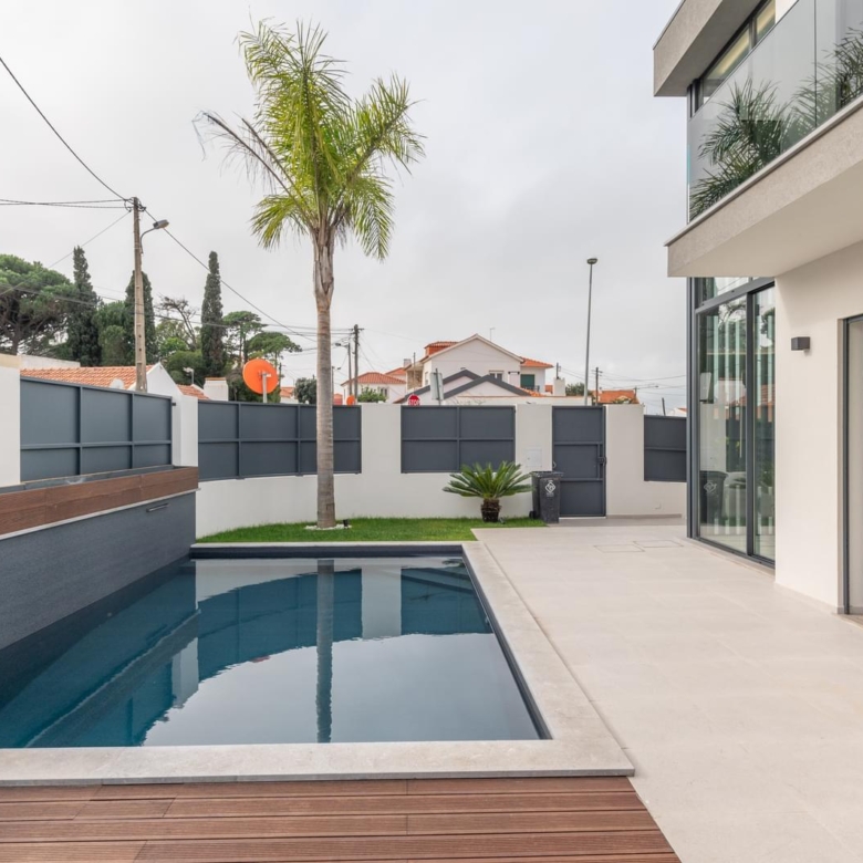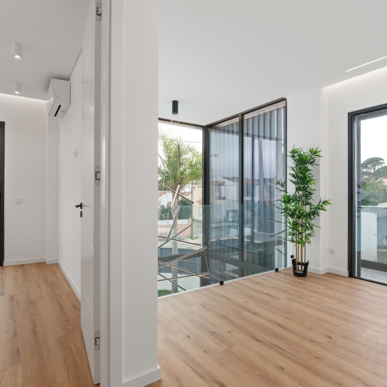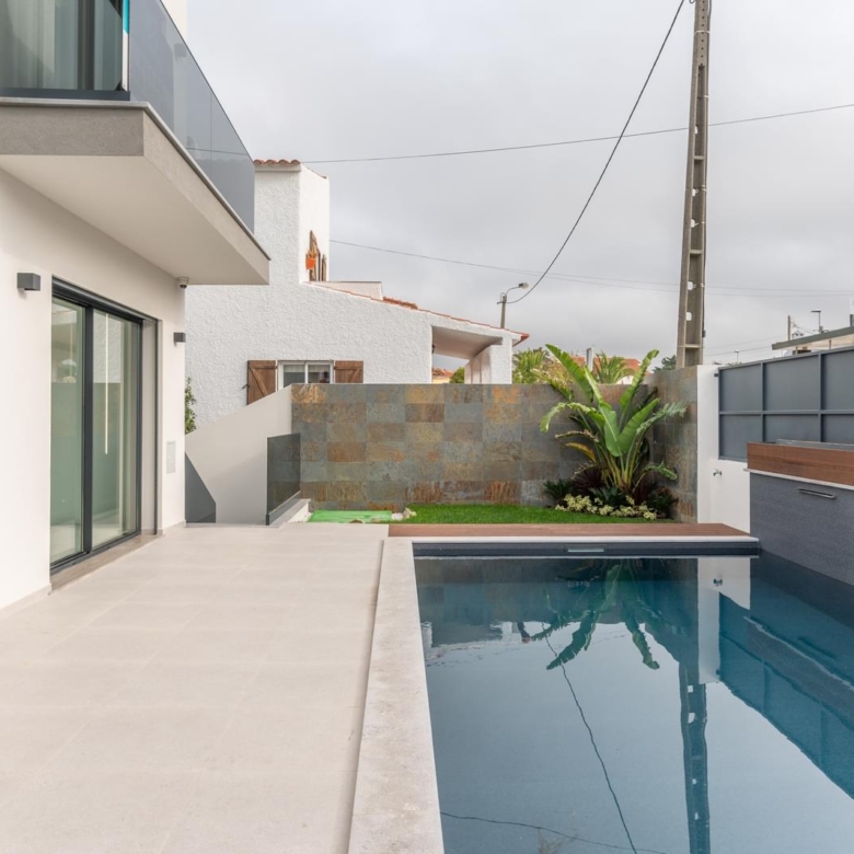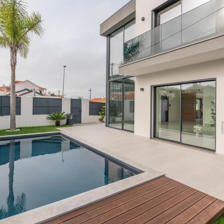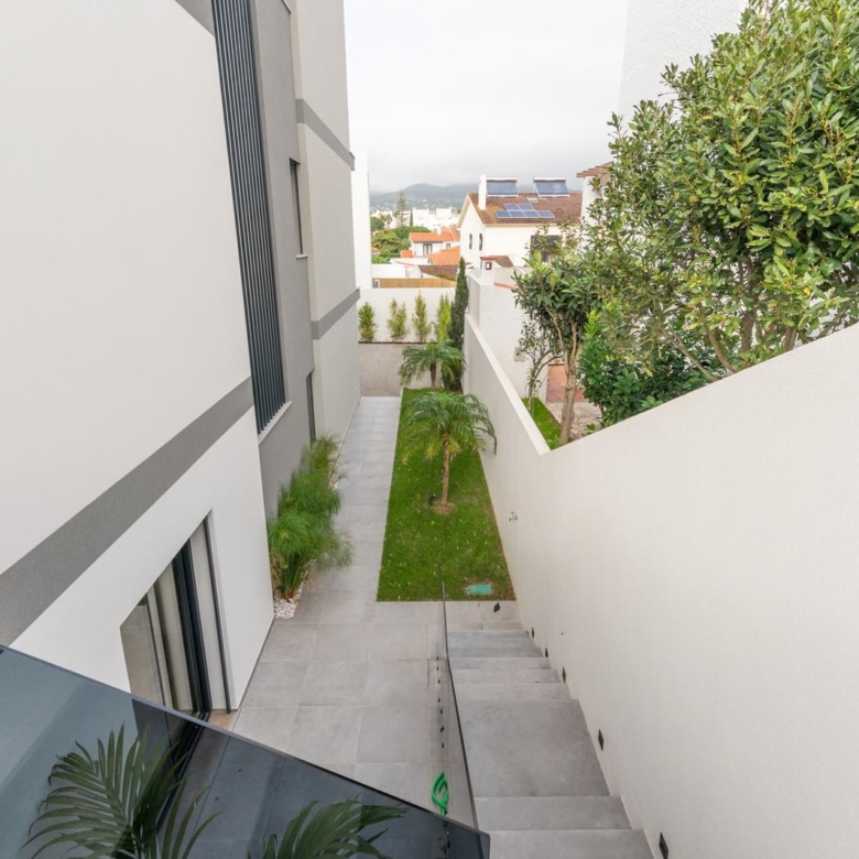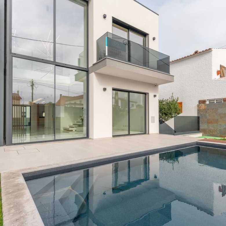 Contemporary 4 bedroom villa, with garden and swimming pool, in the area of Cascais, in Murches. Modern villa ready to debut, inserted in a 384 sqm lot with a 192 sqm gross construction area. It offers an excellent east/west sun exposure. The areas are distributed as follows: The ground floor is in open space: - Living room with a double high ceiling: 37 sqm and view to the swimming pool - Kitchen: 16.60 sqm fully equipped with an island and a wine cellar - dining area: 21 sqm - social bathroom, with heated floor First Floor: - Master suite with balcony (15 sqm) and a 5 sqm closet - Bedroom with wardrobe and with balcony (14.20 sqm) - Bedroom with wardrobe and with balcony (14.45 sqm) - Bathroom to support the two bedrooms with heated floor - Mezzanine with 9,65 sqm and balcony Floor -1 - Bedroom: 16,10 sqm with access to the outdoor area - Bathroom, with radiant floor heating - Laundry area: 3.90 sqm - Living Room: 28.60 sqm with access to the outside area - Garage for one car. All the rooms have double glazed window frames, central heating in the bathrooms and electrical blinds. Located in Murches, close to transportation, services and schools, restaurants and all sorts of local business. It is placed in a quiet area and in the middle of nature. Property ID: PDF-PF32131 Price: €2,150,000 Property Size: 192.0 m2 Land Area: 384.0 m2 Bedrooms: 4 Bathrooms: 4 Year Built: 2023 Property Type: House Property Status: For Sale