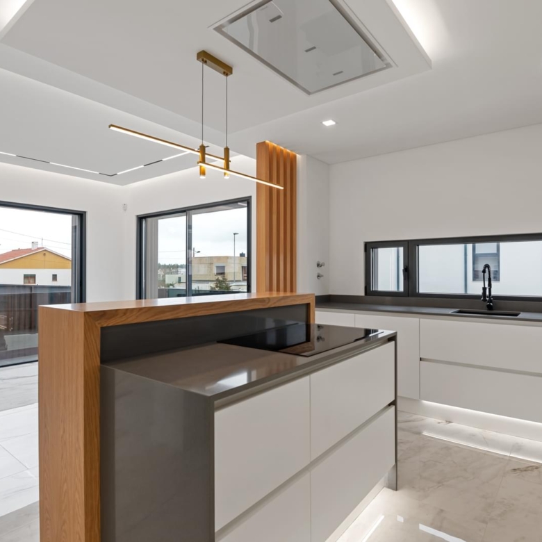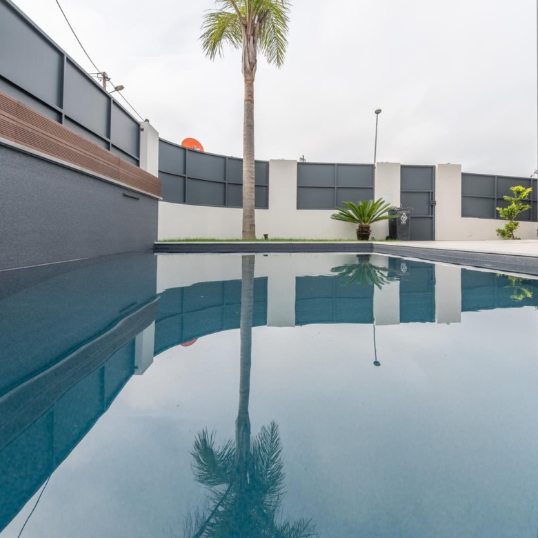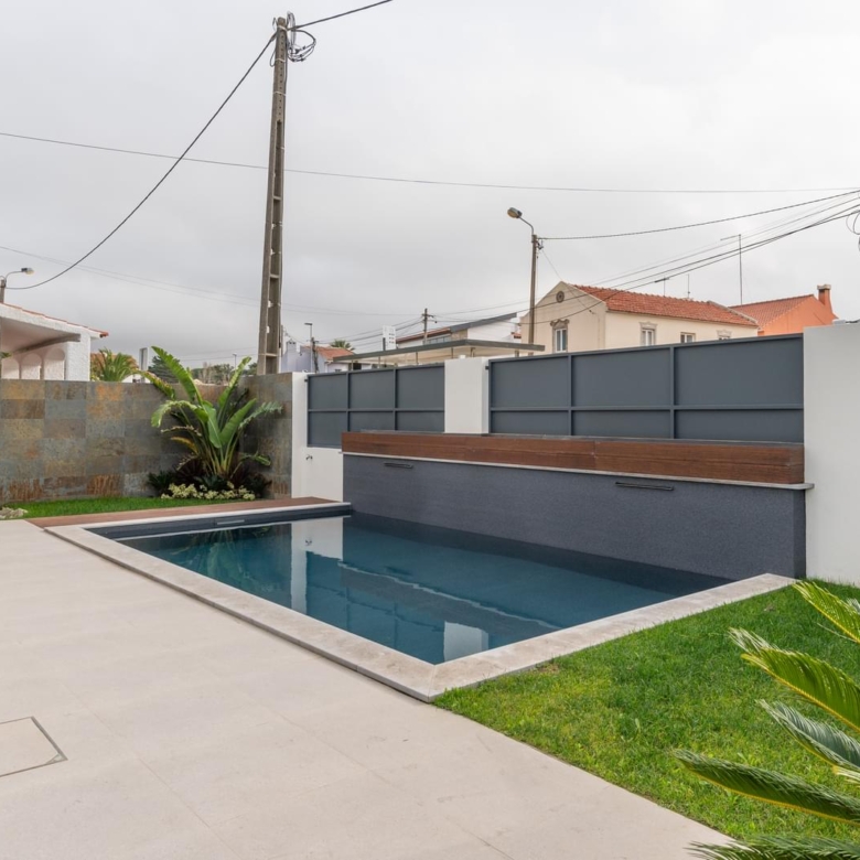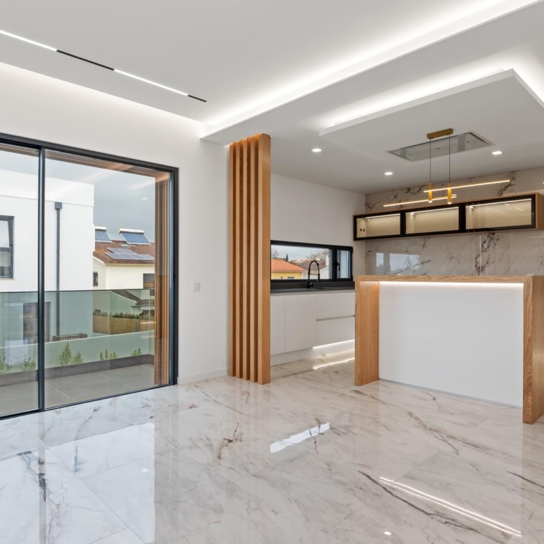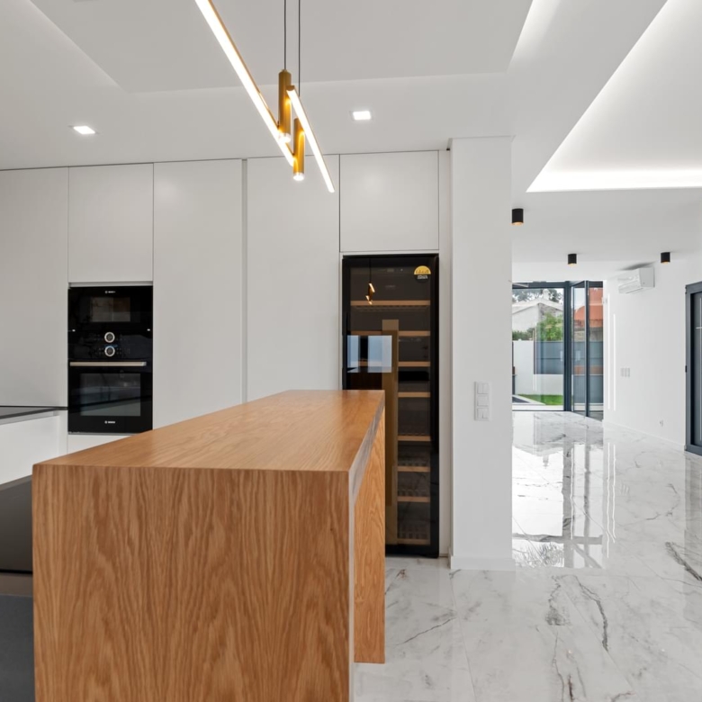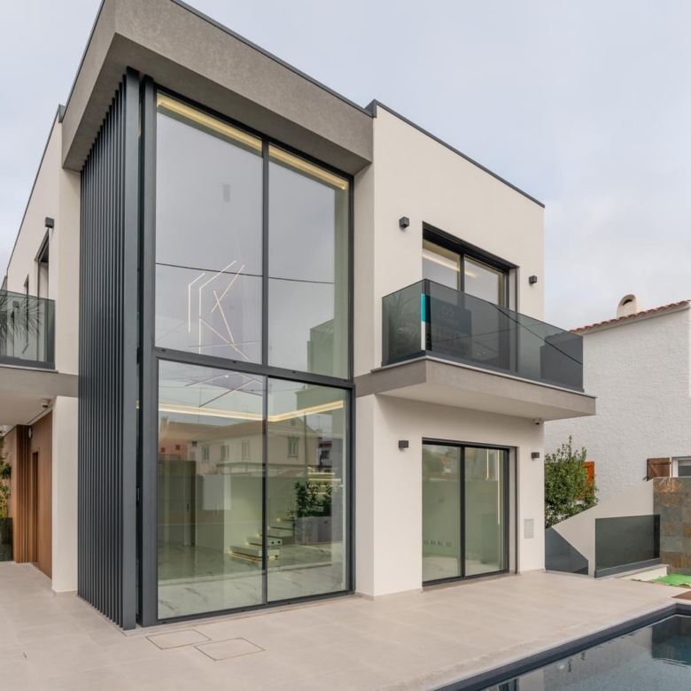 Contemporary 4 bedroom villa, with garden and swimming pool, in the area of Cascais, in Murches. Modern villa ready to debut, inserted in a 384 sqm lot with a 192 sqm gross construction area. It offers an excellent east/west sun exposure. The areas are distributed as follows: The ground floor is in open space: - Living room with a double high ceiling: 37 sqm and view to the swimming pool - Kitchen: 16.60 sqm fully equipped with an island and a wine cellar - dining area: 21 sqm - social bathroom, with heated floor First Floor: - Master suite with balcony (15 sqm) and a 5 sqm closet - Bedroom with wardrobe and with balcony (14.20 sqm) - Bedroom with wardrobe and with balcony (14.45 sqm) - Bathroom to support the two bedrooms with heated floor - Mezzanine with 9,65 sqm and balcony Floor -1 - Bedroom: 16,10 sqm with access to the outdoor area - Bathroom, with radiant floor heating - Laundry area: 3.90 sqm - Living Room: 28.60 sqm with access to the outside area - Garage for one car. All the rooms have double glazed window frames, central heating in the bathrooms and electrical blinds. Located in Murches, close to transportation, services and schools, restaurants and all sorts of local business. It is placed in a quiet area and in the middle of nature. Property ID: PDF-PF32131 Price: €2,150,000 Property Size: 192.0 m2 Land Area: 384.0 m2 Bedrooms: 4 Bathrooms: 4 Year Built: 2023 Property Type: House Property Status: For Sale