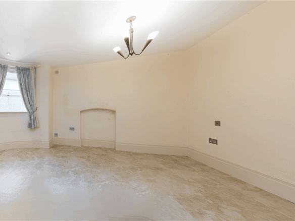 Bedroom 4: 4.83m (max) x 4.24m Marble flooring, feature curved wall with sash window and bespoke crafted curved curtain rail, TV point and multiple power points.