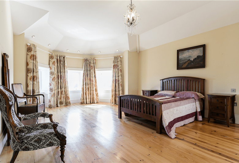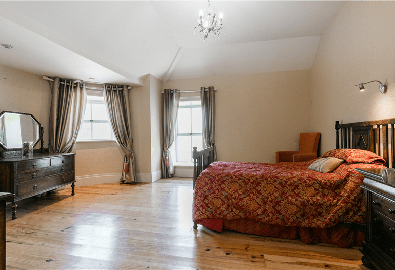 Continuing further up the staircase and along the passage, you arrive at the Master Bedroom Suite. Comprising of treble bay windows overlooking the front garden and paddock area of the property, the view out over the seemingly endless countryside is enhanced by the elevation. A large heated walk-in dressing room provides more than ample space for clothing and footwear with a window looking out towards the rear and side views of the fields and tree lined horizon beyond.