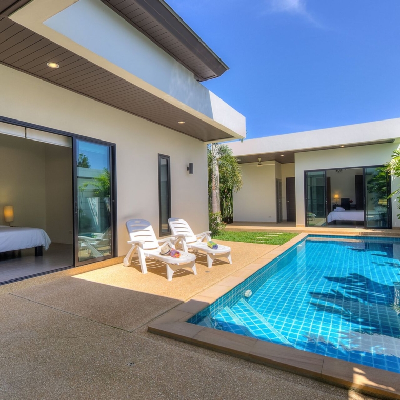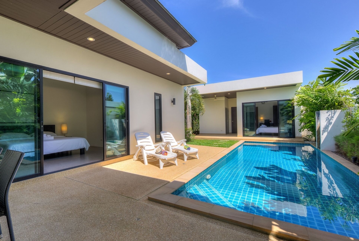 If you’re looking for a warm, character-filled home in a peaceful part of Rawai, this lovely modern-style 3-bedroom villa might be just what you’re after. Tucked away in a quiet corner of Nga Chang Residence, this property blends style, comfort, and practicality into one easy-living package. Set on a 339 sqm freehold plot, the villa has a welcoming L-shaped layout that wraps around the pool, perfect for indoor-outdoor living. The main house features two spacious bedrooms, both with ensuite bathrooms, and the third bedroom sits privately in its own separate bungalow, ideal for guests, older kids, or even a home office. The villa feels light and airy throughout thanks to its high ceilings, modern design, and big sliding glass doors that bring the outside in. The open-plan living area is great for everyday living or entertaining, and the kitchen is fully equipped and ready for everything from quick breakfasts to weekend dinners with friends. Property Details: Location: Baan Konti, Rawai, Phuket Price: THB 13,500,000 (including furniture, taxes, Thai company with Chanote title deed) Land Size: 339 sqm (Freehold Thai Company) Built Area: 170 sqm Bedrooms: 3 (3rd bedroom in separate bungalow) Bathrooms: 3 Pool: Private Furnishing: Fully furnished Structure: Solid, well-built, and easy to maintain Parking: Private Ownership: Freehold What Makes It Special: One-floor layout for easy living Separate guest suite/bungalow for privacy High ceilings and large windows for natural light Great long-term living or short-stay rental potential Quiet, friendly neighborhood close to Rawai and Nai Harn Just minutes from shops, restaurants, cafes, and beaches This is the kind of home that just feels good to be in. It’s practical, it’s stylish, and it’s got just the right amount of tropical charm. Whether you’re relocating, downsizing, or investing, it offers great value and a lifestyle that’s hard to beat. Contact us today to arrange a private viewing or to request more information!