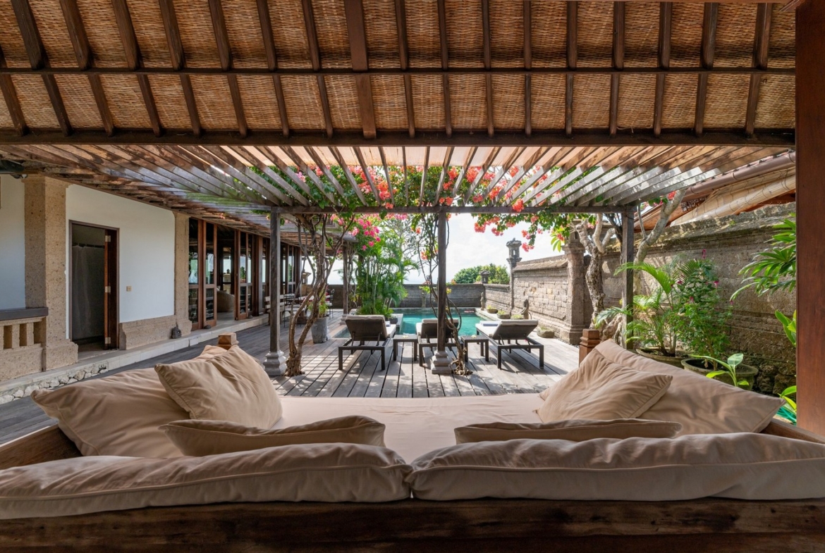 Outside, a stunning 11 x 7-meter private swimming pool invites you to unwind while enjoying breathtaking ocean views over Jimbaran Bay. The north-facing villa ensures ample natural light and refreshing breezes throughout the day.