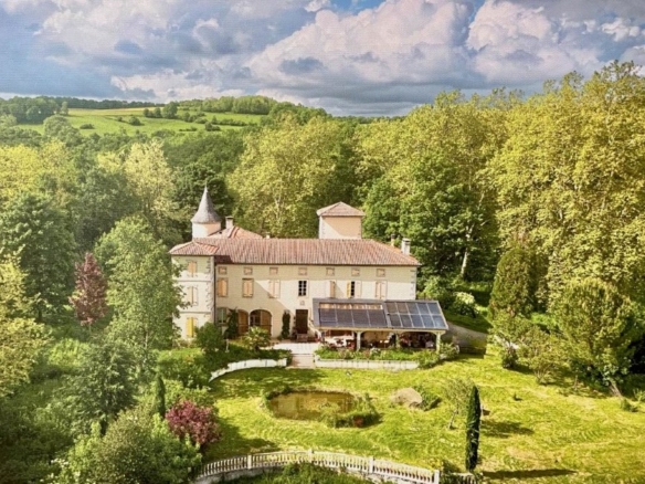 The initial impression of Château de Montcru is one of timeless elegance and commanding presence. Dating back to 1804, the château stands as a testament to the architectural and historical richness of the region. While it carries the revered title of a ‘château,’ it combines the stately proportions of a manor house with the warmth of a grand country home. The entire estate, which is currently on the market, encompasses the principal dwelling, a significant adjacent farmhouse, a second independent living quarter, and extends across a remarkable 3.7 hectares of mixed grass and woodland. Above all, its elevated position affords a truly fantastic, unobstructed panorama of the majestic Pyrénées mountains—a view that changes with the seasons and forms the spectacular backdrop to daily life.