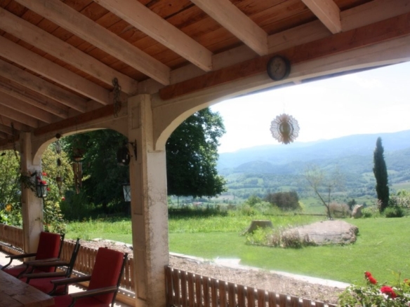 The architecture of the main château building, constructed at the dawn of the 19th century, reflects the elegant proportions and sturdy build of the era. Inside, a discerning eye will immediately appreciate the potential to create a magnificent modern home while preserving the original character. High ceilings, generous room dimensions, and large windows are characteristic features, ensuring every space is bathed in natural light and framed by the incomparable views of the surrounding countryside and the distant peaks. The current layout already provides two distinct living quarters, which can easily be maintained for separate staff and guest accommodation, or seamlessly integrated to form one vast, cohesive family home.