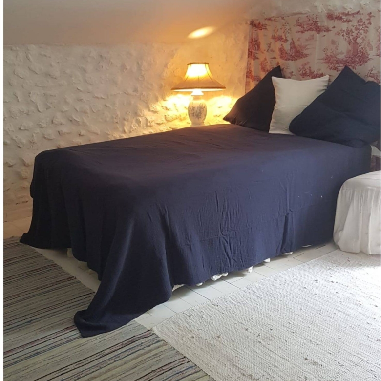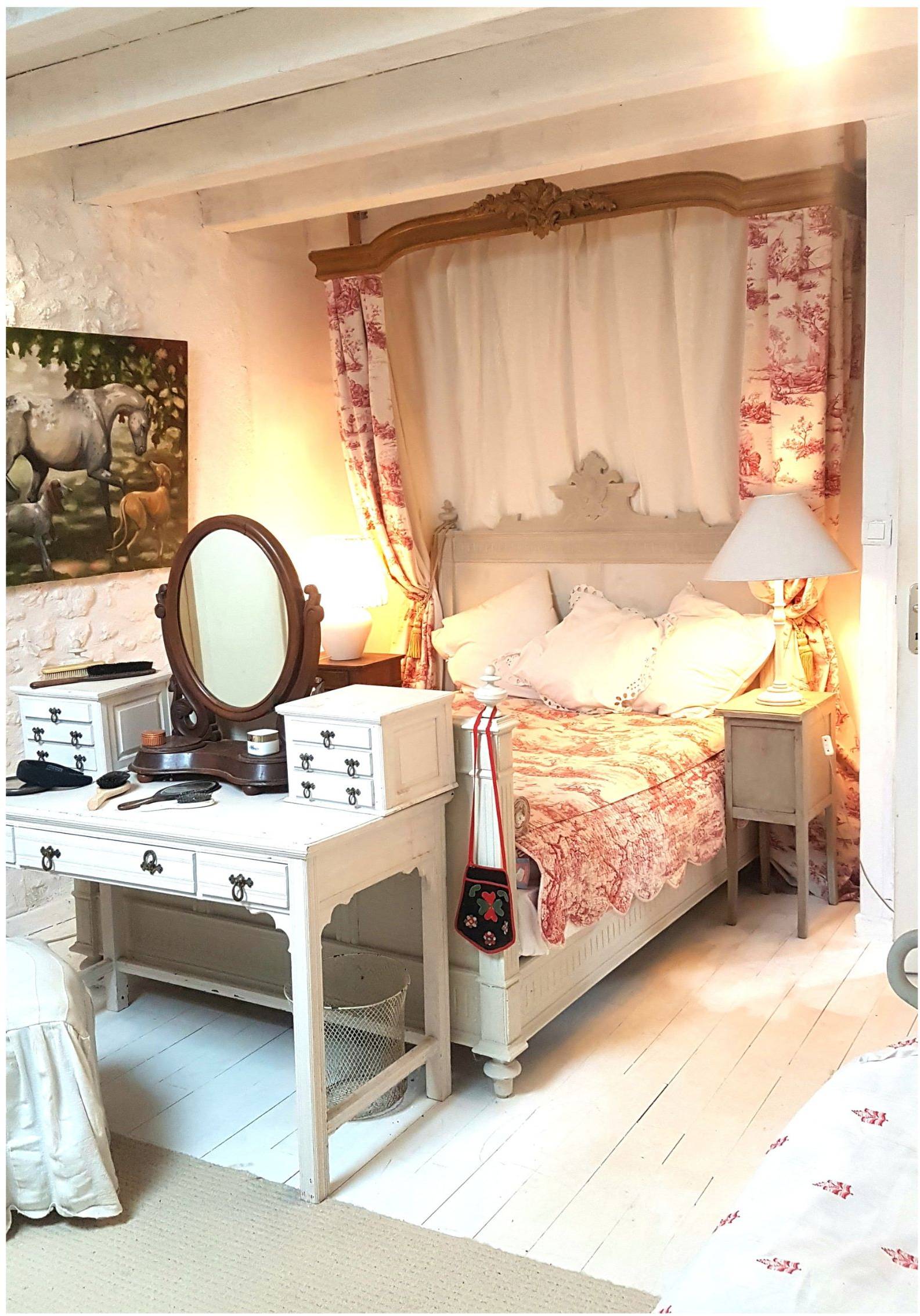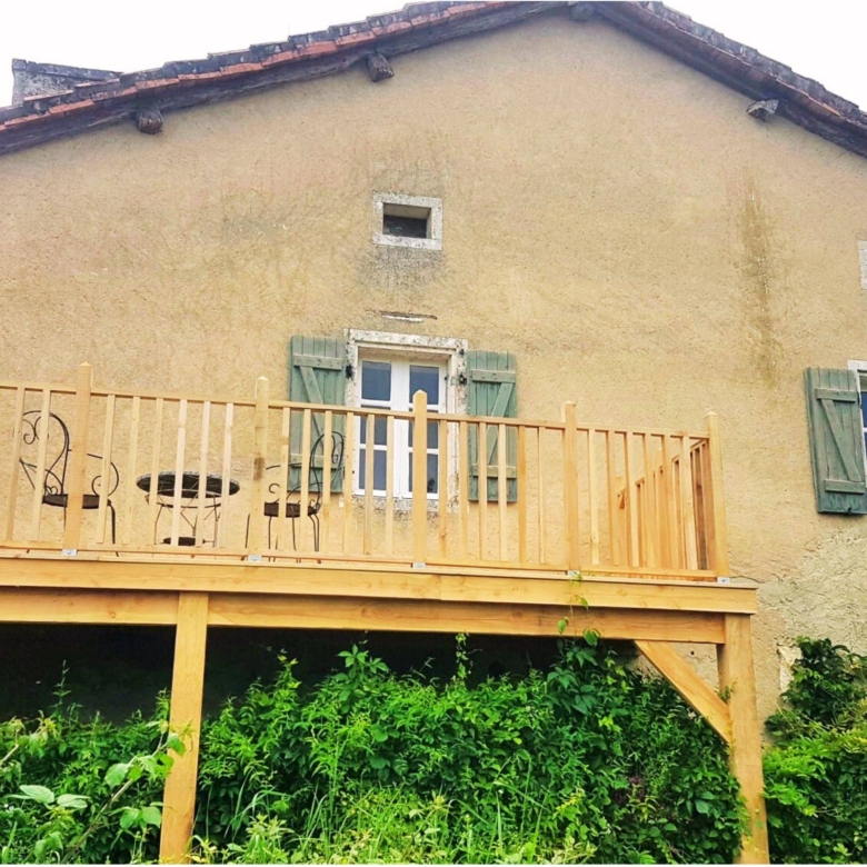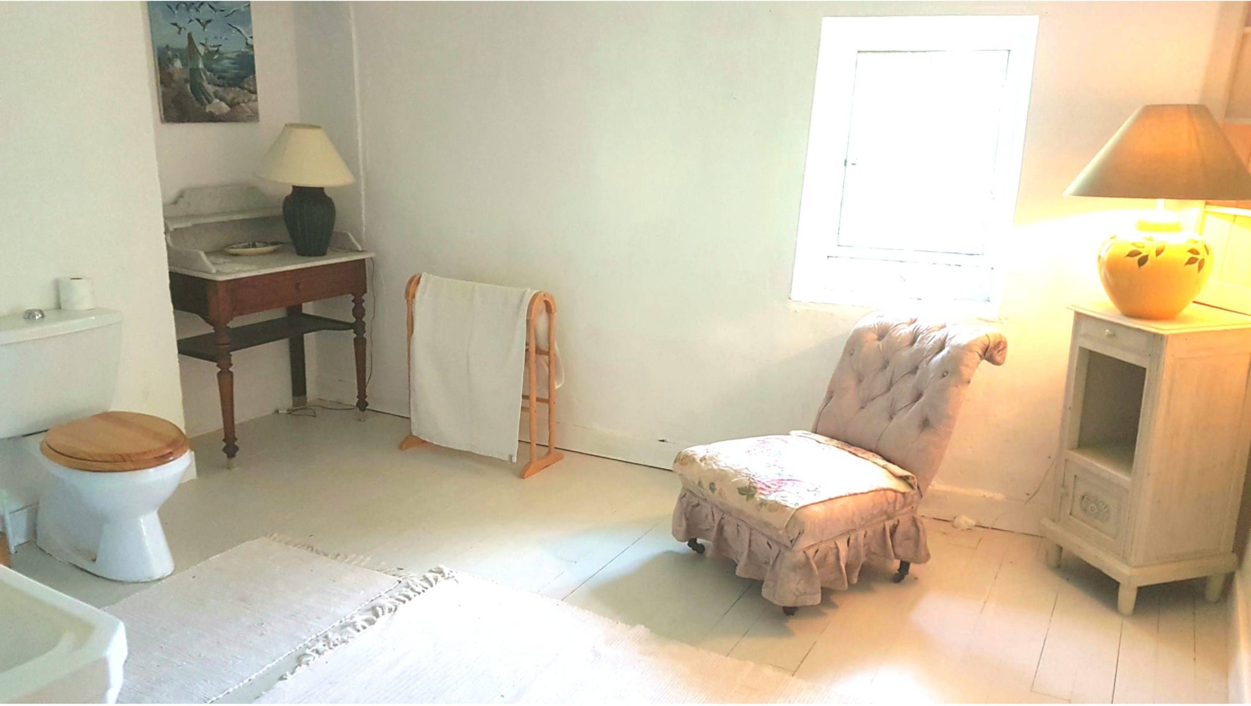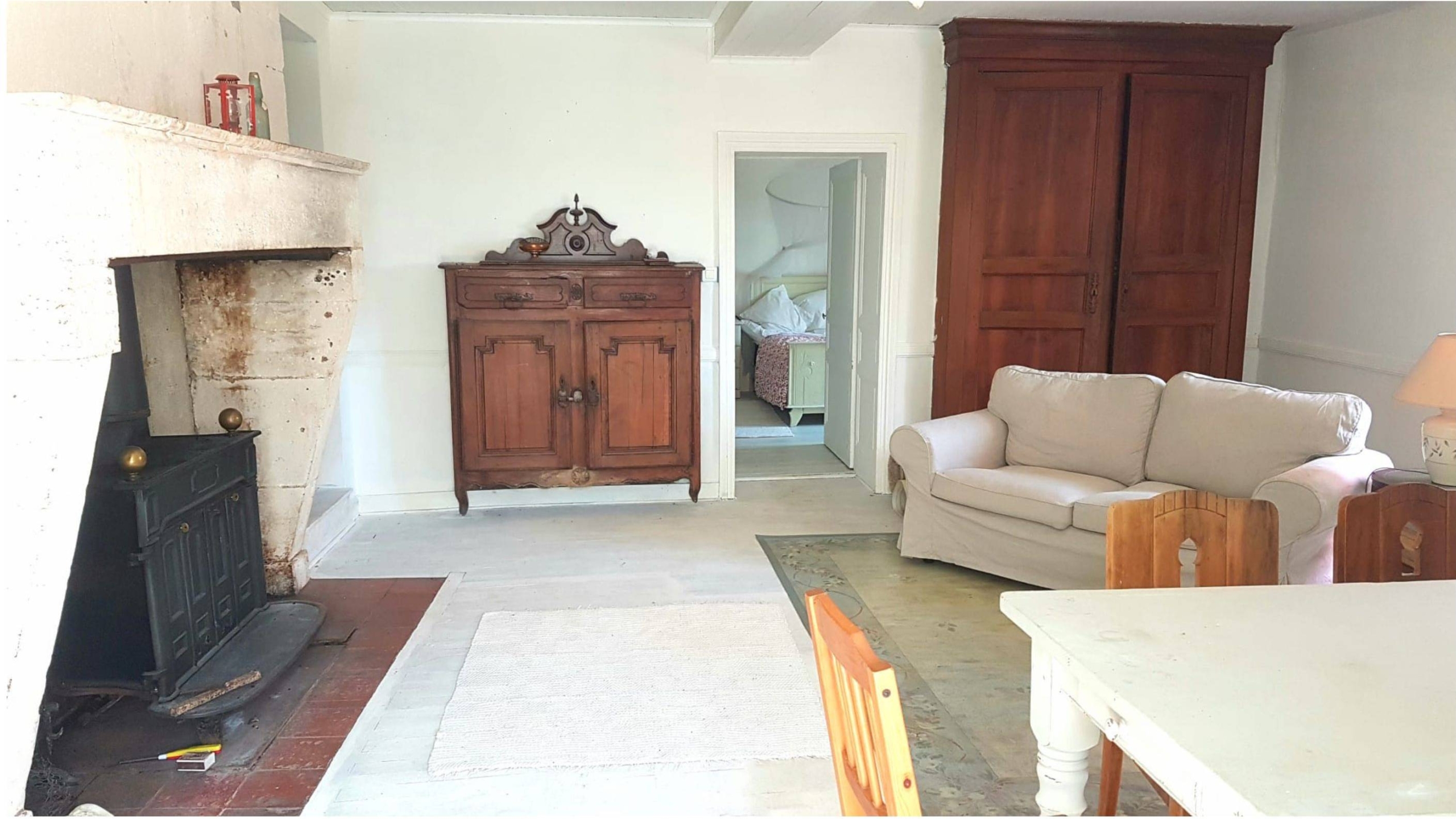 Attached to the main house is the original farmhouse, which has been sensitively integrated to expand the living space. This section features 2 additional bedrooms, sharing a convenient Jack and Jill bathroom. A highlight of the farmhouse is its charming balcony, which offers further beautiful views of the surrounding countryside, perfect for enjoying quiet moments or an evening aperitif. The combined six bedrooms and three bathrooms ensure that guests or family members have ample space and privacy, making Chillaveau ideal for hosting gatherings or accommodating visitors for extended periods.