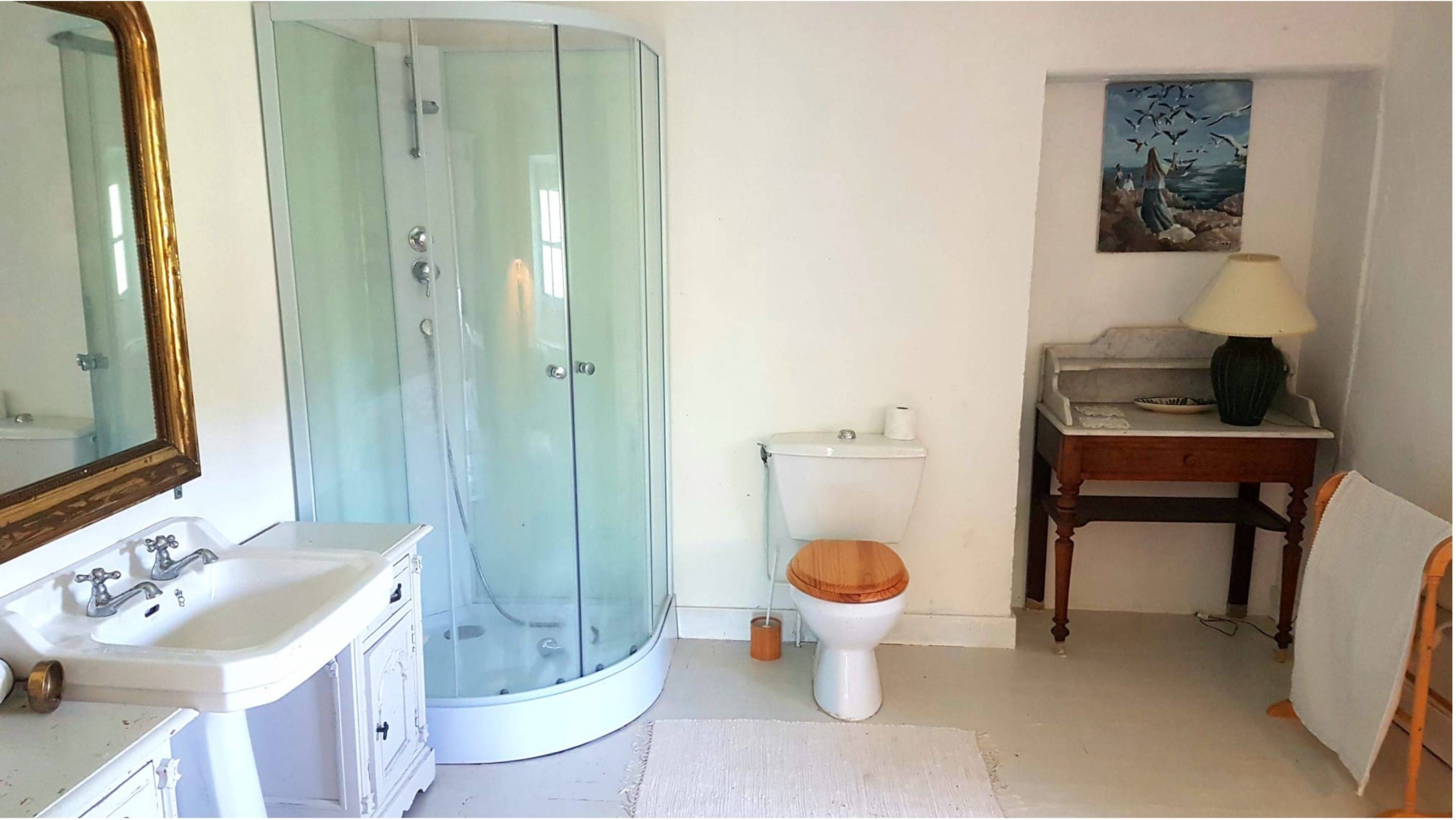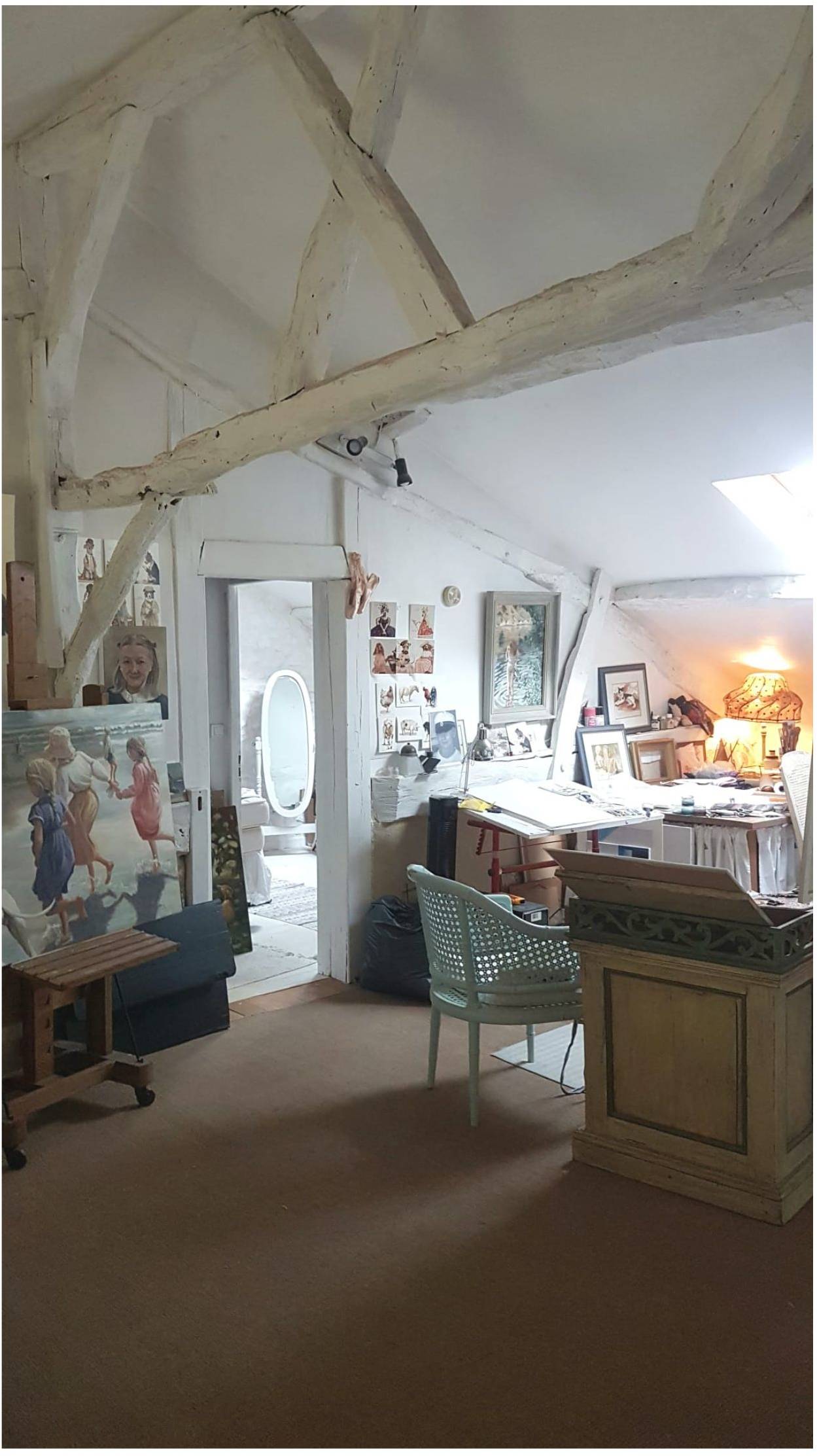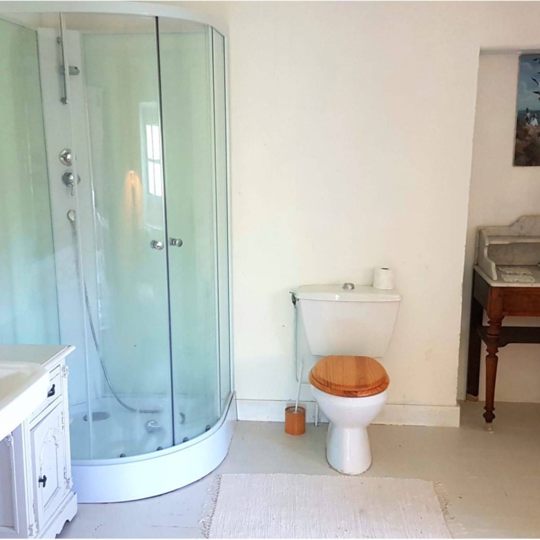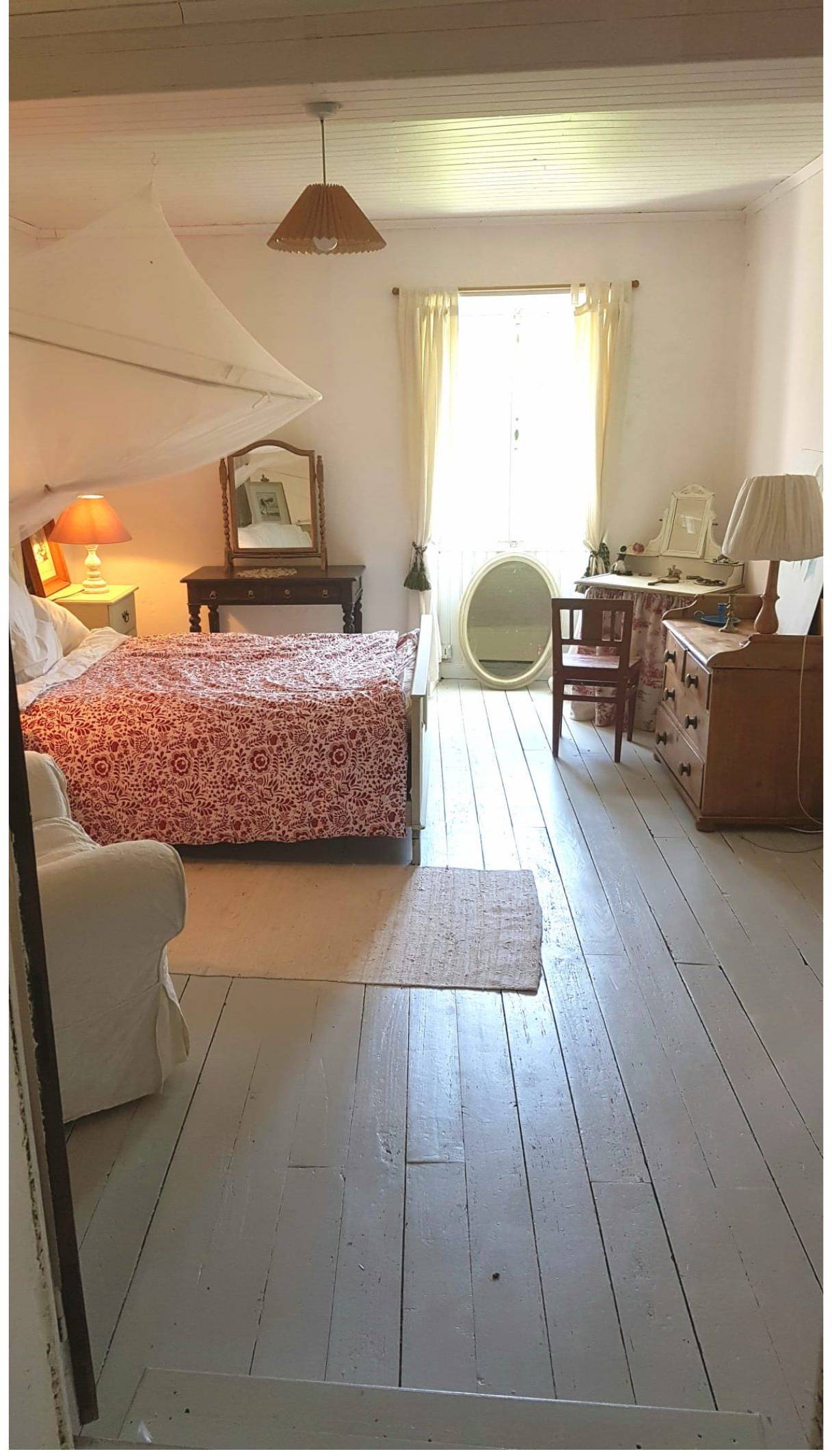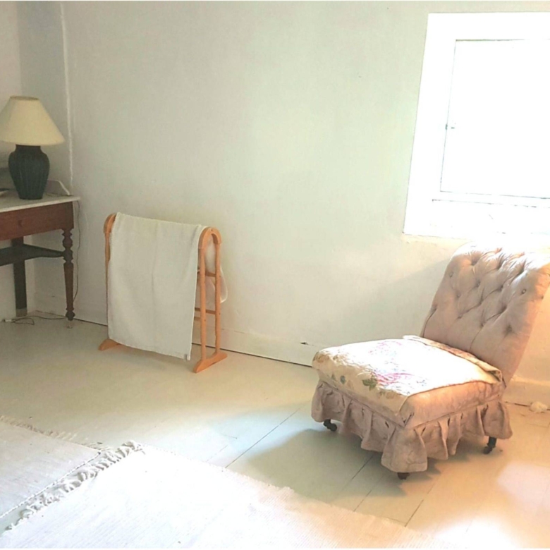 Attached to the main house is the original farmhouse, which has been sensitively integrated to expand the living space. This section features 2 additional bedrooms, sharing a convenient Jack and Jill bathroom. A highlight of the farmhouse is its charming balcony, which offers further beautiful views of the surrounding countryside, perfect for enjoying quiet moments or an evening aperitif. The combined six bedrooms and three bathrooms ensure that guests or family members have ample space and privacy, making Chillaveau ideal for hosting gatherings or accommodating visitors for extended periods.