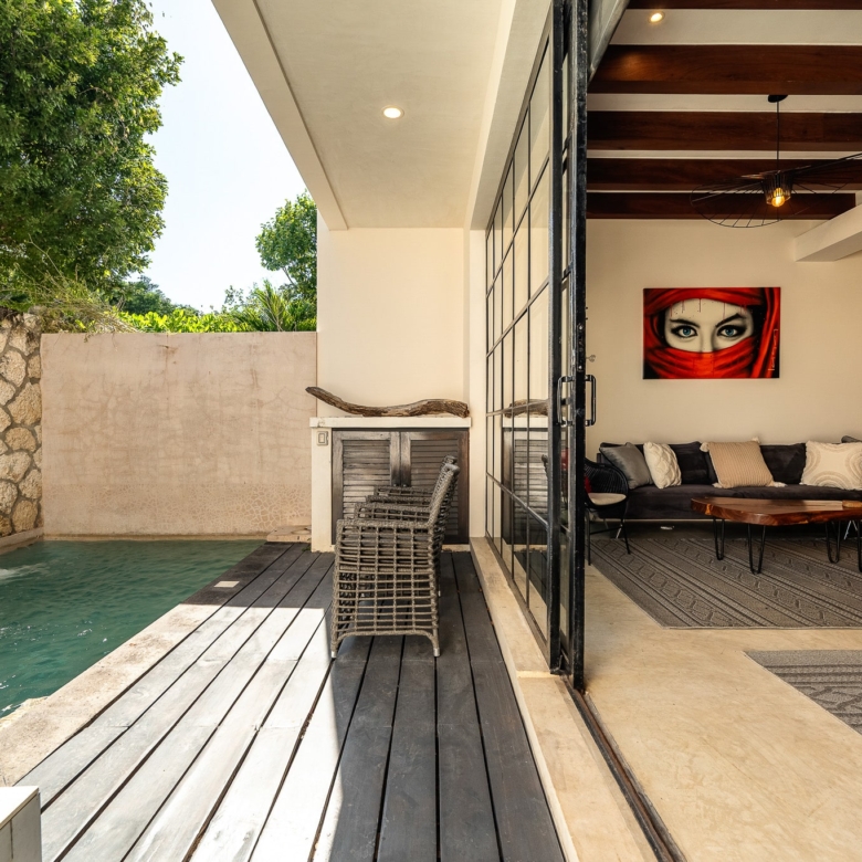 Cienfuegos Villa 1 is a refined three-bedroom townhouse in the exclusive boutique development of Cienfuegos Tulum, located in the prestigious Aldea Zama community. Designed with Mediterranean-inspired architecture and locally sourced materials, this residence seamlessly integrates luxury with the natural beauty of Tulum.